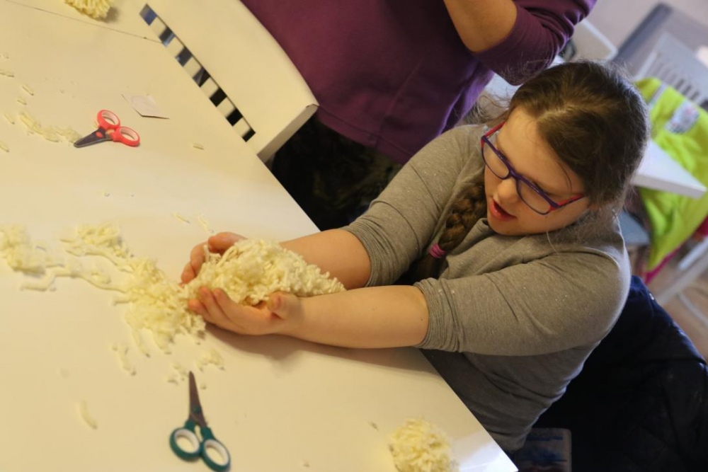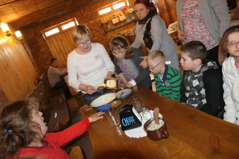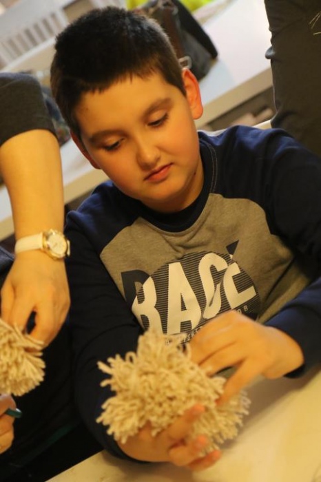 Po obiedzie czekały nas warsztaty plastyczno - techniczne, podczas których uczniowie mieli okazję sami wykonać wełniane, niezwykle sympatyczne owieczki. Prowadząca krok po kroku objaśniała jak z kłębka wełny wyczarować to popularne tu w górach zwierzę. Z pomocą wszyscy wykonali to dośc trudne zadanie, i pamiątkowe owieczki wracają z uczniami do domów:)