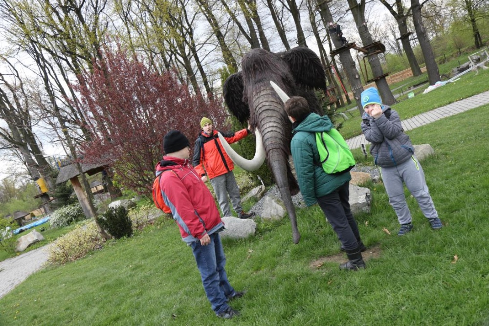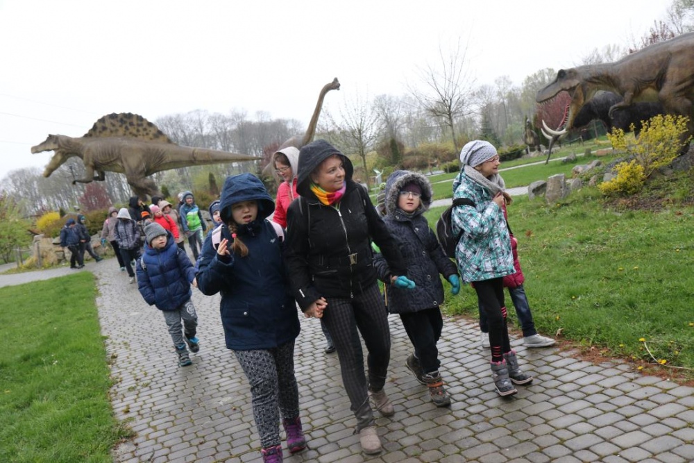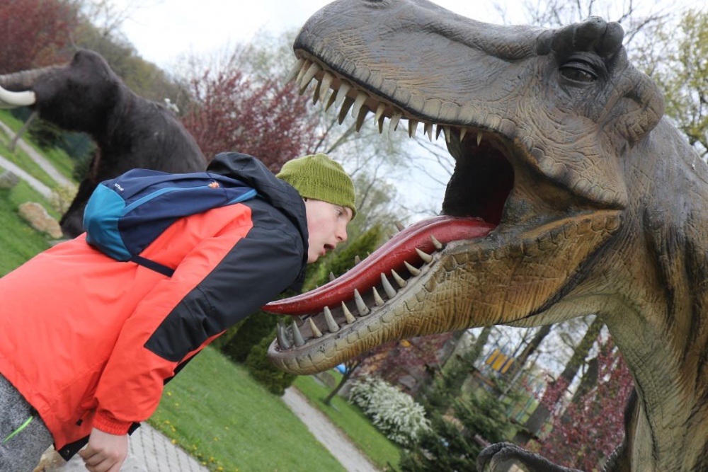 I DZIEŃ - SOBOTA - 22 kwietnia 2017r. - to poranna zbiórka w SZS-P, ostatnie uwagi skierowane do opiekunów, pakowanie bagaży, pożegnanie, no i podróż autokarem. Nie od razu jednak pojechaliśmy do Ośrodka w Górkach Wielkich. Po drodze czekała nas bowiem pierwsza atrakcja wyjazdu - pobyt w DREAM PARKU w Ochabach. Aura pozwoliła nam na zwiedzanie zarówno alei miniatur (pod okiem przewodnika), jak i parku dinozaurów. Odwiedziliśmy także kino, gdzie mogliśmy bliżej poznać świat prehistorycznych gadów. Trójwymiarowe oceanarium z kolei, odkryło przed nami tajniki świata podmorskich przodków. Dużą frajdę sprawił uczniom, ale nie tylko;), seans w kinie 6D, który krył wiele niespodzianek. Wizyta w DOMKU DO GÓRY NOGAMI nie dla wszystkich była prosta;)