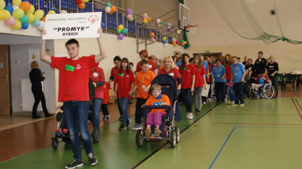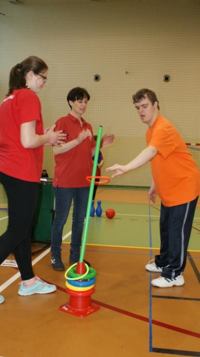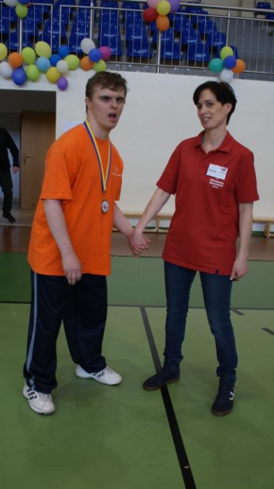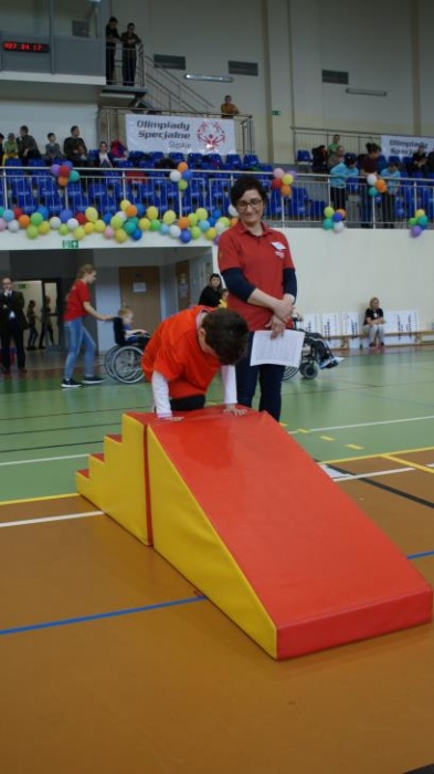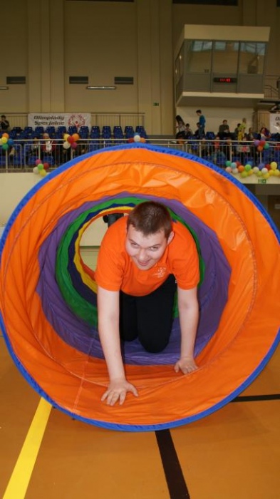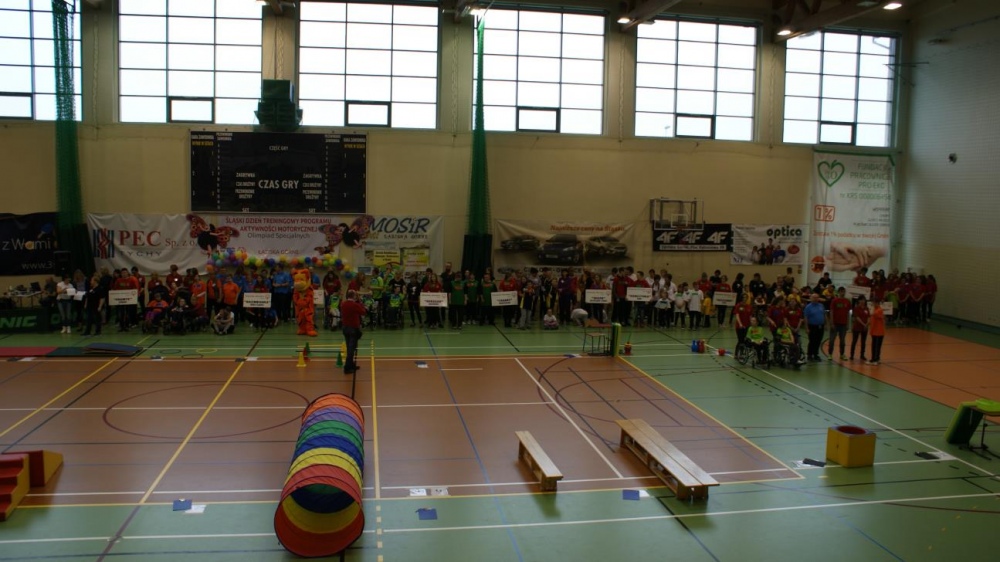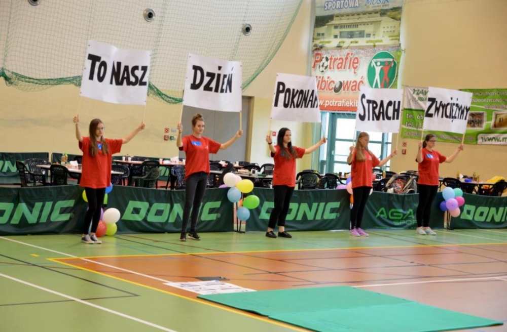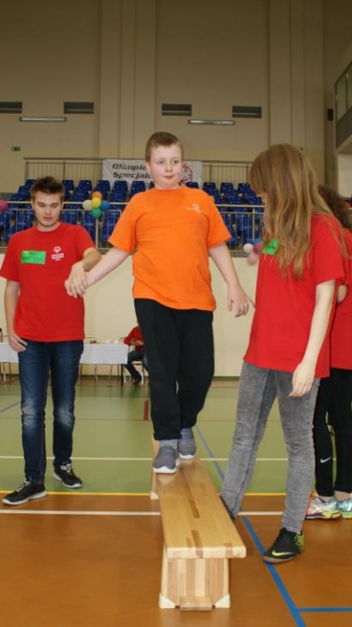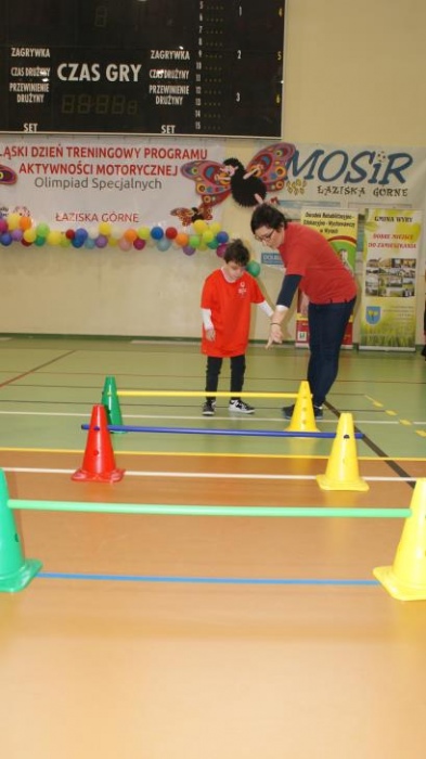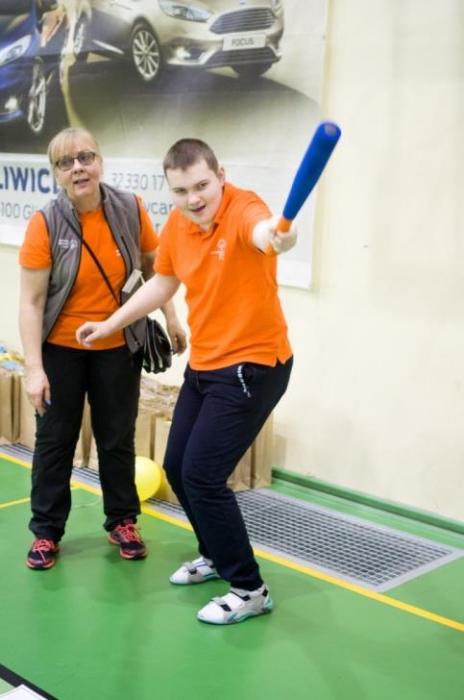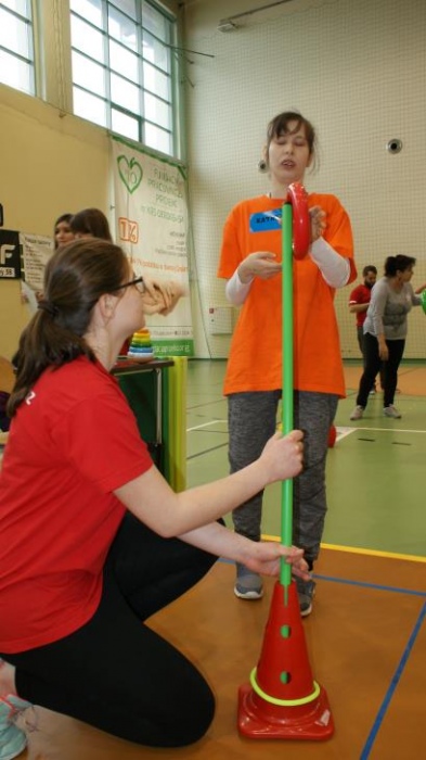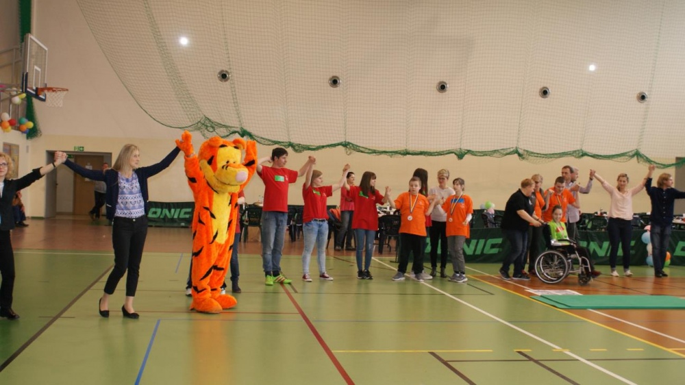 Nasza ekipa w składzie: Katarzyna Kroker, Patrycja Głodel, Paulina Jeszka, Daniel Kramer, Artur Czypiruk, Kuba Szczepankowki oraz Adrian Stebel podczas XXIII Śląskiego Dnia Treningowego Programu Aktywności Motorycznej Olimpiad Specjalnych Łaziska Górne 27.04.2017.