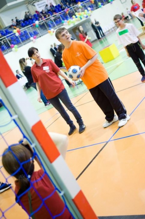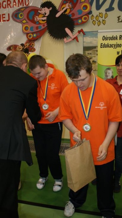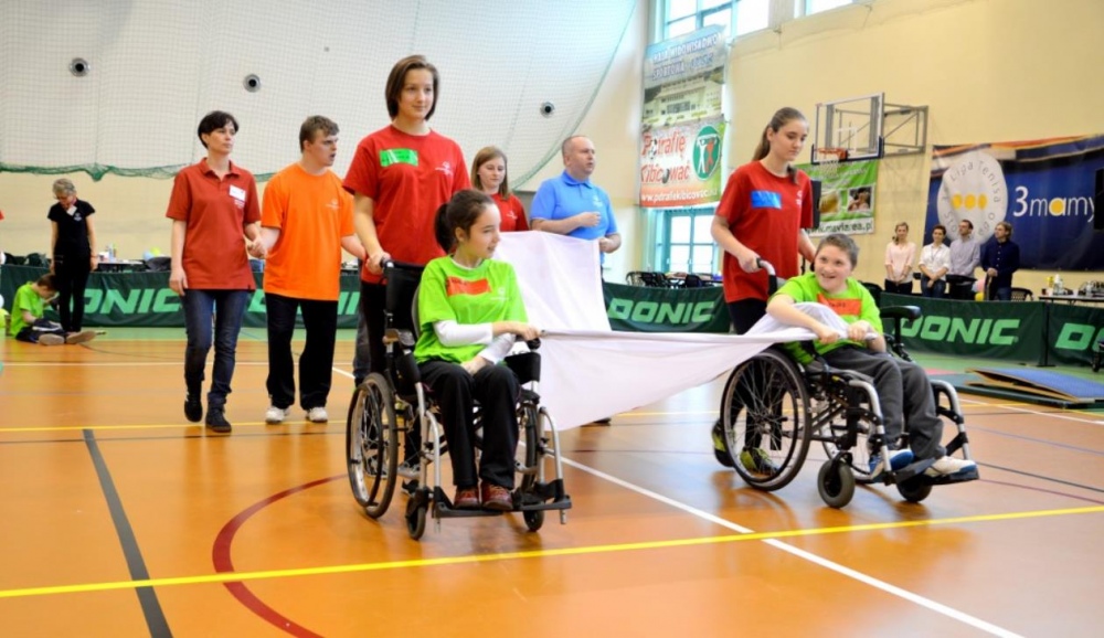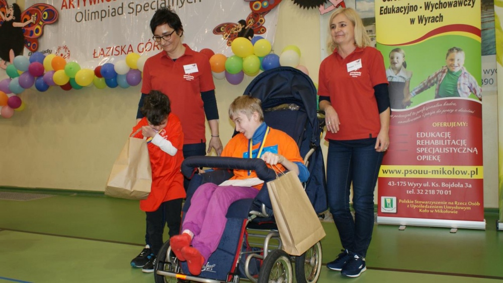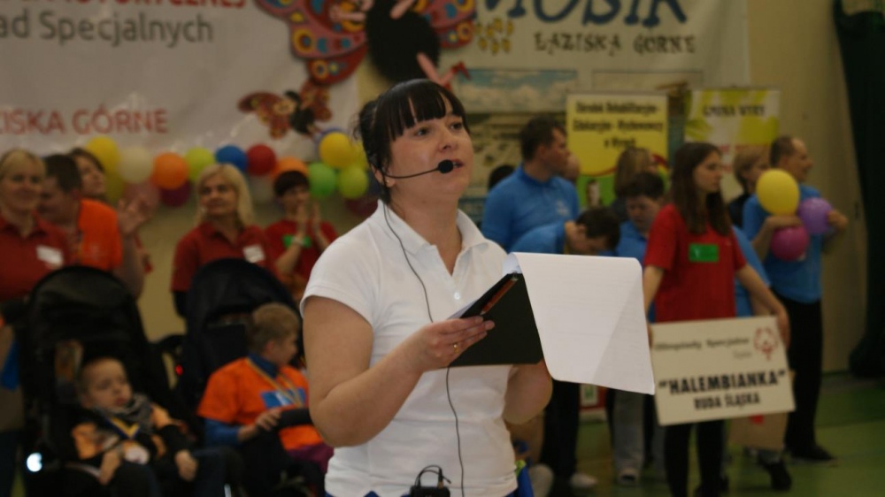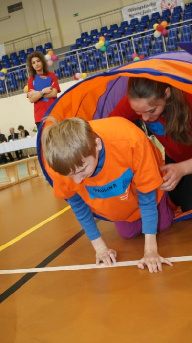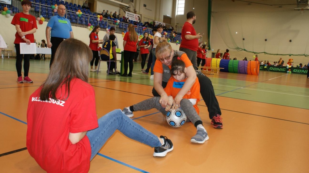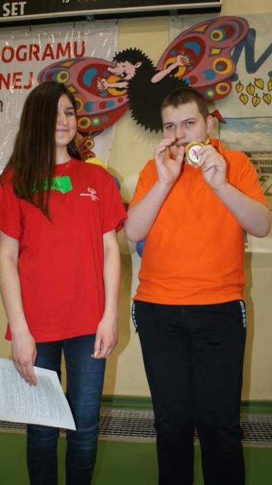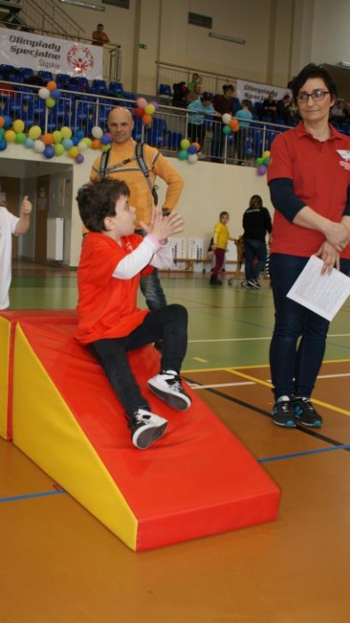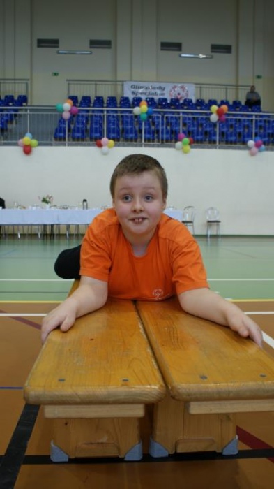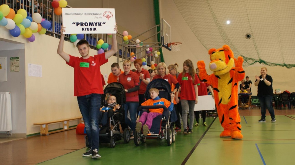 Nasza ekipa w składzie: Katarzyna Kroker, Patrycja Głodel, Paulina Jeszka, Daniel Kramer, Artur Czypiruk, Kuba Szczepankowki oraz Adrian Stebel podczas XXIII Śląskiego Dnia Treningowego Programu Aktywności Motorycznej Olimpiad Specjalnych Łaziska Górne 27.04.2017.