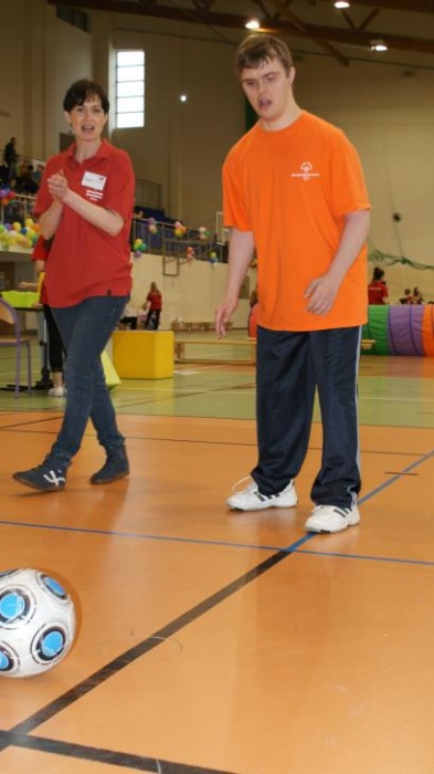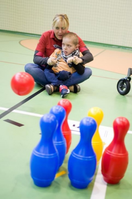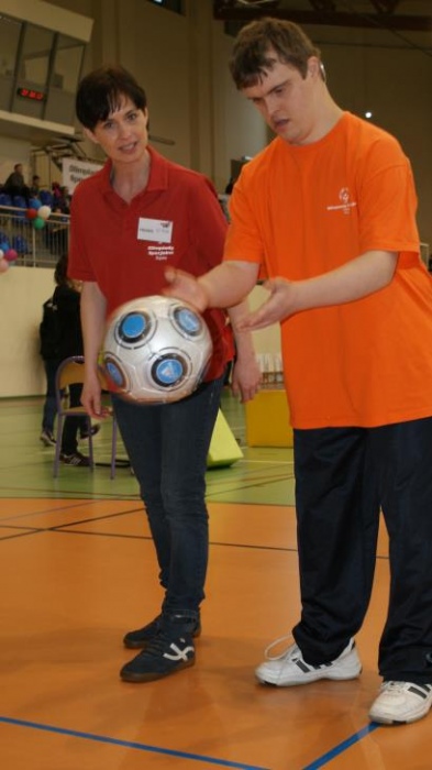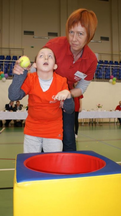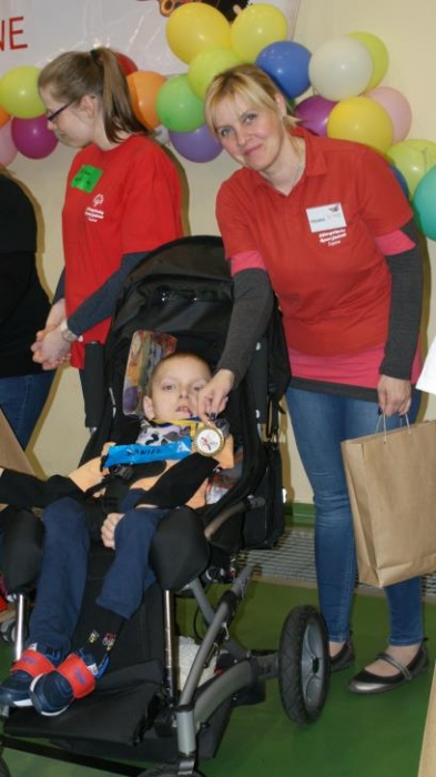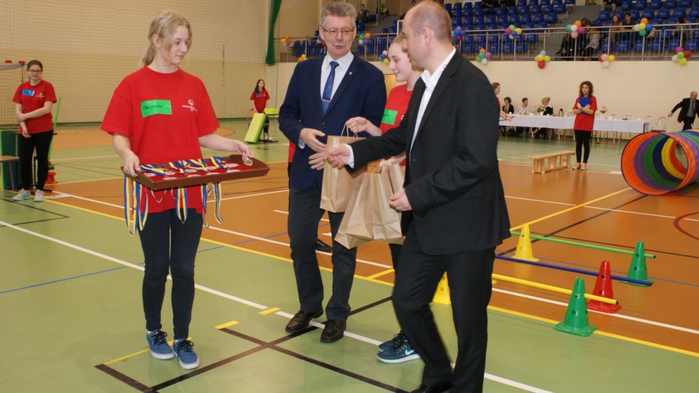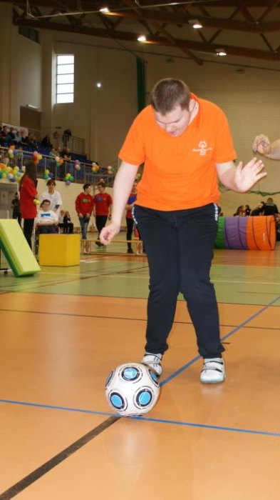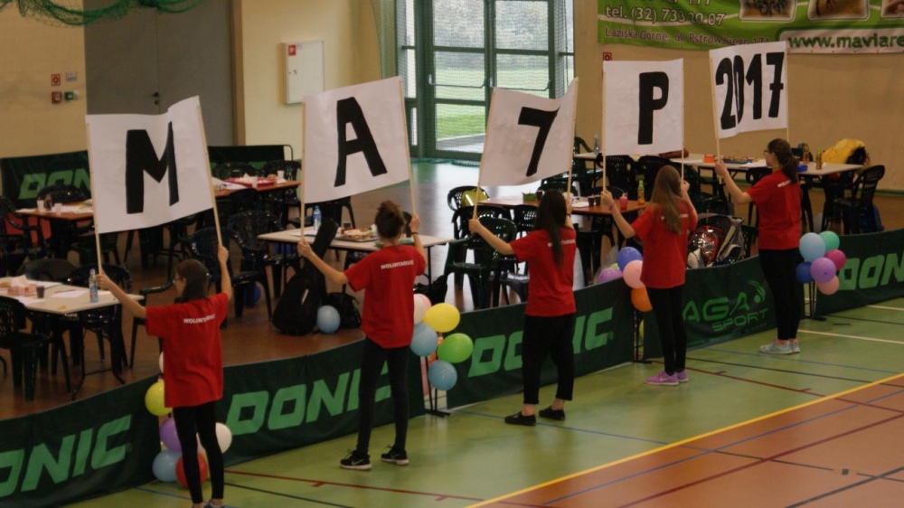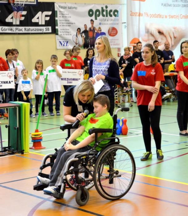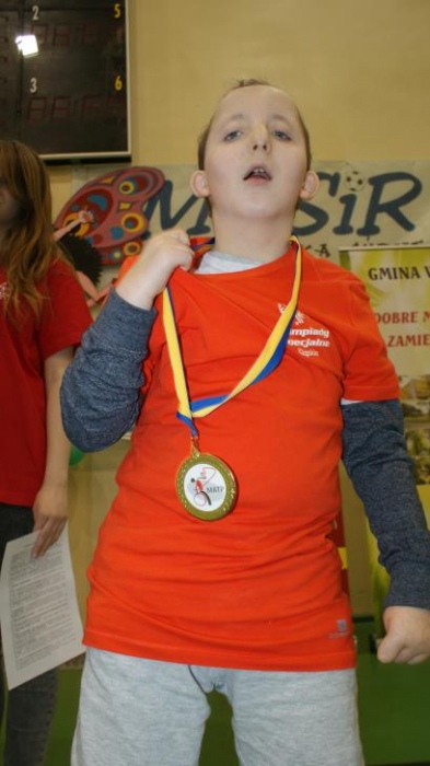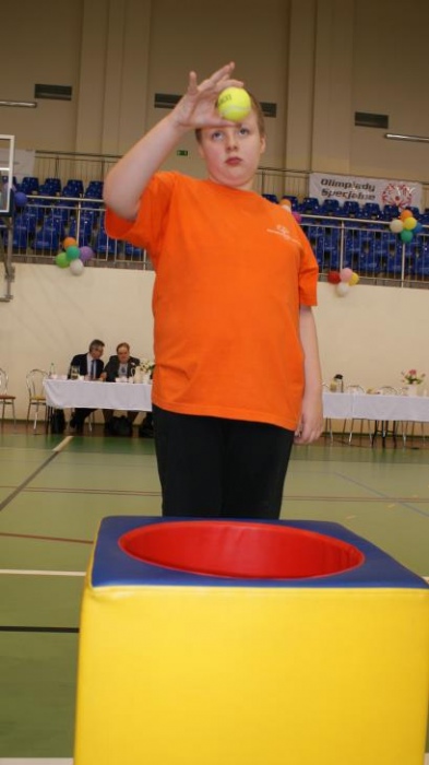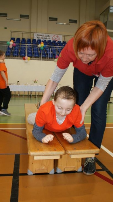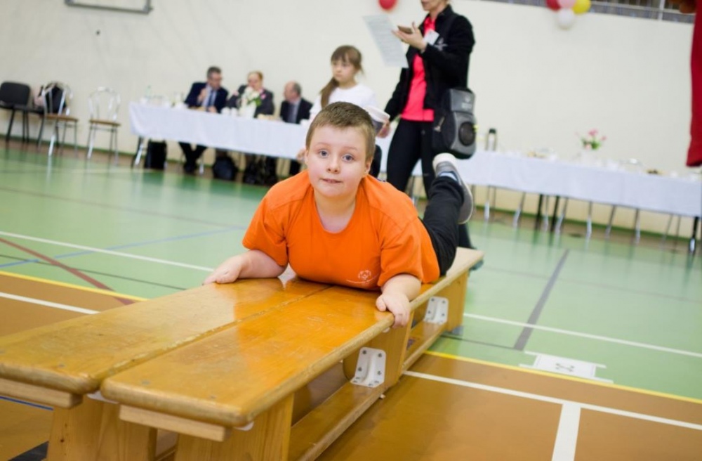 Nasza ekipa w składzie: Katarzyna Kroker, Patrycja Głodel, Paulina Jeszka, Daniel Kramer, Artur Czypiruk, Kuba Szczepankowki oraz Adrian Stebel podczas XXIII Śląskiego Dnia Treningowego Programu Aktywności Motorycznej Olimpiad Specjalnych Łaziska Górne 27.04.2017.