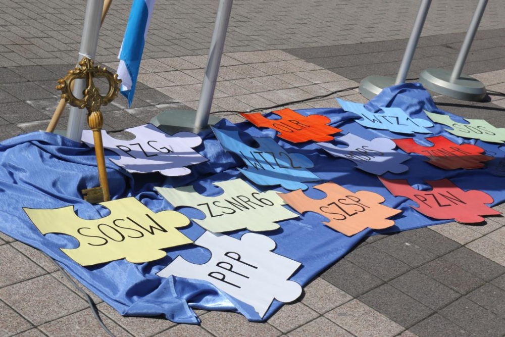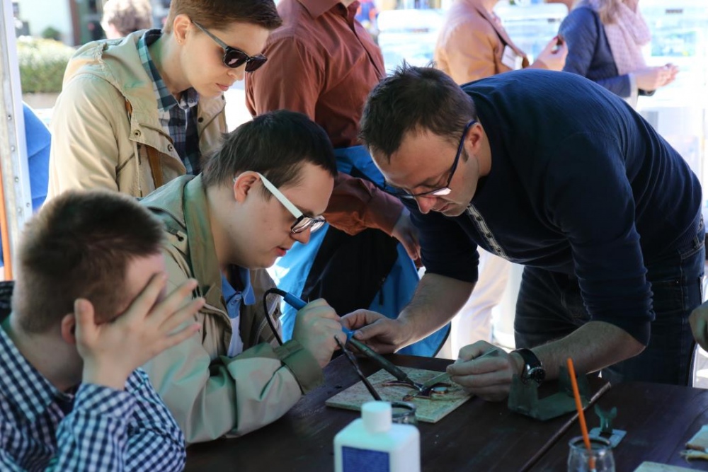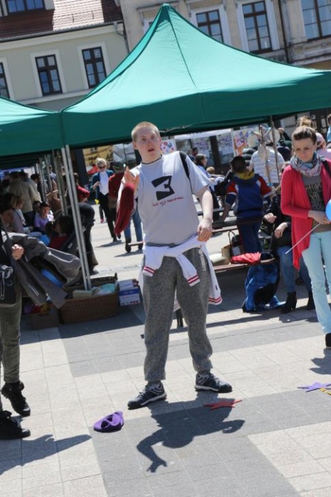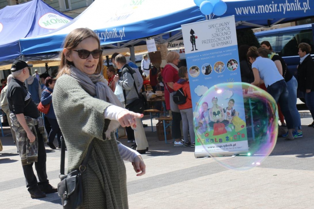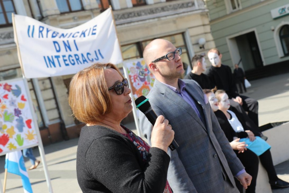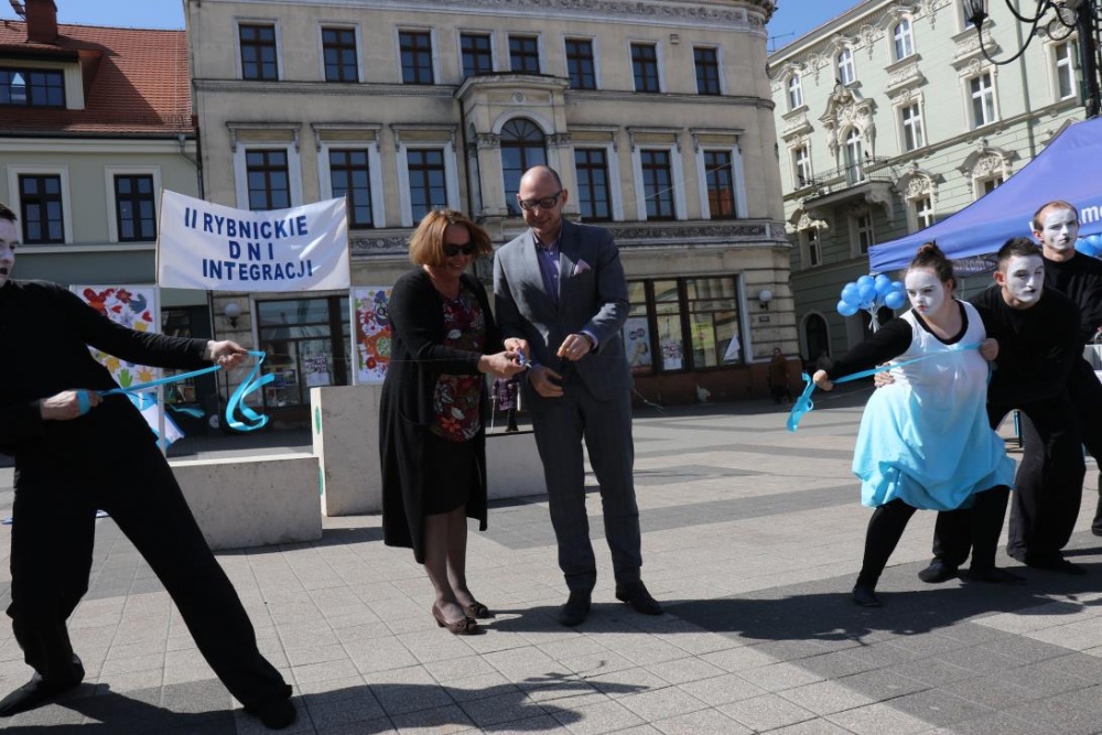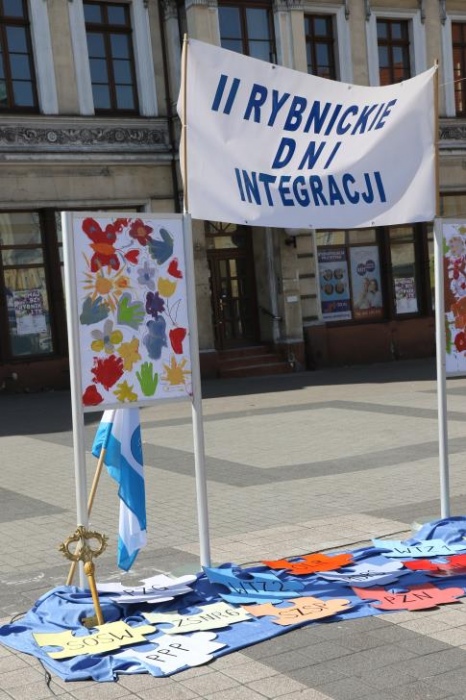 Dnia 11 maja 2017r. na rybnickim rynku odbyła się ostatnia część tegorocznych Rybnickich Dni Integracji, w której wzięła udział także i nasza placówka. Wiceprezydent Miasta Rybnika Piotr Masłowski oraz Przewodnicząca PSONI Koło w Rybniku pani Lidia Moc uroczyście dokonali otwarcia poplenerowej wystawy malarskiej "Pod Gołym Niebem". Wszyscy zebrani na rynku mieli okazję uczestniczyć w szeregu przygotowanych na ten dzień atrakcji, wśród których na główny plan wysuwały się warsztaty rękodzielnicze oraz gry i zabawy ruchowe. Tu należy doać, iż za część związaną z zabawami i grami dla uczesników imprezy byli odpowiedzialni także i nasi pracownicy:)
