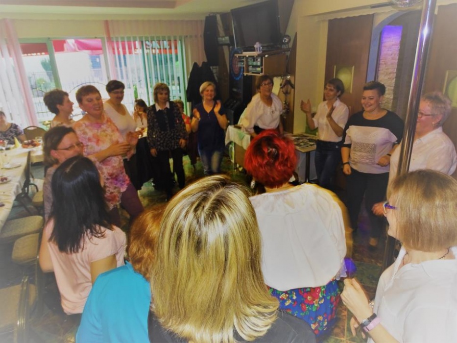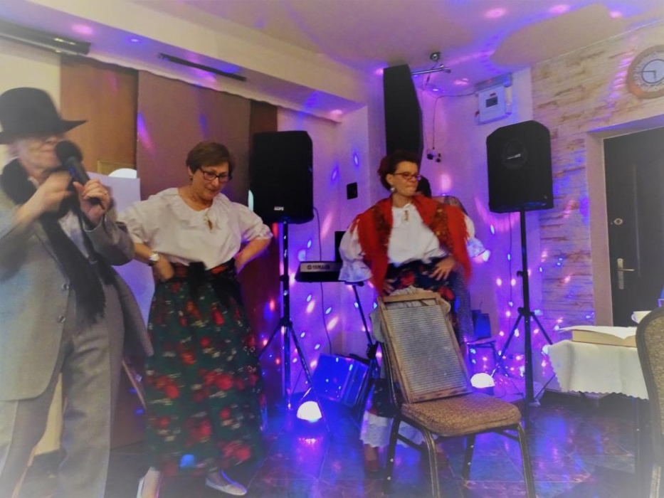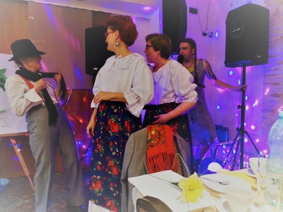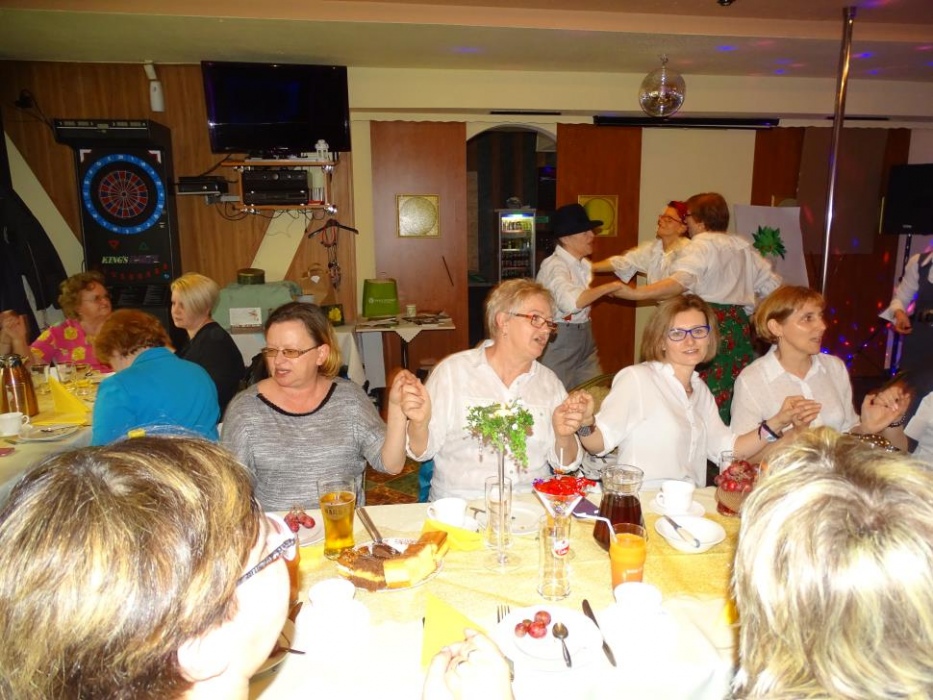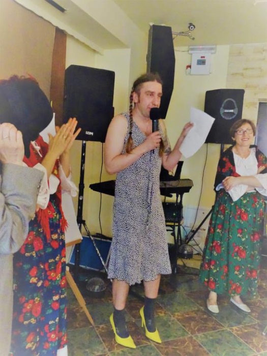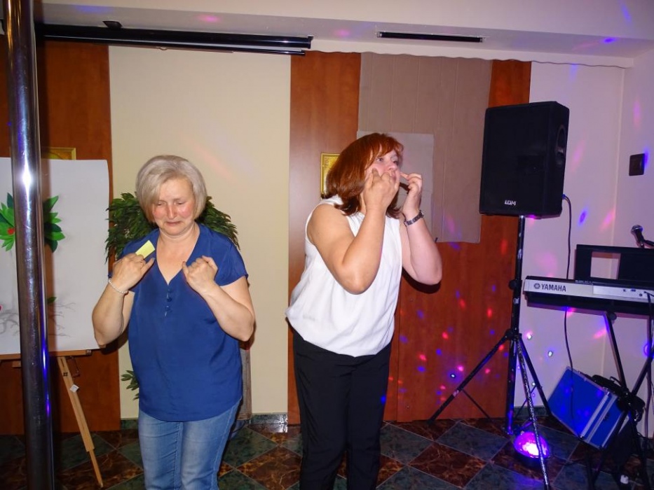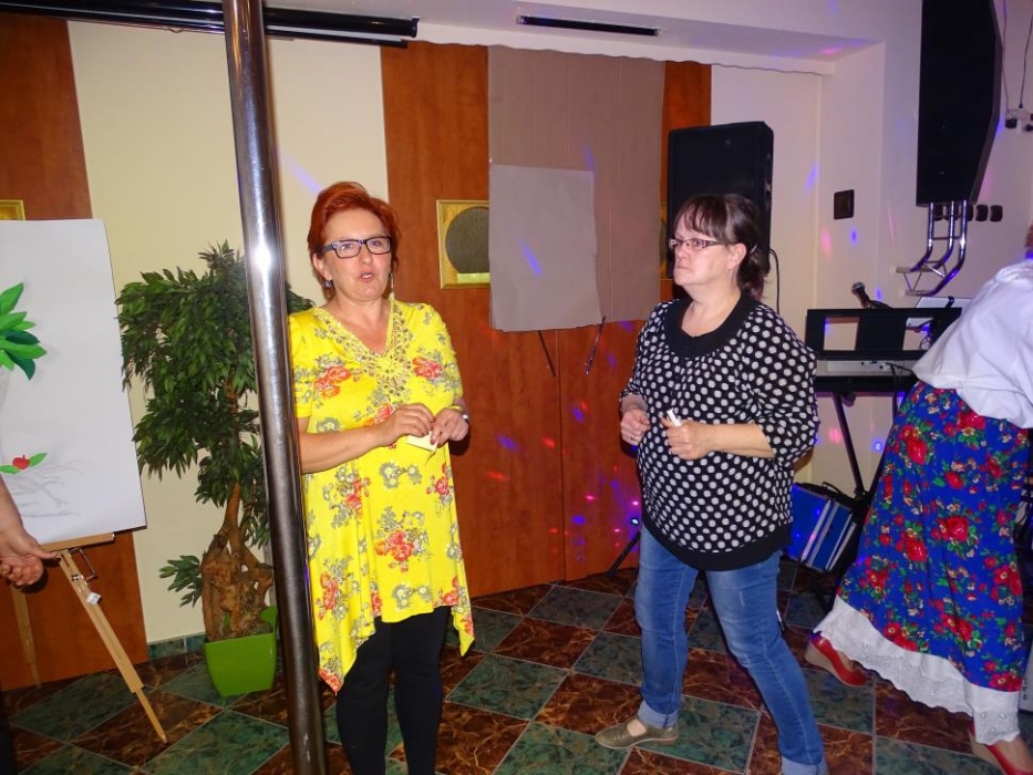 Właściwą - rozrywkową część " Majówki" , rozpoczął mini występ przebranych współorganizatorów, którzy zatańczyli i zaśpiewali, parodiując utwór " My Słowianki". Rozbawione Panie brały udział w zaplanowanych konkursach - składanie puzzli przestrzennych, kalambury oraz karaoke. Wszyscy doskonale bawili się tańcząc i śpiewając w proponowanym przez pana Adama i siebie repertuarze muzycznym.