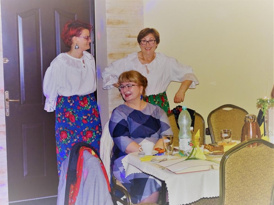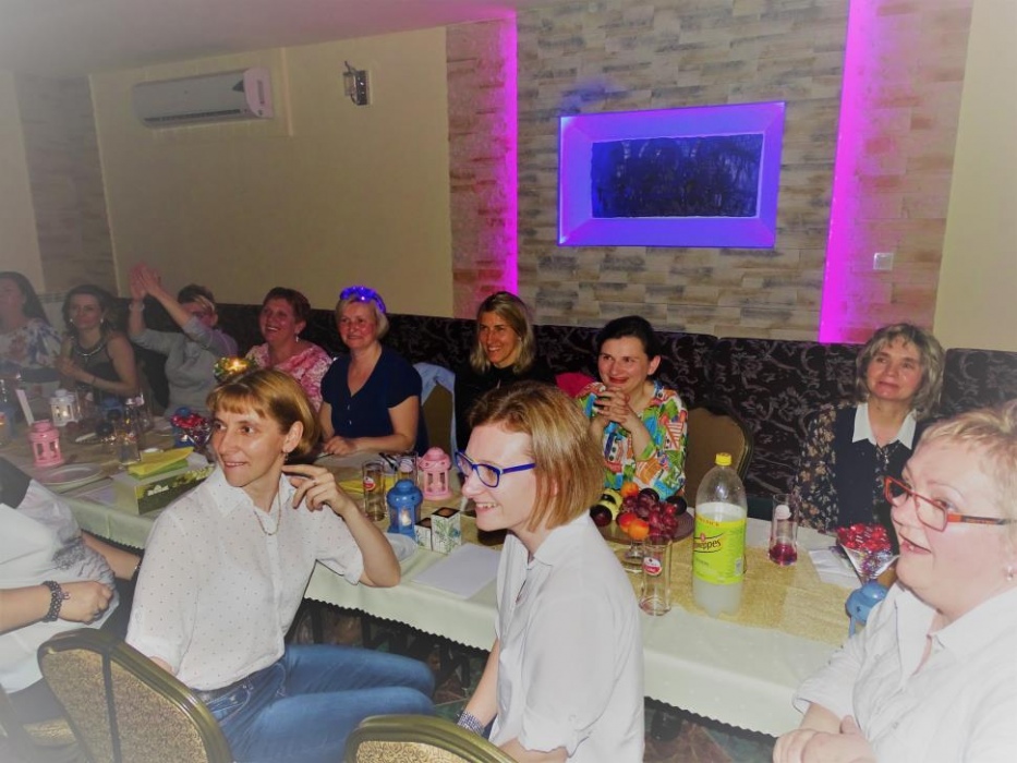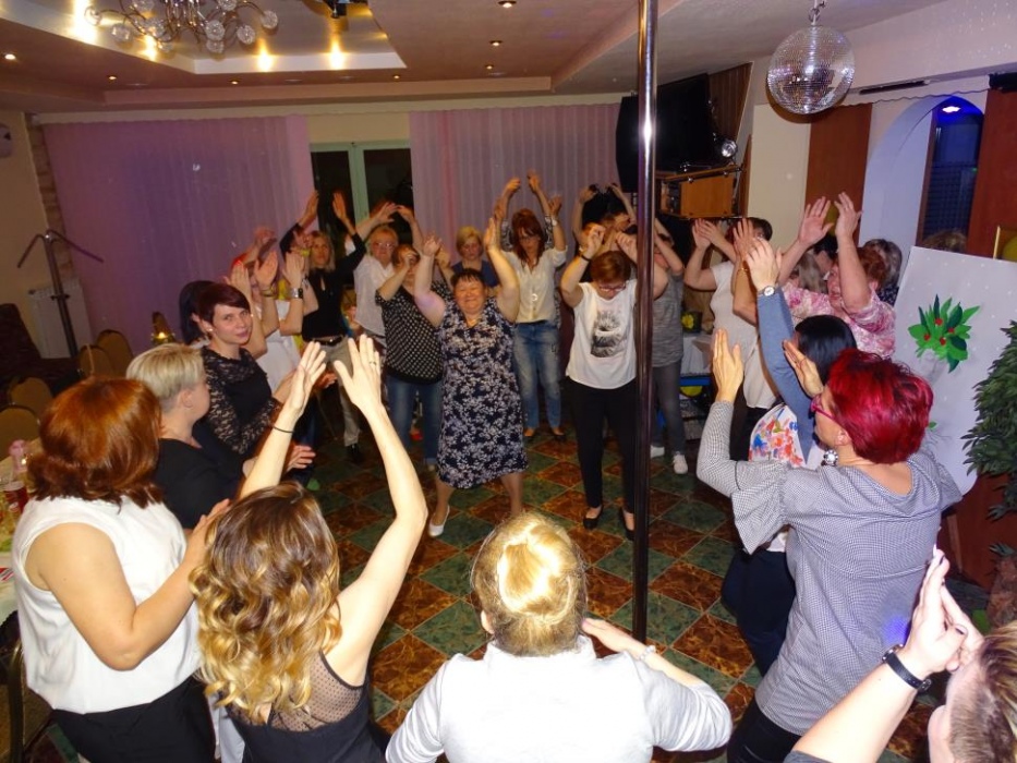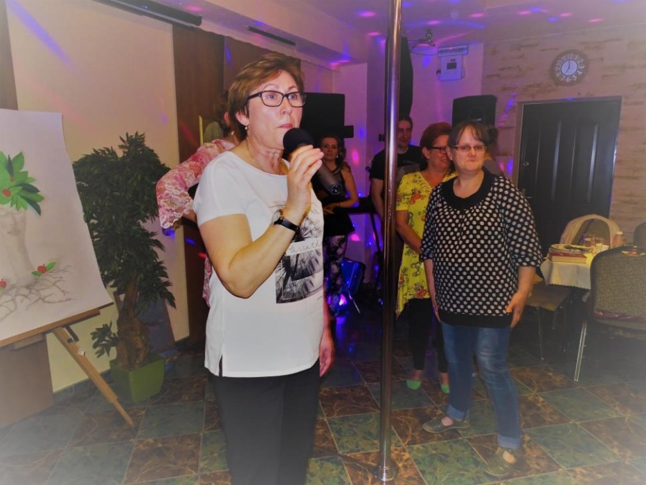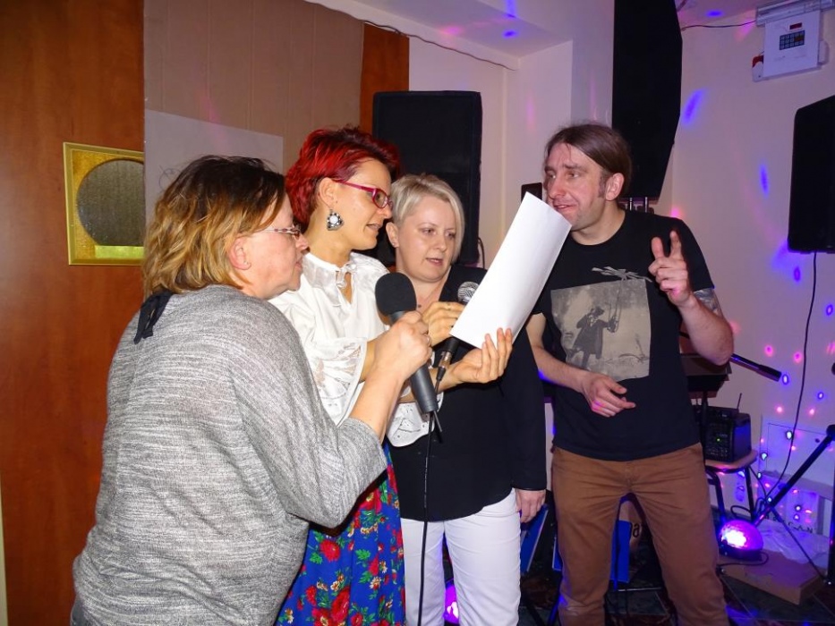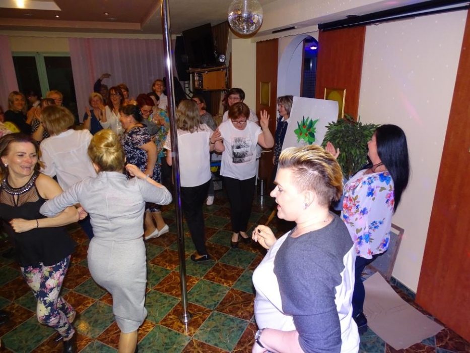 Właściwą - rozrywkową część " Majówki" , rozpoczął mini występ przebranych współorganizatorów, którzy zatańczyli i zaśpiewali, parodiując utwór " My Słowianki". Rozbawione Panie brały udział w zaplanowanych konkursach - składanie puzzli przestrzennych, kalambury oraz karaoke. Wszyscy doskonale bawili się tańcząc i śpiewając w proponowanym przez pana Adama i siebie repertuarze muzycznym.