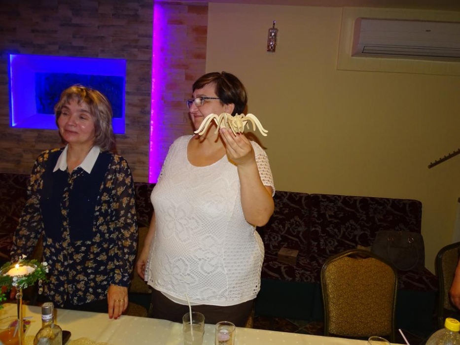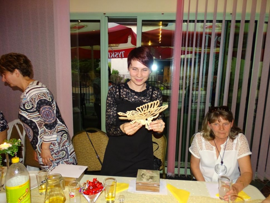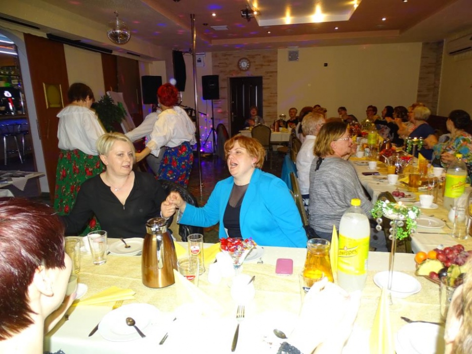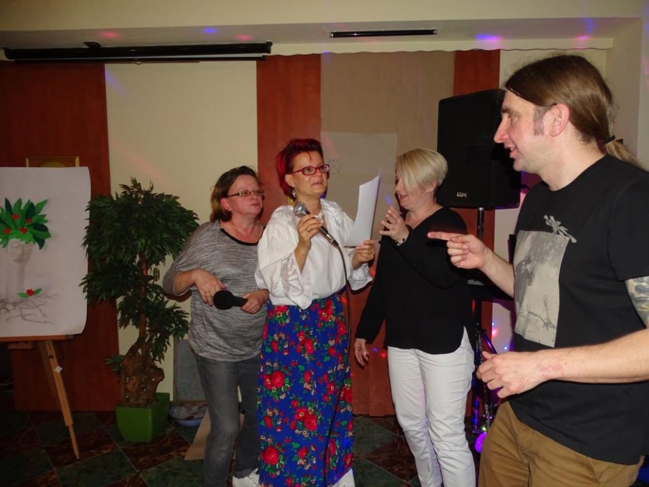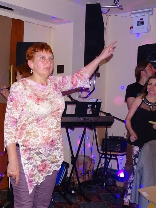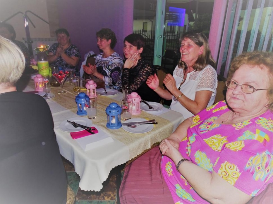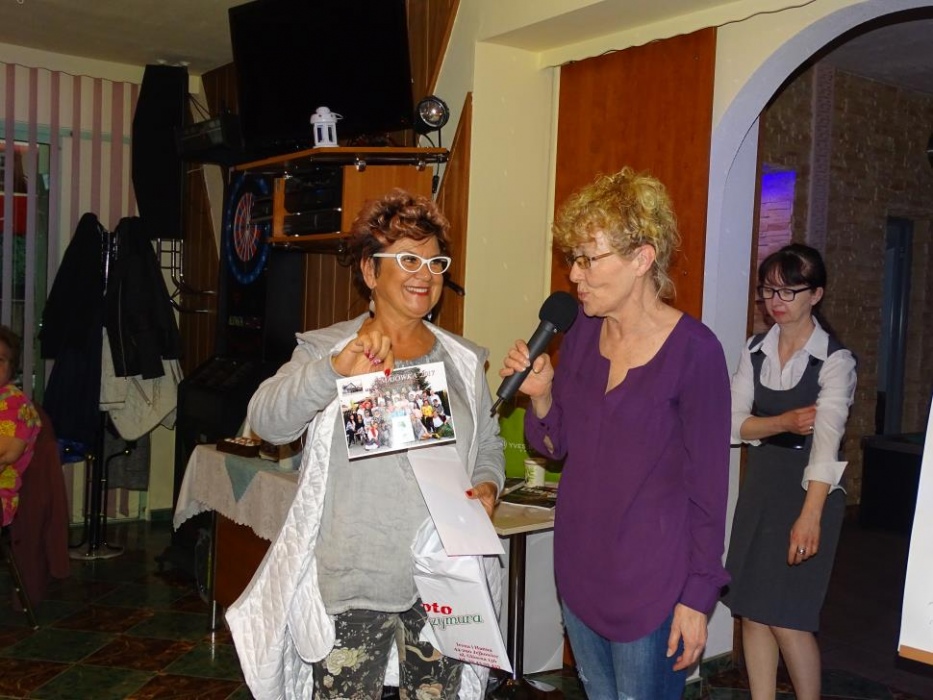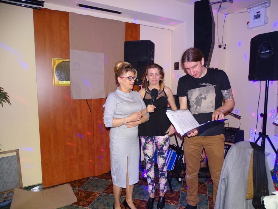 Pani Dyrektor Danuta Ficner towarzyszyła imprezie bawiąc się razem z uczestnikami. Uhonorowała także oficjalnym podziękowaniem sponsorów - panią Lidię Trzeciok, właścicielkę restauracji "Prima" i panią Irenę Szymura - fotograf. Ta druga na imprezie zjawiła się ponownie, wręczając wszystkim wywołane, pamiątkowe zdjęcie grupowe.