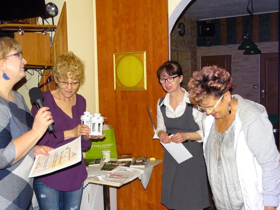Była też chwila refleksji i wzruszenia, kiedy przy zgaszonym świetle zabłysnęły migoczące światełka latarenek i popłynęły dzwięki utworu " Bóg się mamo nie pomylił". Te chwile zwieńczył celowo dobrany tekst i wiersz. Każda ze zgromadzonych pań po spotkaniu zabierała latarenkę do domu, na pamiątkę wspólnych chwil imprezy, dzięki okazanemu sercu i wsparciu materialnym pani Estery Cichy na prośbę organizatora.