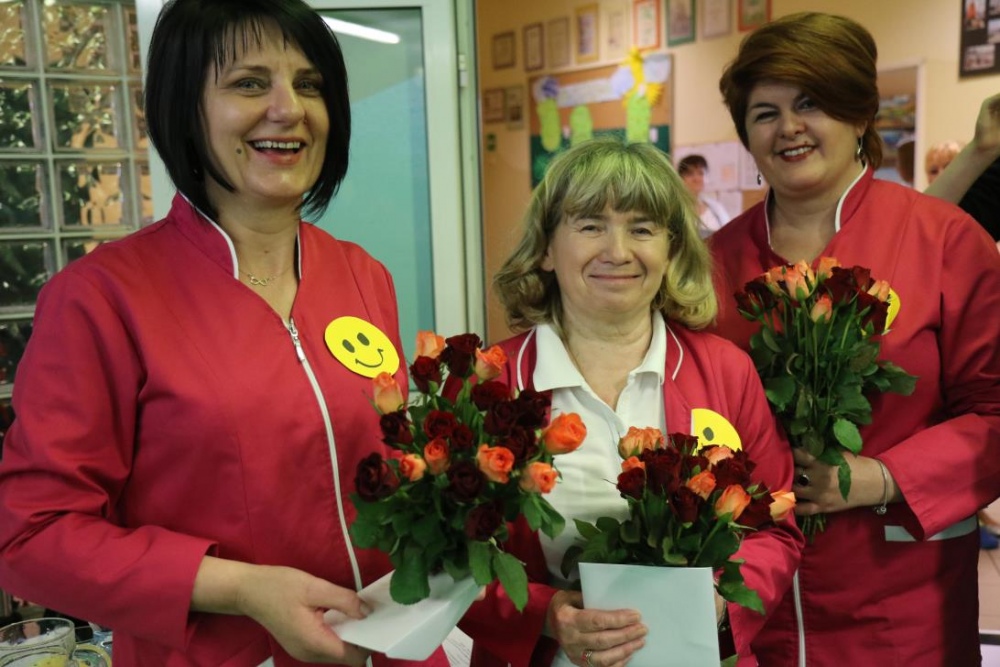 Na wstępie Dyrektor Lucyna Ibrom powitała wszystkich zebranych gości i uczestników, a następnie w imieniu społeczności szkolnej złożyła życzenia pielęgniarkom i wraz z Wicedyrektorem Danutą Ficner wręczyły kwiaty i piękne kartki. Odśpiewano tradycyjne „Sto lat”:)