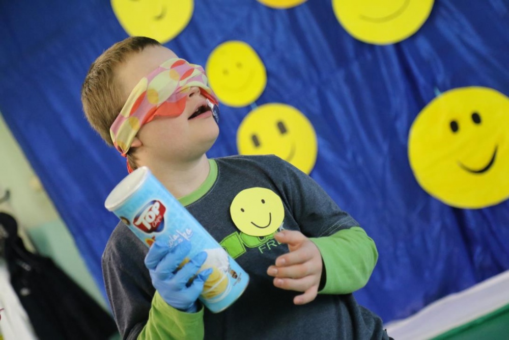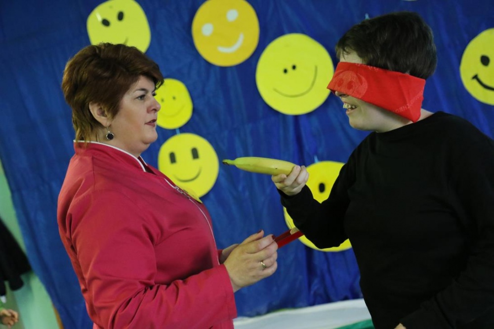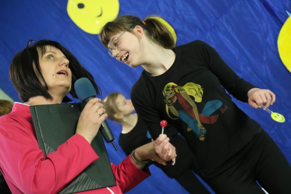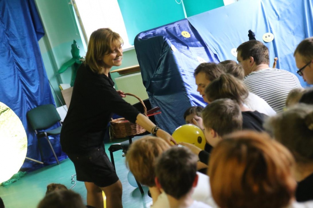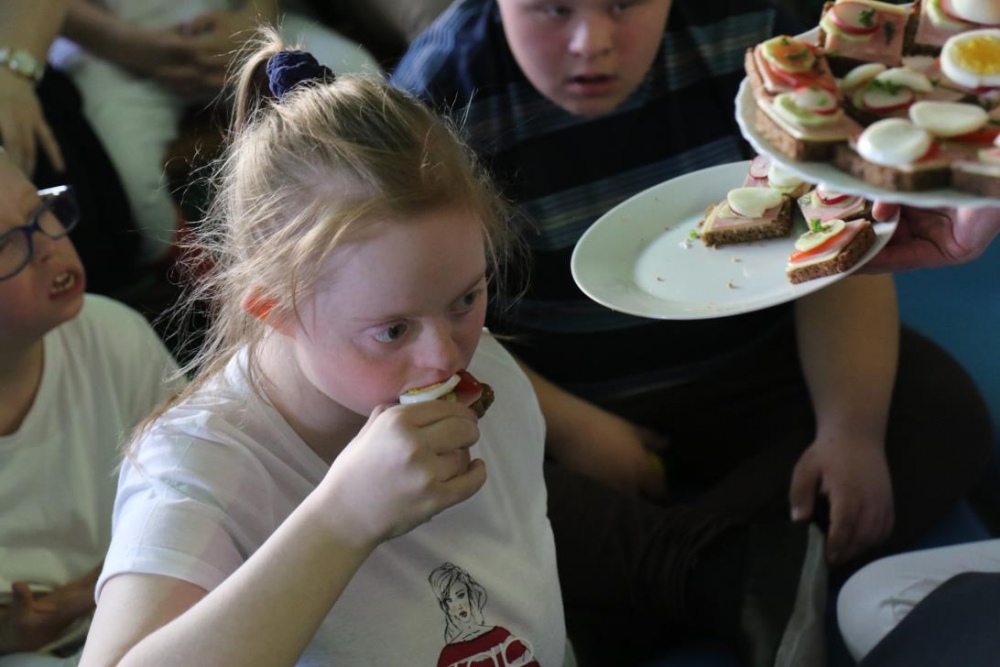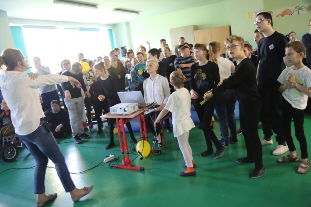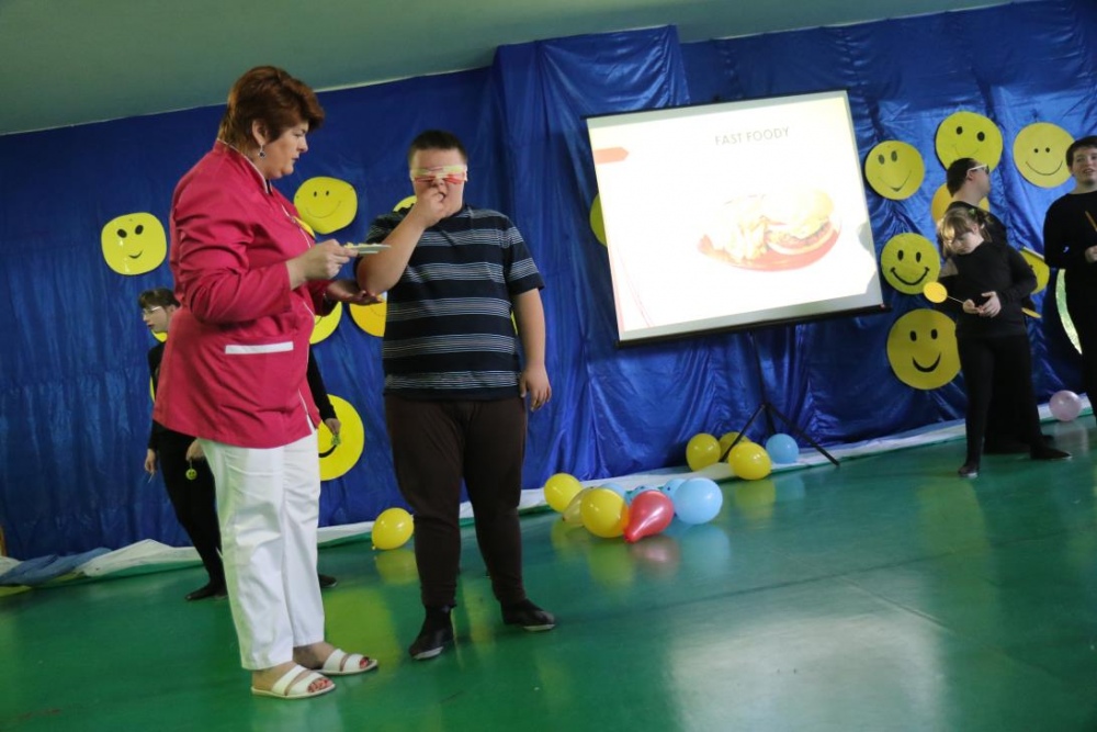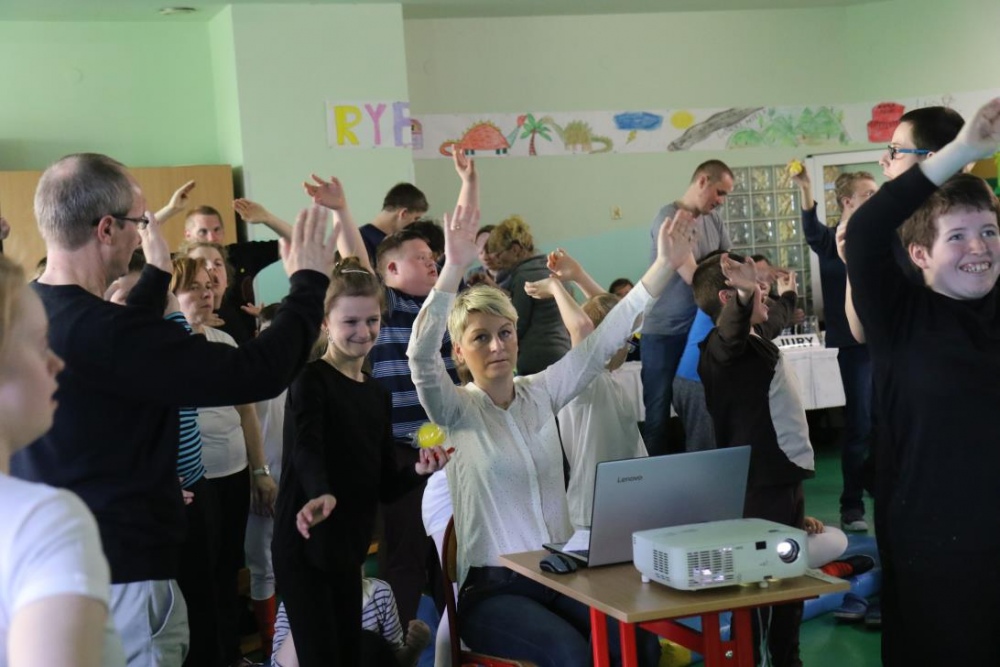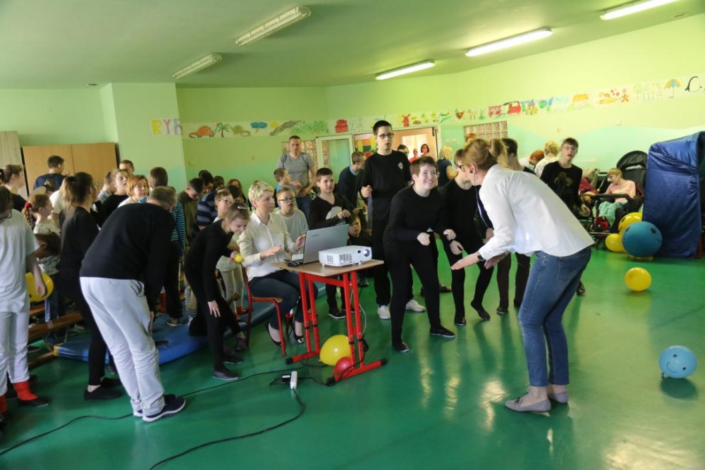 Po przedstawieniu – znikły smutne minki, a uśmiech zagościł nawet na dekoracji:) W tak dobrym nastroju rozpoczęły się zmagania uczniów w różnych konkurencjach dotyczących zdrowia i bezpieczeństwa: prawidłowego odżywiania, higieny, znajomości różnych dyscyplin sportowych, wiedzy z zakresu ruch drogowego, w tym znajomości numerów alarmowych. W trakcie konkursu nastąpiła degustacja zdrowych kanapek, a uczniowie głębiej niepełnosprawni smakowali miksy zdrowych produktów. Całość przeplatana była tematycznymi piosenkami i ćwiczeniami ruchowymi prowadzonymi przez nauczycieli panie: Joannę Sobik i Agnieszkę Malinowską.