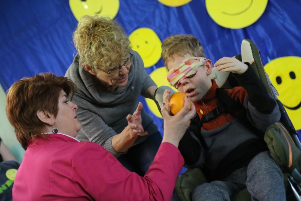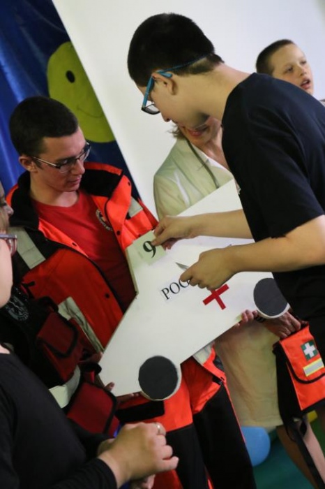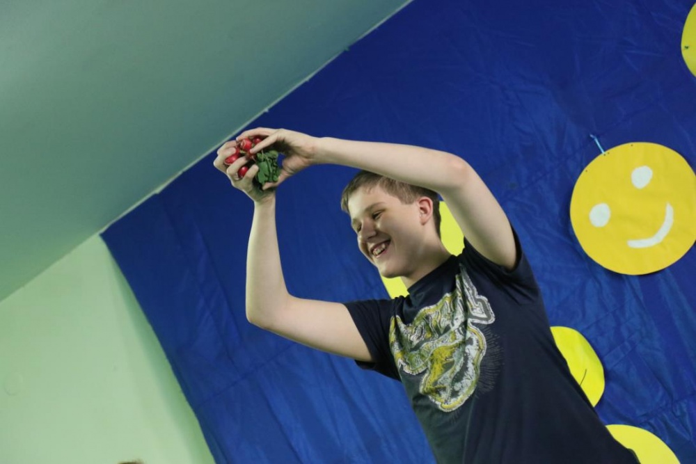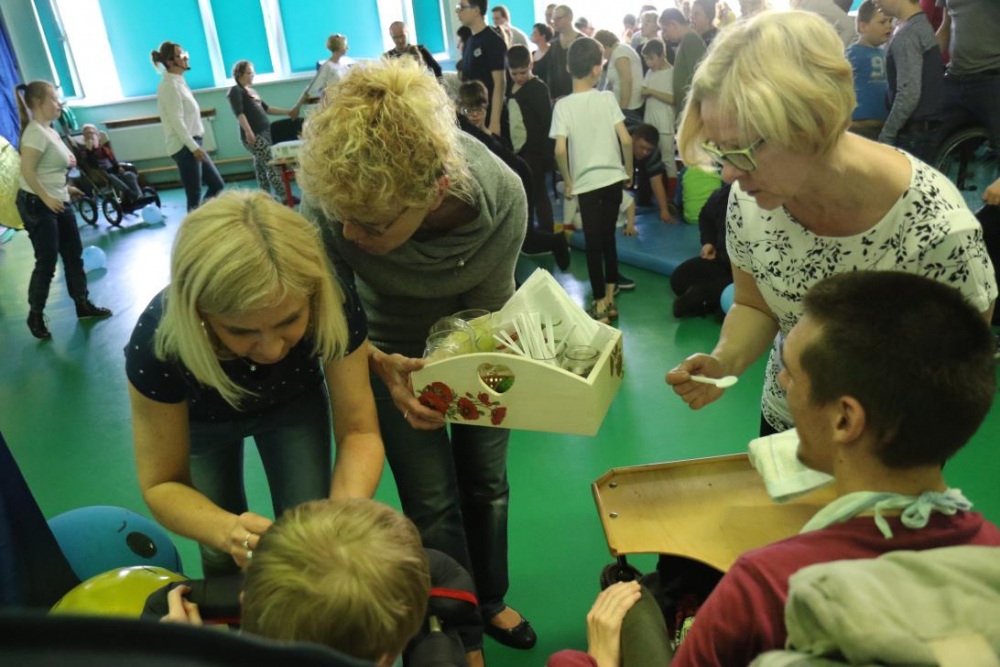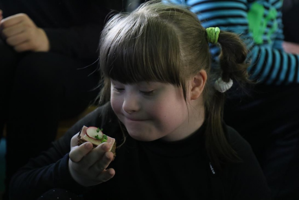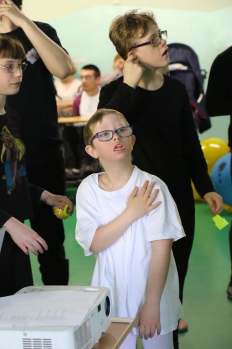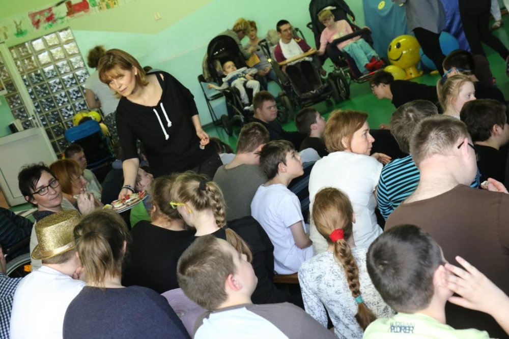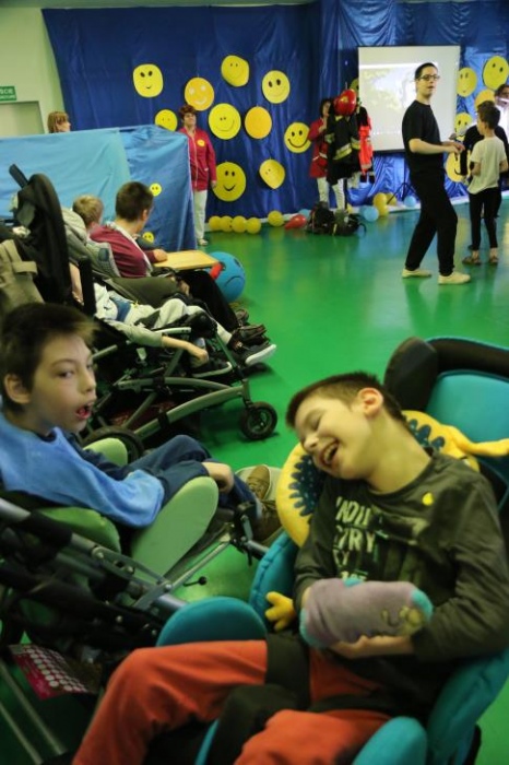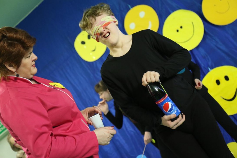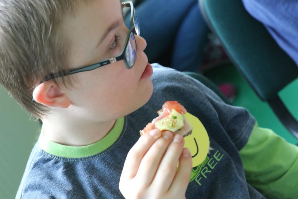 Po przedstawieniu – znikły smutne minki, a uśmiech zagościł nawet na dekoracji:) W tak dobrym nastroju rozpoczęły się zmagania uczniów w różnych konkurencjach dotyczących zdrowia i bezpieczeństwa: prawidłowego odżywiania, higieny, znajomości różnych dyscyplin sportowych, wiedzy z zakresu ruch drogowego, w tym znajomości numerów alarmowych. W trakcie konkursu nastąpiła degustacja zdrowych kanapek, a uczniowie głębiej niepełnosprawni smakowali miksy zdrowych produktów. Całość przeplatana była tematycznymi piosenkami i ćwiczeniami ruchowymi prowadzonymi przez nauczycieli panie: Joannę Sobik i Agnieszkę Malinowską.