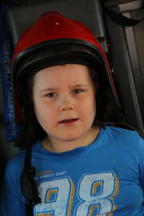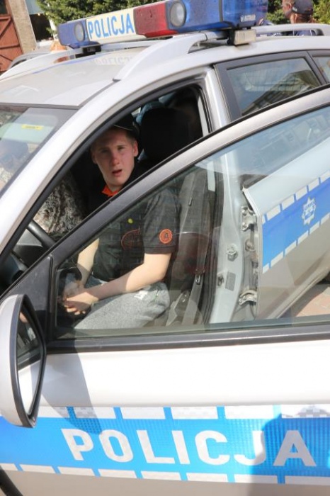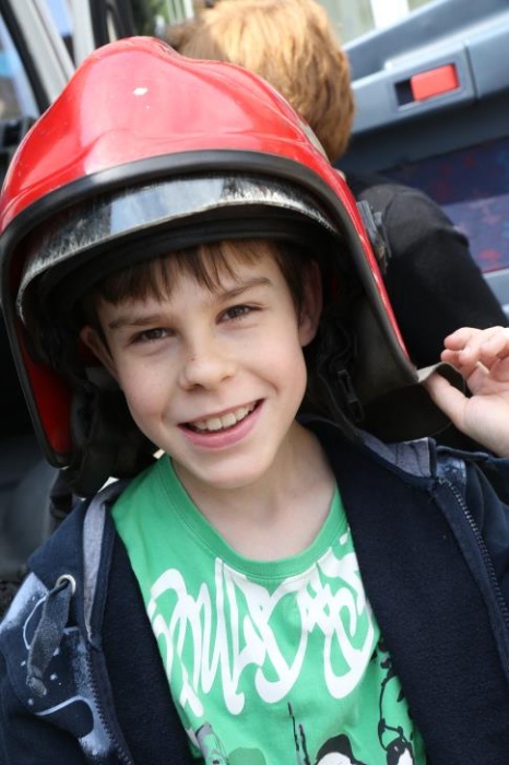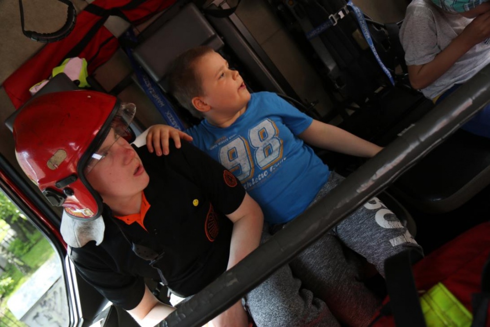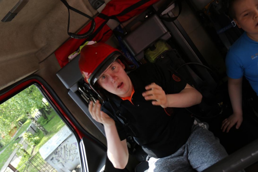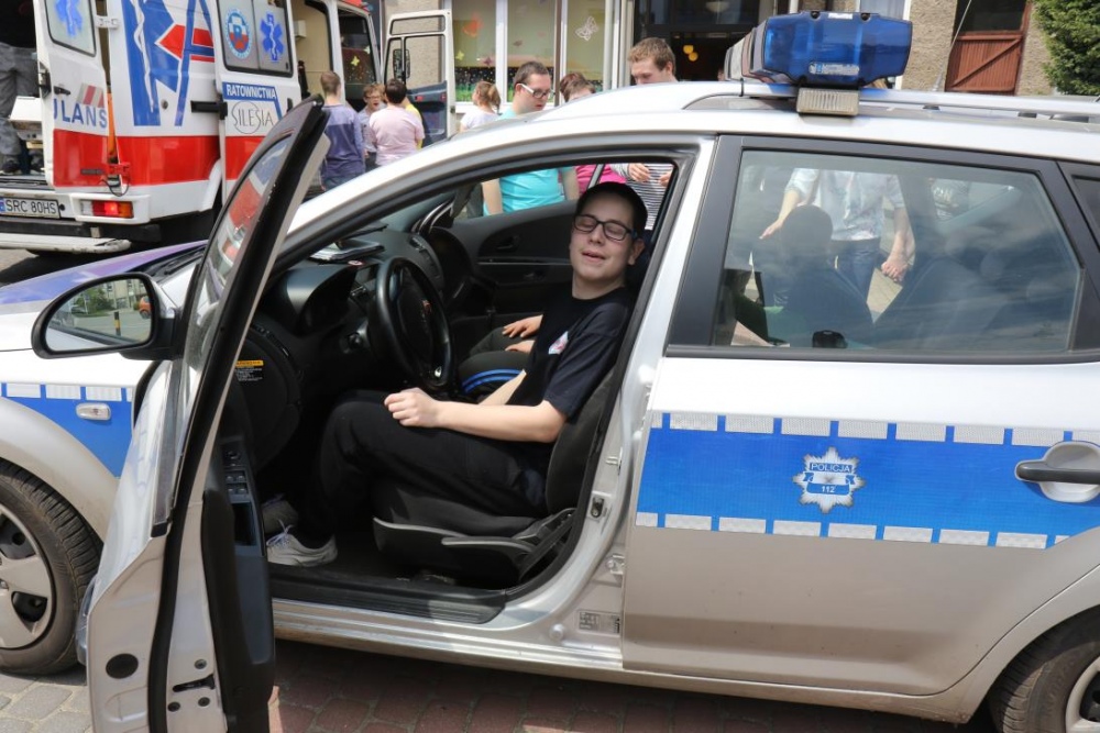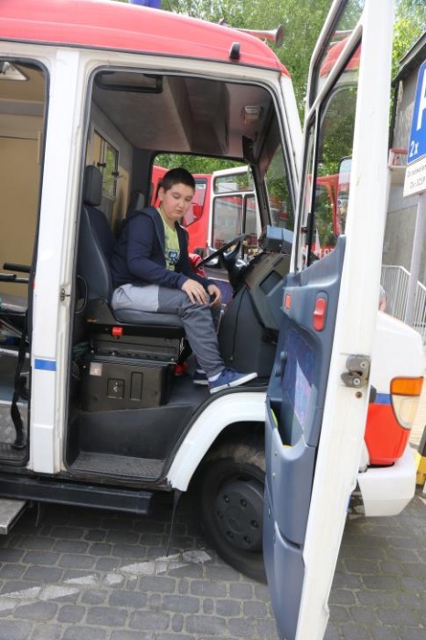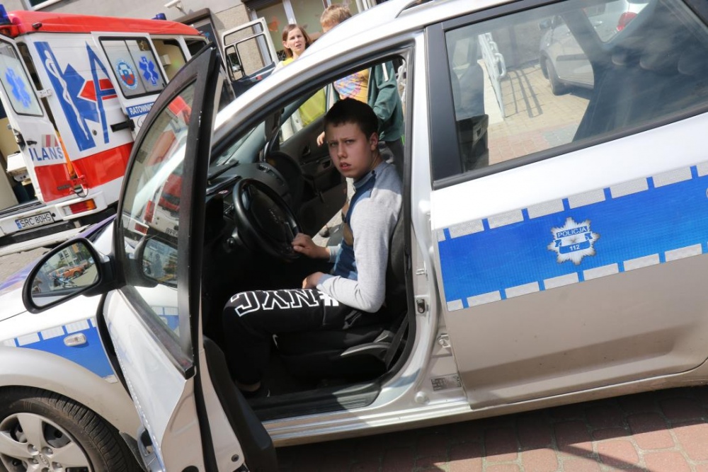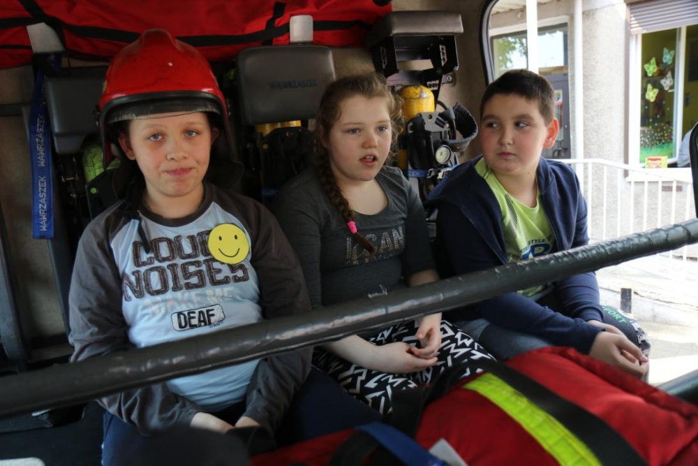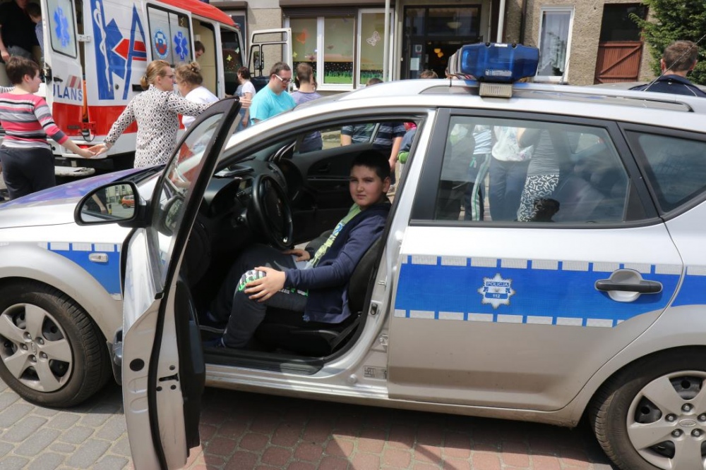 Po zakończonym konkursie uczniowie wyszli na podwórko by od wewnątrz zobaczyć :karetkę, samochód policyjny i wóz strażacki. Mogli wszystkiego dotknąć, położyć się na noszach, nałożyć hełm, usłyszeć głos syren. Radość była ogromna;)
