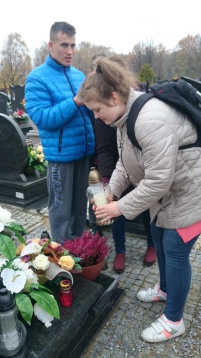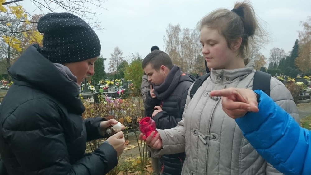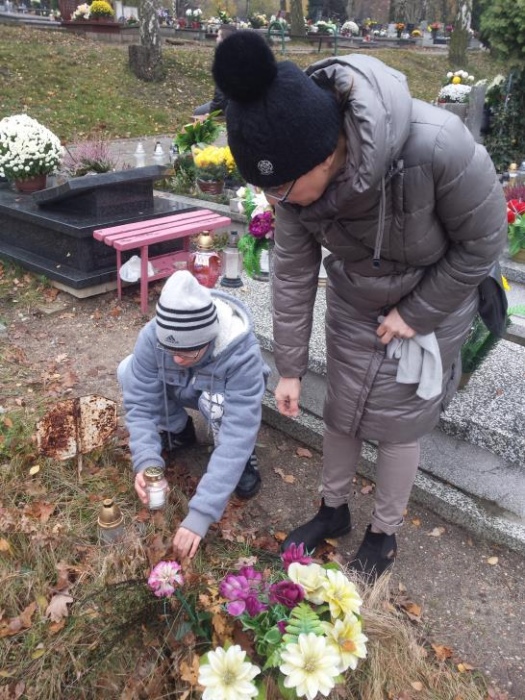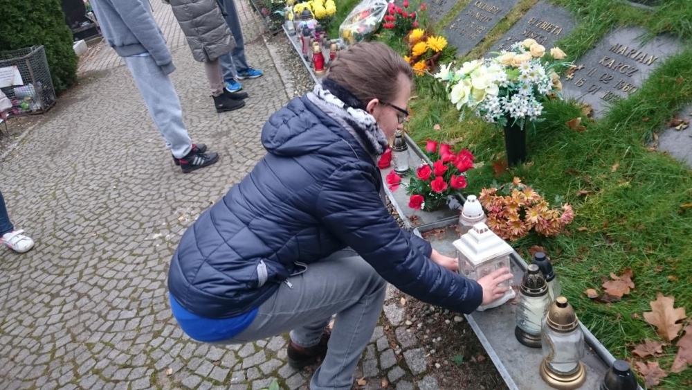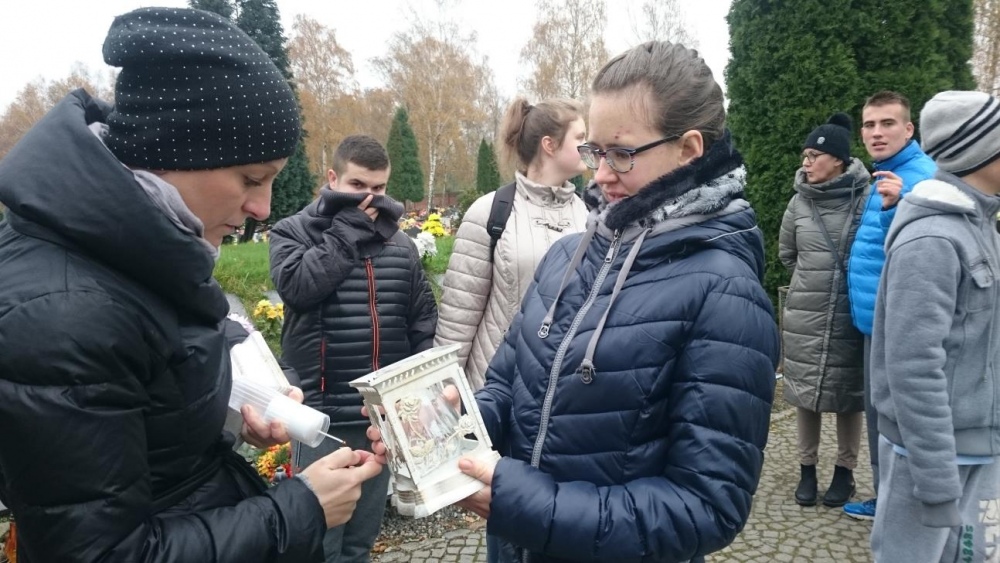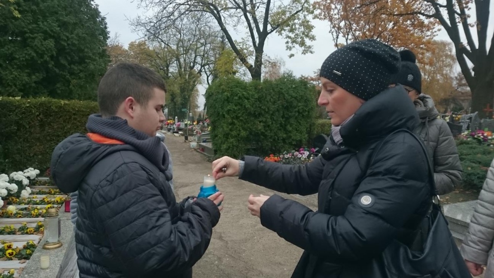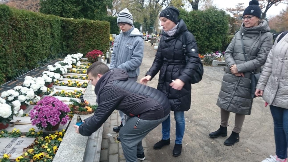 Tradycją już stało się, że każdego roku w okresie listopadowym odwiedzamy rybnicki cmentarz. Po raz pierwszy jednak nasze wyjście odbyło się po dniu Wszystkich Świętych. Mogliśmy zobaczyć zatem pomniki z licznymi kwiatami oraz świeczkami. Sami również zapaliliśmy znicze na grobach. Był to czas wyciszenia i zadumy.