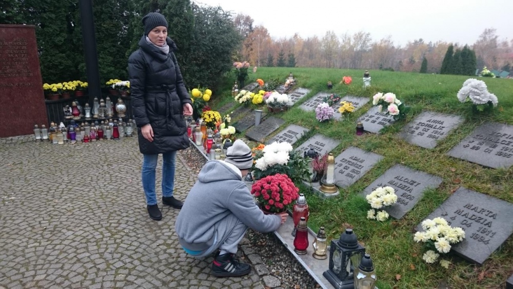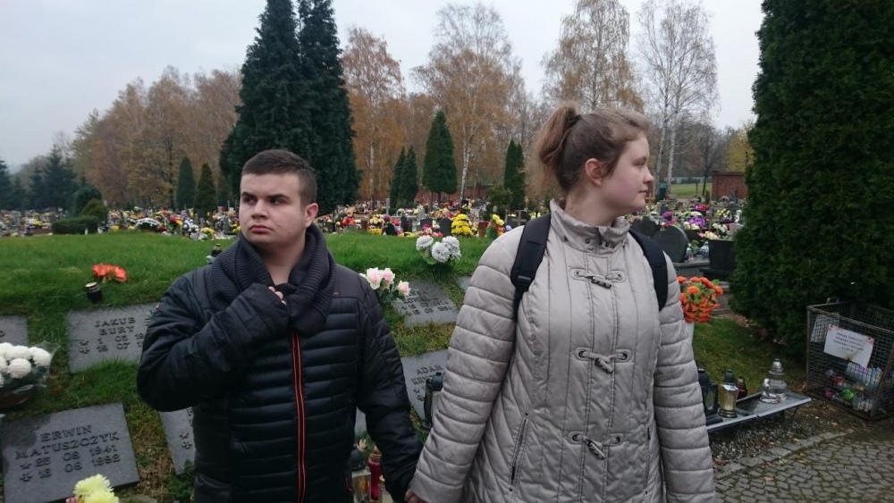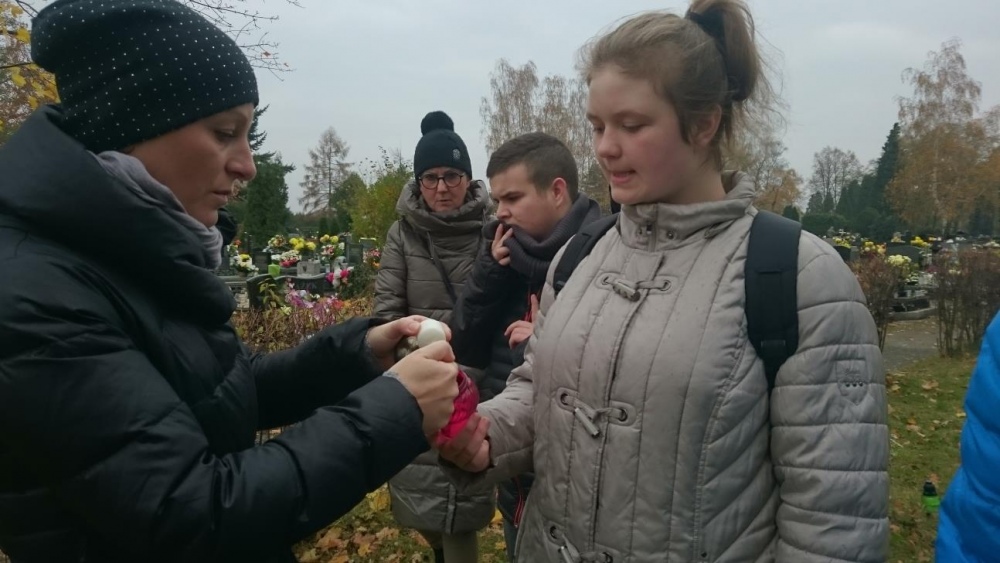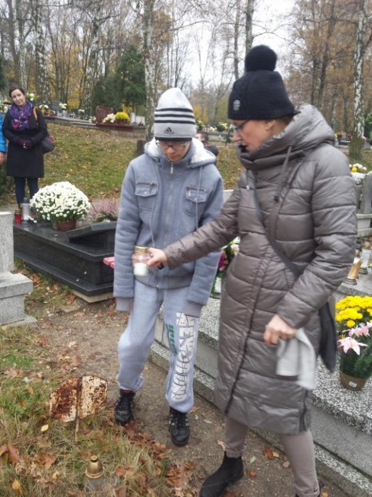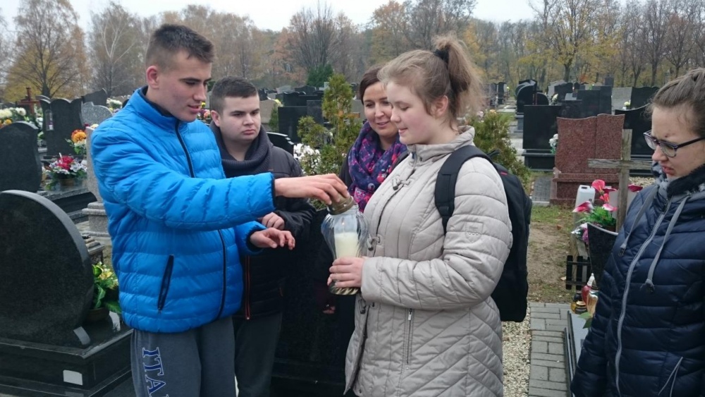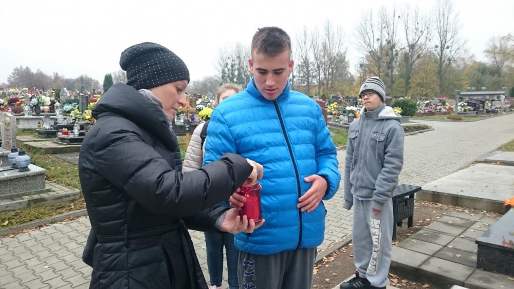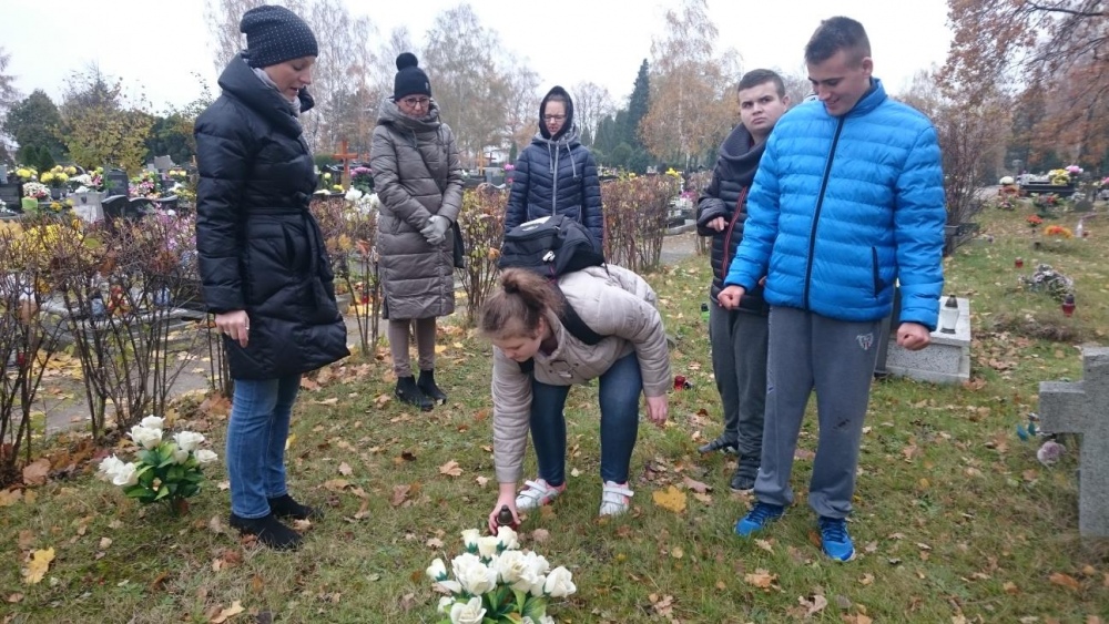 Tradycją już stało się, że każdego roku w okresie listopadowym odwiedzamy rybnicki cmentarz. Po raz pierwszy jednak nasze wyjście odbyło się po dniu Wszystkich Świętych. Mogliśmy zobaczyć zatem pomniki z licznymi kwiatami oraz świeczkami. Sami również zapaliliśmy znicze na grobach. Był to czas wyciszenia i zadumy.