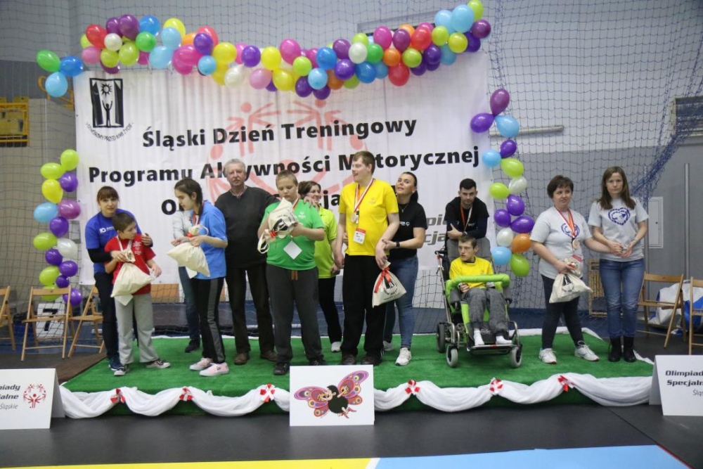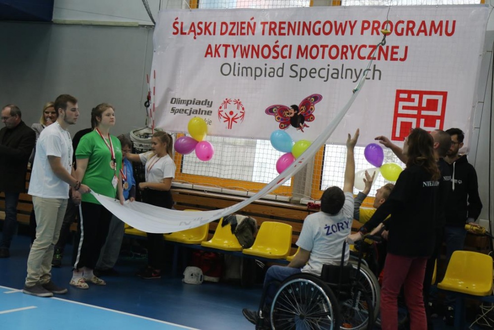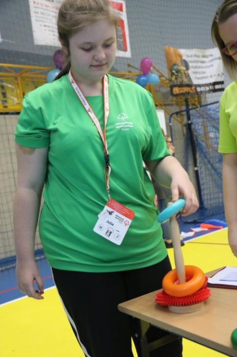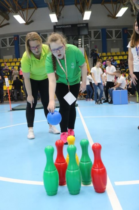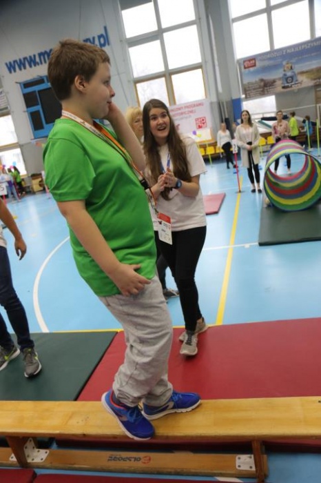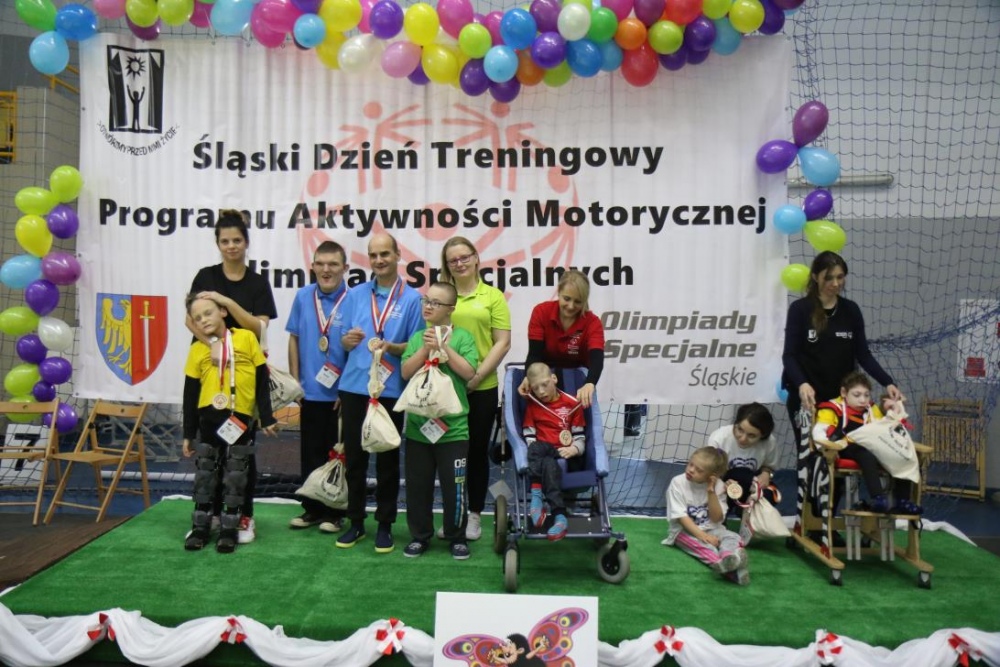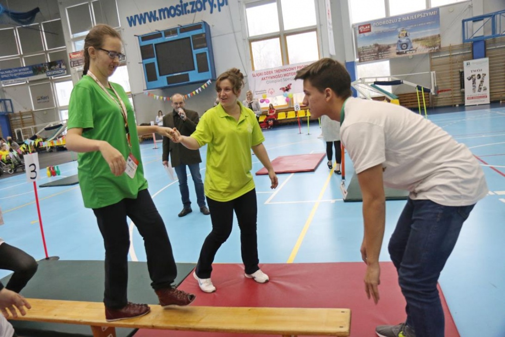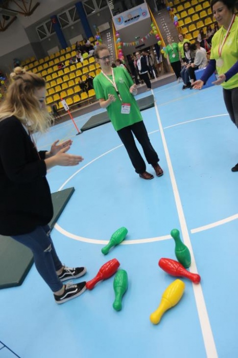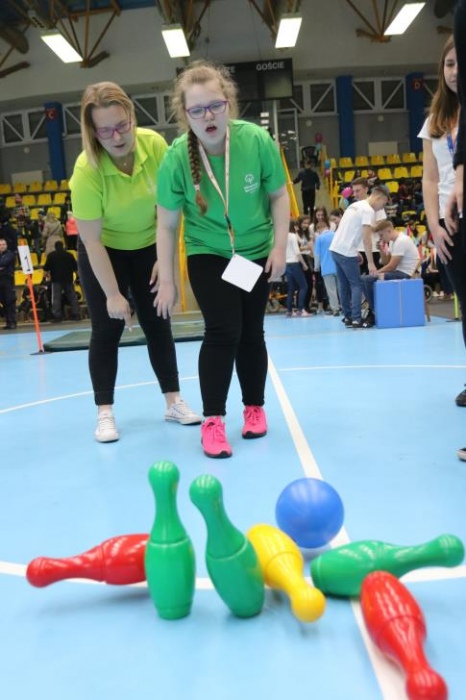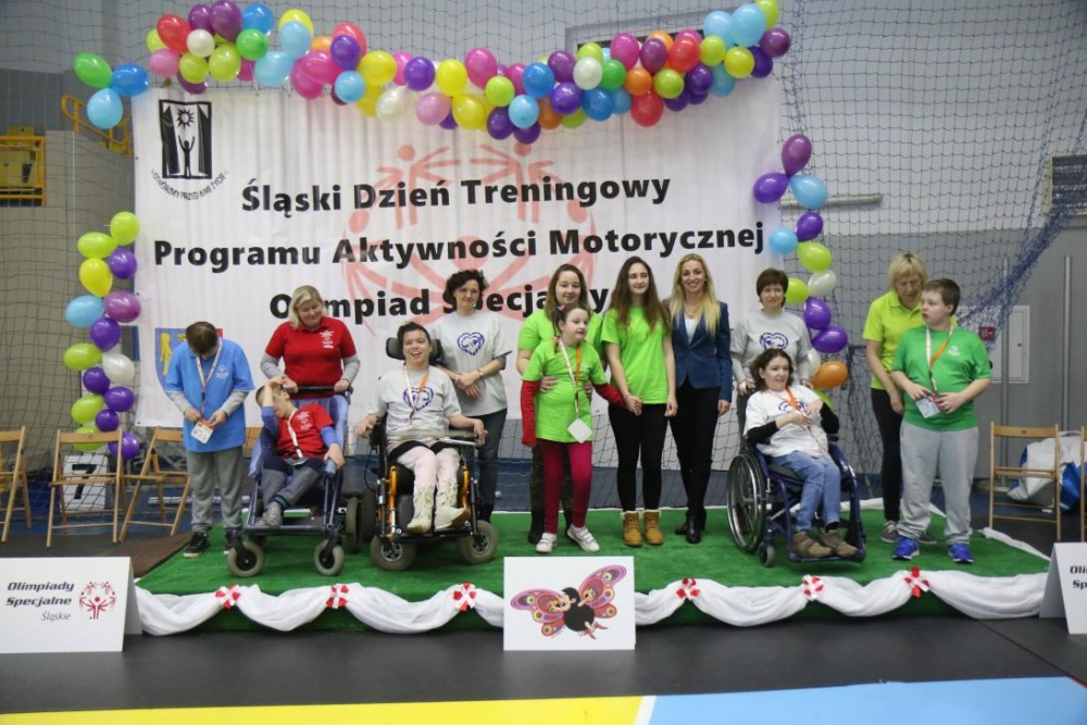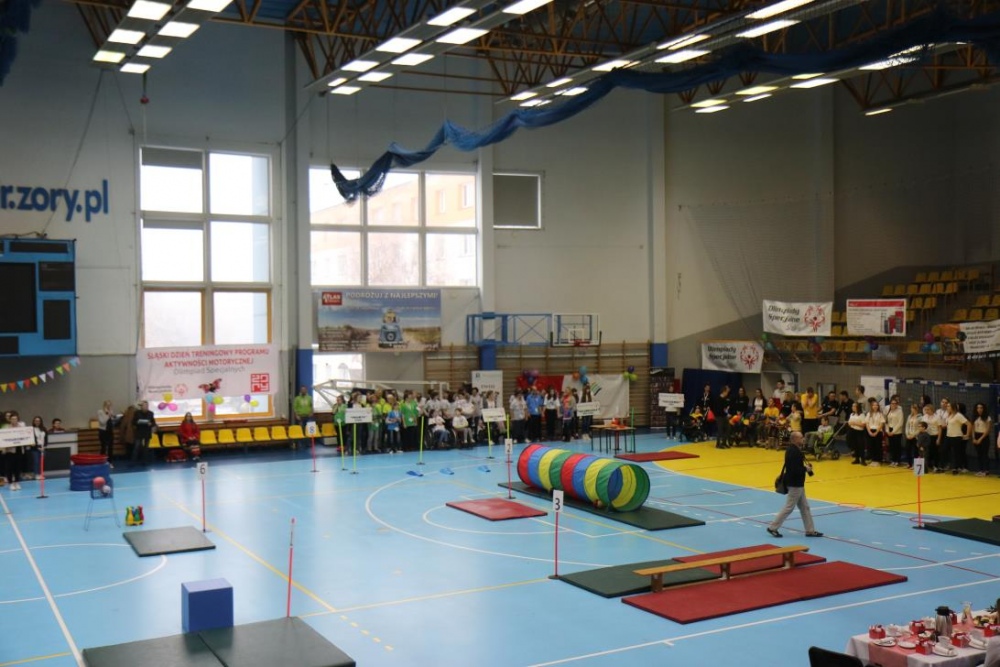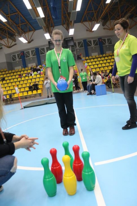 Tym razem Julia Zakrzewska, Weronika Klęczar, Aleksandra Szałyńska, Katarzyna Kroker, Weronika Szfer, Szymon Depta, Artur Czypiruk oraz Marcin Gwóźdź mieli okazję reprezentować naszą szkołę oraz KOS PROMYK podczas II Lokalnego Dnia Treningowego Programu Aktywności Motorycznej Olimpiad Spejclanych. Na zaproszenie żorskiego Klubu Olimpiad Specjalnych NIEZŁOMNI, dnia 30 listopada 2017 r., wzięliśmy udział w II edycji ich Lokalnego Dnia Treningowego Programu MATP. Podczas prezentowanych przez naszych uczniów konkurencji, jak i w całej imprezie, naszym dzielnym sportowcom towarzyszyli i wpierali ich w ich wysiłku pracownicy naszej szkoły oraz mama jednej z uczestniczek.