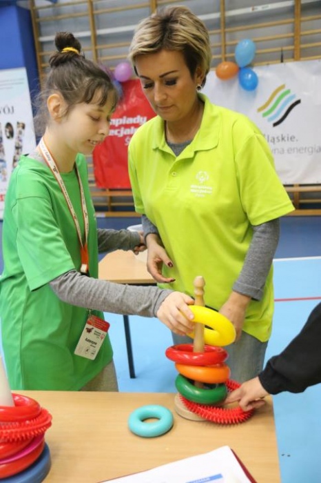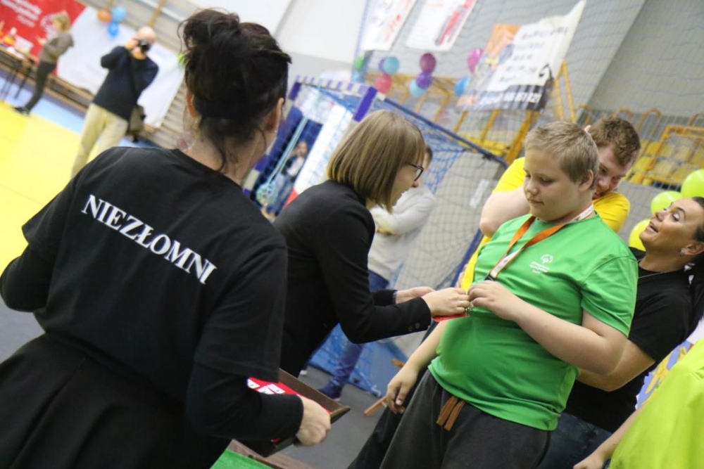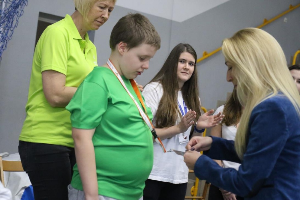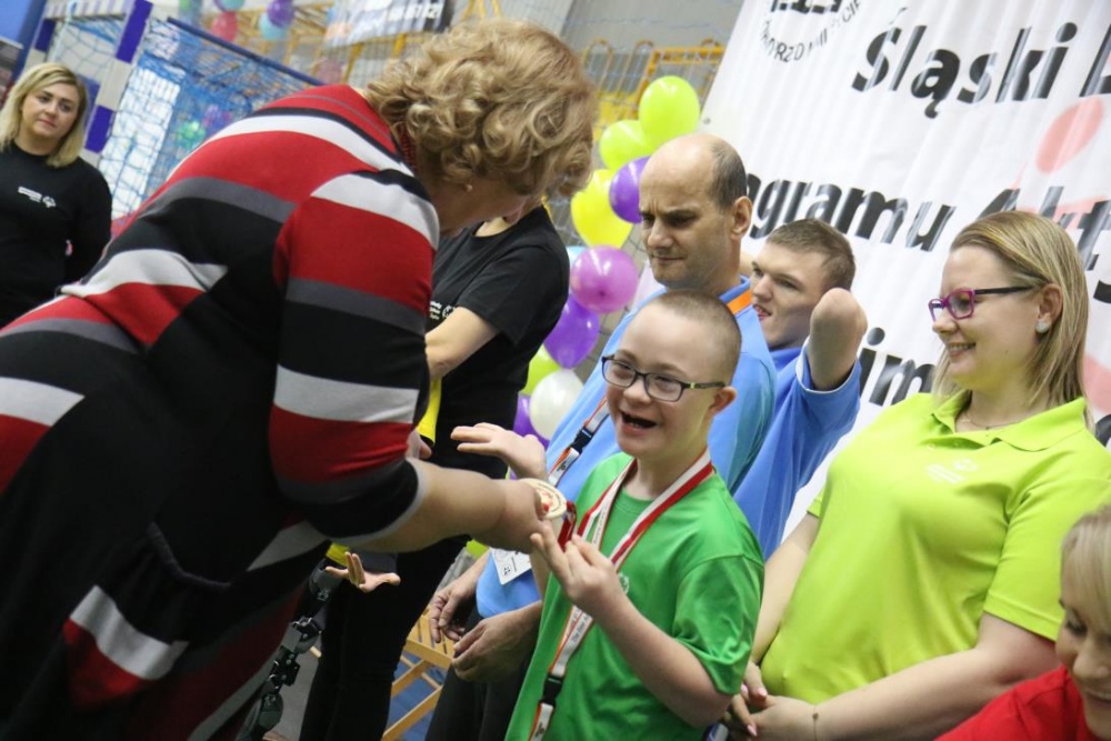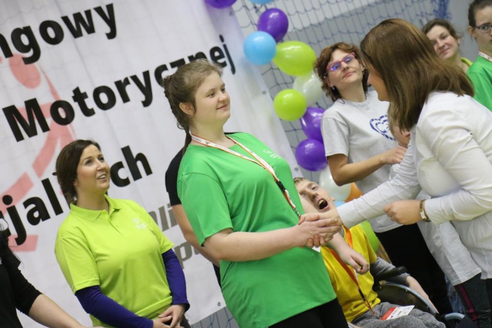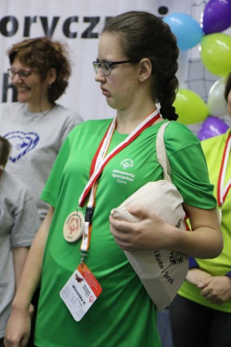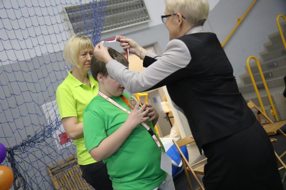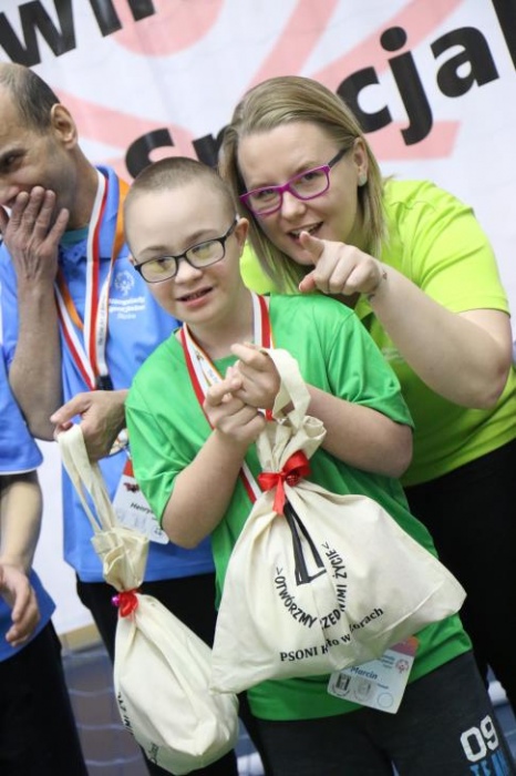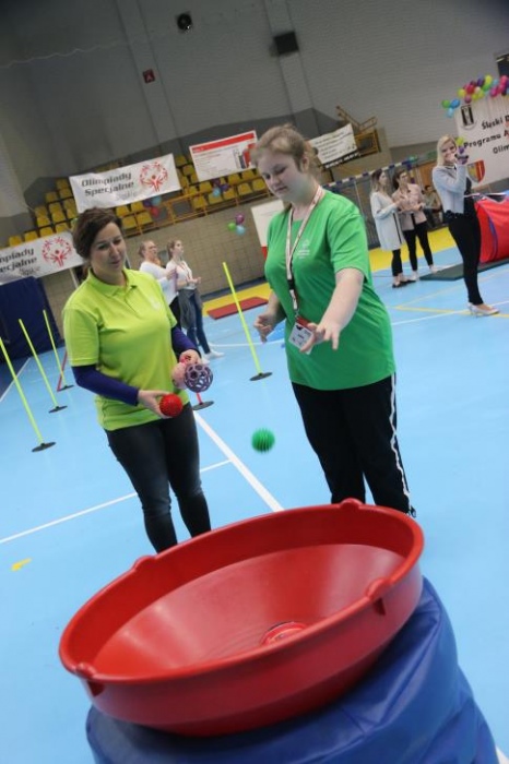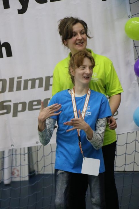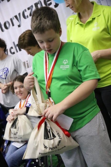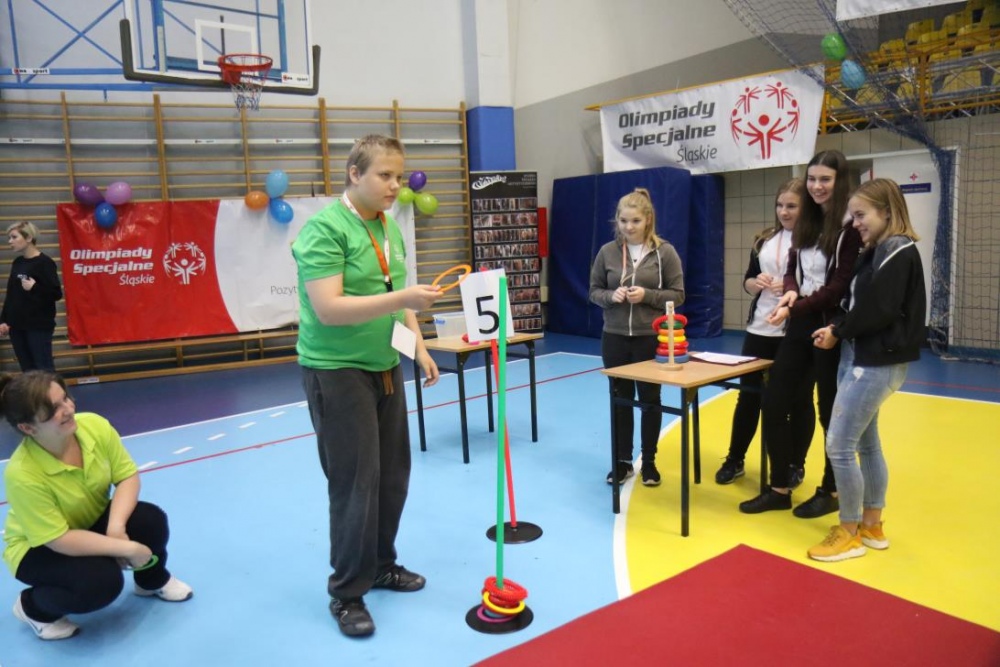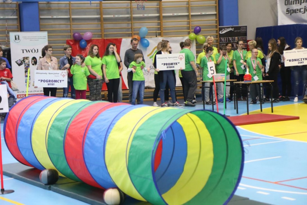 Tym razem Julia Zakrzewska, Weronika Klęczar, Aleksandra Szałyńska, Katarzyna Kroker, Weronika Szfer, Szymon Depta, Artur Czypiruk oraz Marcin Gwóźdź mieli okazję reprezentować naszą szkołę oraz KOS PROMYK podczas II Lokalnego Dnia Treningowego Programu Aktywności Motorycznej Olimpiad Spejclanych. Na zaproszenie żorskiego Klubu Olimpiad Specjalnych NIEZŁOMNI, dnia 30 listopada 2017 r., wzięliśmy udział w II edycji ich Lokalnego Dnia Treningowego Programu MATP. Podczas prezentowanych przez naszych uczniów konkurencji, jak i w całej imprezie, naszym dzielnym sportowcom towarzyszyli i wpierali ich w ich wysiłku pracownicy naszej szkoły oraz mama jednej z uczestniczek.
