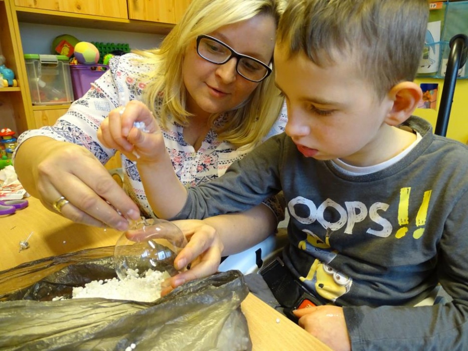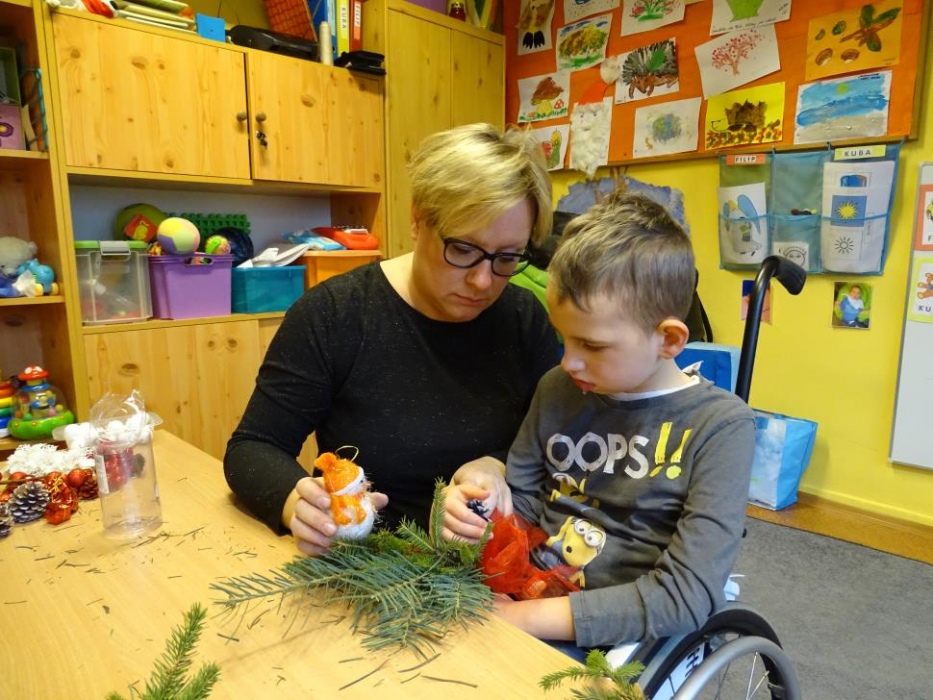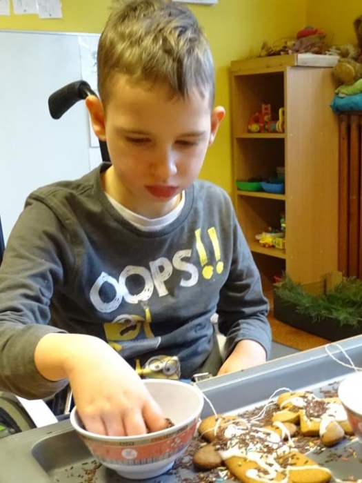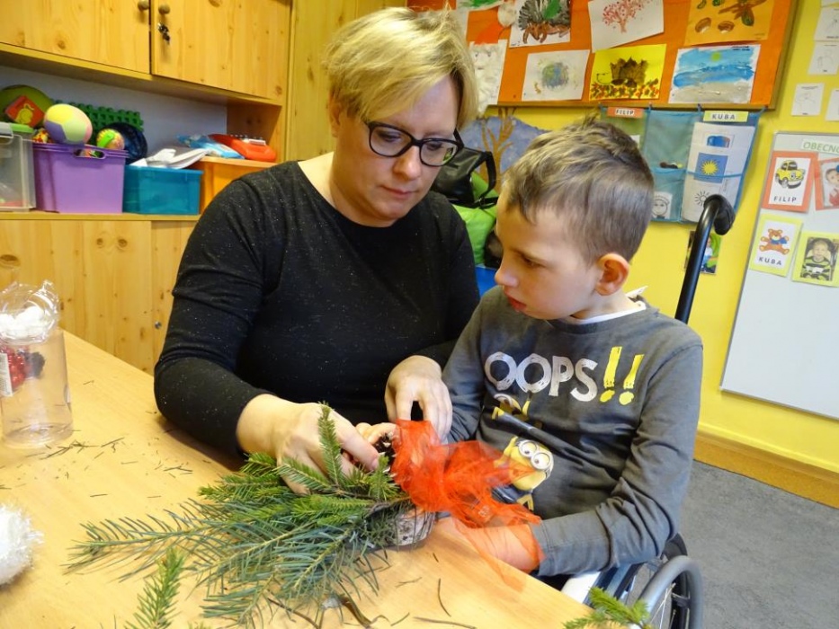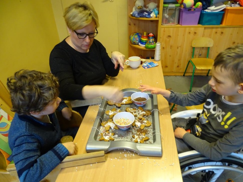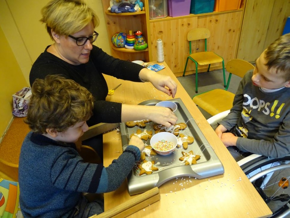 08 grudnia 2017r. w grupie przedszkolnej odbyły się zajęcia otwarte owiane świąteczną atmosferą i super zabawą, w czasie której wykonywaliśmy razem śliczne stroiki z pięknie pachnących choinkowych gałązek, których zapach unosił się w całej sali mieszając się z zapachem piernikowych ludzików i gwiazdek,ozdabianych przez dzieci lukrem i kolorowymi cukierkami. Dzieci z pomocą malowały duże styropianowe bombki ,ozdabiały je brokatem oraz uzupełniały kuleczkami styropianowymi plastikowe kule, które potem razem ze stoikami i piernikami wzięły do domu. Przy stole dominował świąteczny nastrój wypełniony bożonarodzeniowymi melodiami, zapachem cynamonu, goździków, pomarańczy i ciasta piernikowego.