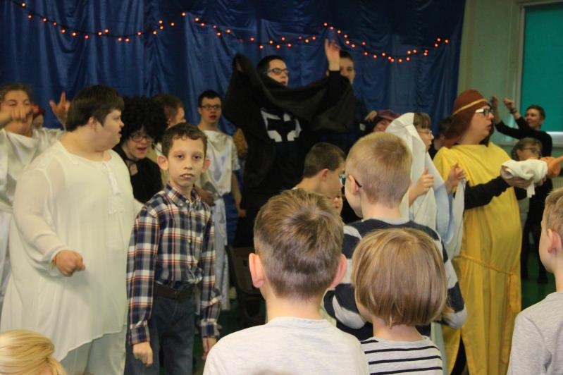 5 stycznia 2018 roku, w progi naszej szkoły zawitali zaprzyjaźnieni z nami – przedszkolaki Niepublicznego Przedszkola Terapeutycznego ,,Syriusz” i Przedszkola 36 oraz uczniowie klasy I SP 11. Tym samym odpowiedzieli na nasze zaproszenie, do obejrzenia przedstawienia jasełkowego ,,Bóg Światłem w każdy czas”. Finałową piosenkę wykonaliśmy razem i mamy nadzieję, na dalsze wspólne działania.