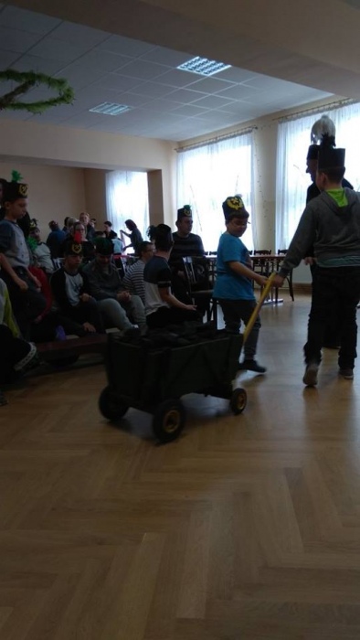 W dniu 04.12.2017 roku grupa naszych uczniów miała okazję zapoznać się z zawodem górnika podczas lekcji regionalizmu na żywo „Od paprotki do węgielka”. W trakcie zajęć mogliśmy doświadczyć jak wygląda praca górnika i skąd się wziął węgiel. Była ciężka praca, śpiew i wspólne tańce, odwiedziliśmy również Skarbnika dobrego ducha kopalni, który jako przyjaciel górników od lat ostrzega ich przed niebezpieczeństwem.