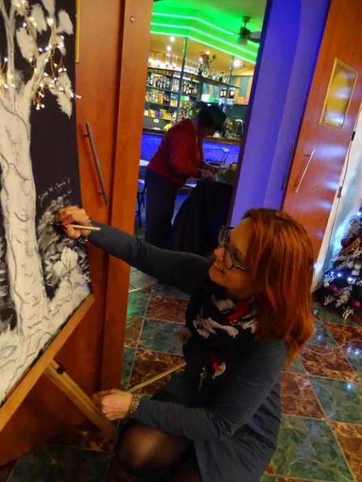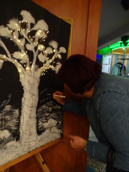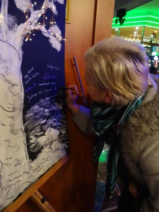 W spotkaniu wzięły udział 32 osoby, które witał gospodarz - organizator - ukryta w męskim przebraniu pani Aleksandra Kawczyńska oraz przebrane w stroje ludowe Panie - Maria Zientarska i Aleksandra Szymała - zapraszając każdą z uczestniczek imprezy, do osobistego wpisu, na specjalnie przygotowanym w tym celu plakacie -" Zimowe Drzewo ".