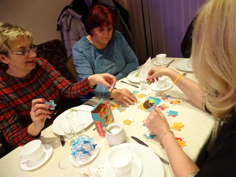 Po wstępnych słowach powitania i przybliżeniu celu spotkania, na salę wkroczyła "super kobieta", w której rolę wcielił się Pan Adam Jurzysta. Salwa wiwatów i śmiechu ostatecznie rozpoczęła spotkanie.Pani Monika Karkowska- Kościcka czuwała z aparatem fotograficznym, by nie umknęły ważne momenty tego miłego zgromadzenia, wykonując wiele cennych zdjęć i filmików. Właściwą - rozrywkową część spotkania , rozpoczął mini występ przebranych współorganizatorów, którzy zatańczyli i zaśpiewali, parodiując utwór " My Słowianki". Rozbawione Panie brały udział w zaplanowanych konkursach- składanie puzzli , kalambury oraz karaoke. Wszyscy doskonale bawili się tańcząc i śpiewając w proponowanym przez organizatorów repertuarze muzycznym.