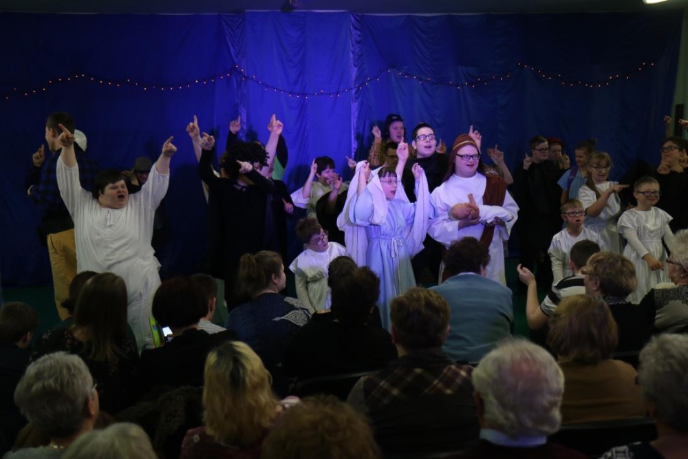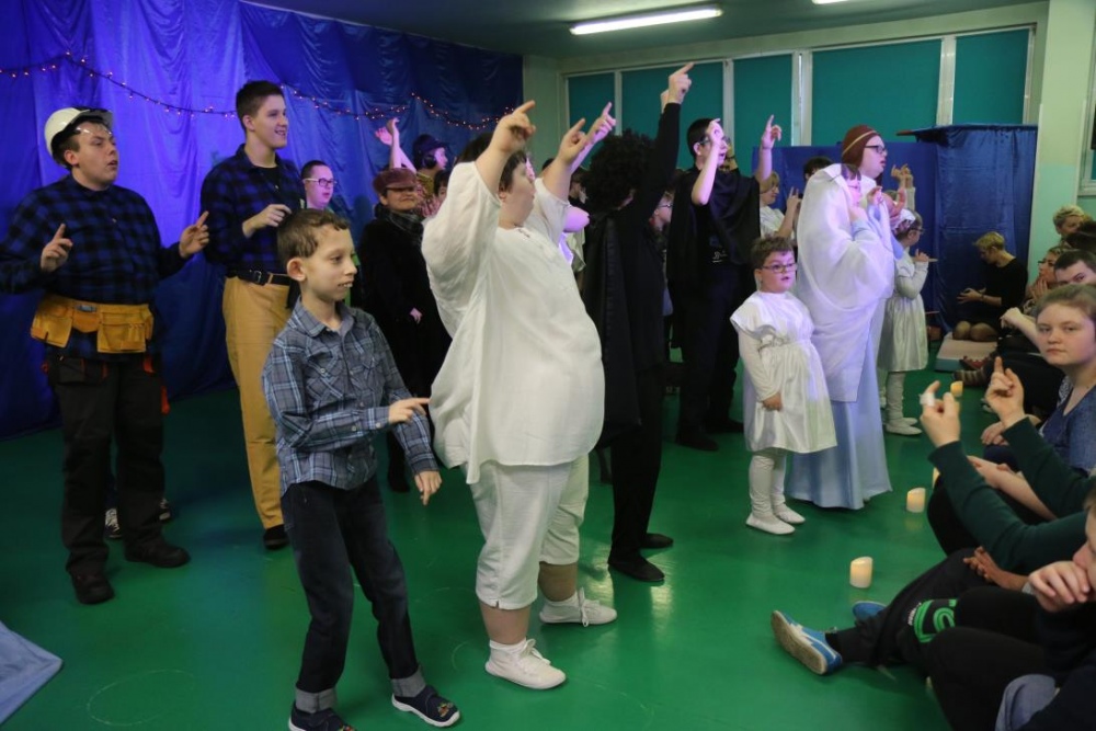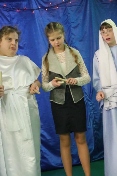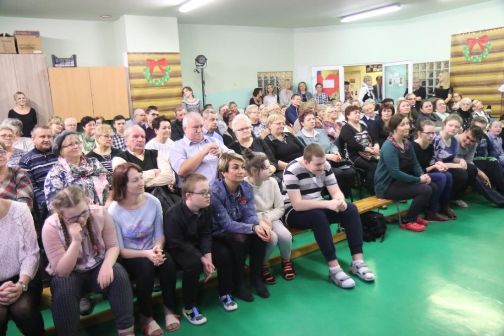Jak zwykle dziadkowie naszych uczniów nie zawiedli i licznie zgromadzili się na sali gimnastycznej. Uroczystość składała się z dwóch części. Pierwsza nawiązywała do niedawno obchodzonych Świąt Bożego Narodzenia, druga była bezpośrednio związana z Dniem Babci i Dziadka. Występy artystyczne rozpoczęła Róża Plączkowska, która zagrała dwie kolędy na dzwonkach. Następnie piosenki o Bożym Narodzeniu zaprezentował zespół instrumentalny. Oczywiście nie mogło zabraknąć jasełek w wykonaniu zespołu Baj. Był też czas na wspólne kolędowanie.