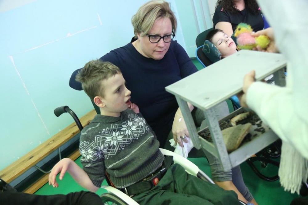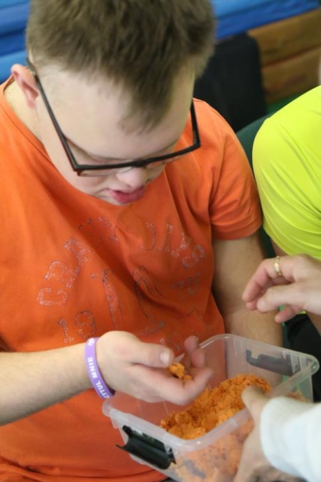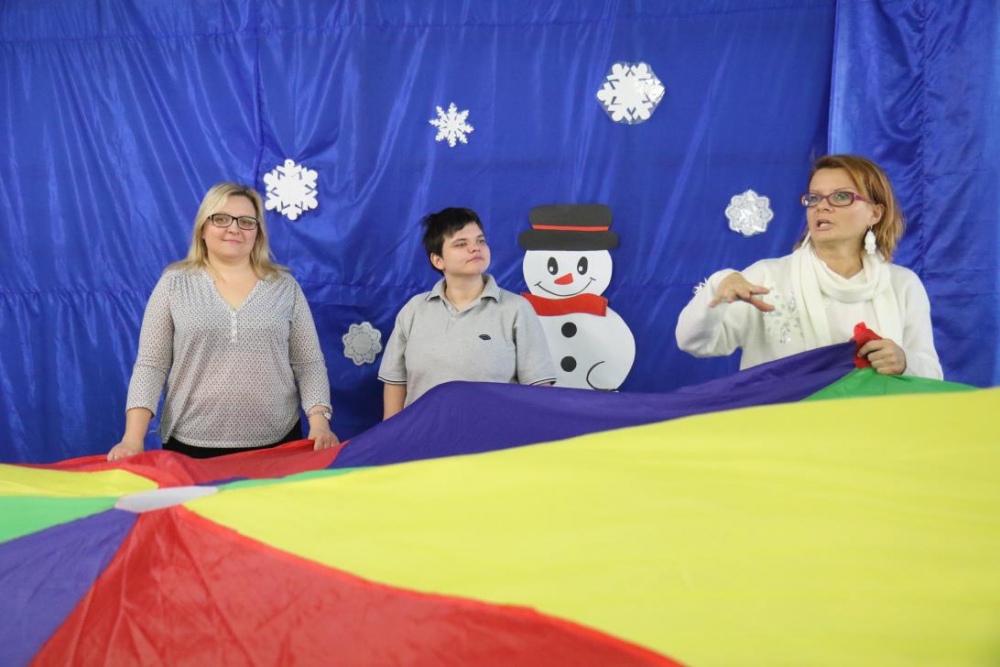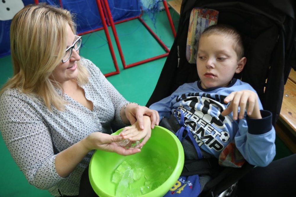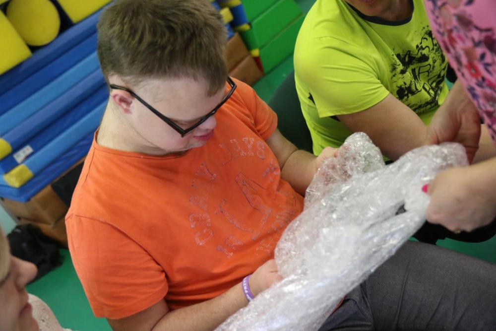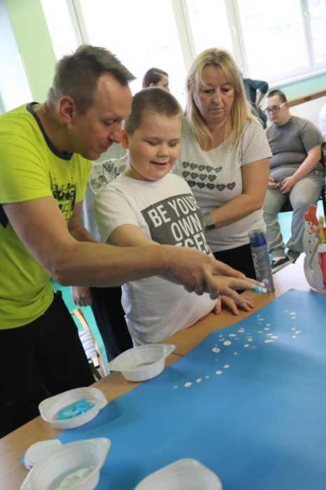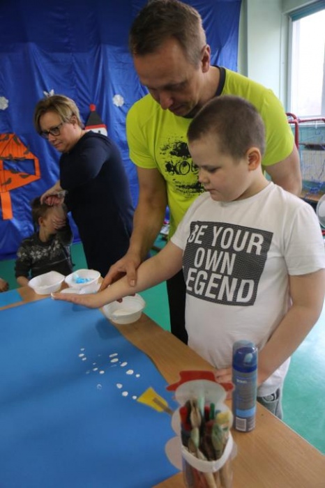 „Zimno, zimno nam w paluszki”- tą piosenką uczniowie zespołów rewalidacyjno – wychowawczych, klas: IIA, IIIB SP oraz grupy przedszkolnej rozpoczęli zajęcia polisensoryczne z cyklu "Cztery pory roku". Dominował smak i zapach mięty. Uczniowie rozbudzali swoje zmysły poprzez zabawy z użyciem przedmiotów o zróżnicowanej fakturze, konsystencji i temperaturze. Wiele emocji wzbudziła zabawa z użyciem chusty Klanzy oraz wspólna śniegowa praca plastyczna wykonana paluszkami. Uczniowie przy dźwiękach zimowych piosenek i dzwonków chętnie pozowali do „saneczkowych” zdjęć. Wszystkim dziękujemy za dobrą zabawę i zapraszamy do galerii zdjęć.