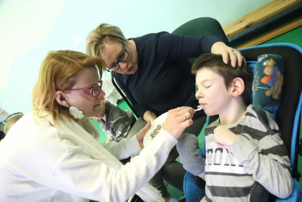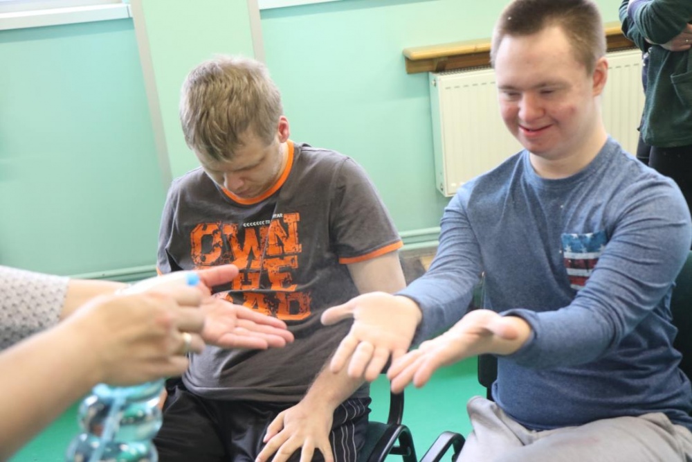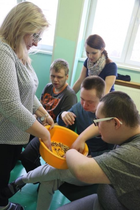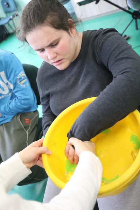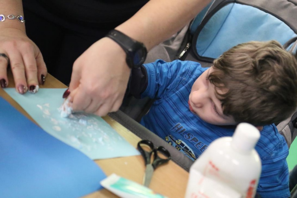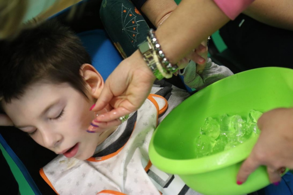 „Zimno, zimno nam w paluszki”- tą piosenką uczniowie zespołów rewalidacyjno – wychowawczych, klas: IIA, IIIB SP oraz grupy przedszkolnej rozpoczęli zajęcia polisensoryczne z cyklu "Cztery pory roku". Dominował smak i zapach mięty. Uczniowie rozbudzali swoje zmysły poprzez zabawy z użyciem przedmiotów o zróżnicowanej fakturze, konsystencji i temperaturze. Wiele emocji wzbudziła zabawa z użyciem chusty Klanzy oraz wspólna śniegowa praca plastyczna wykonana paluszkami. Uczniowie przy dźwiękach zimowych piosenek i dzwonków chętnie pozowali do „saneczkowych” zdjęć. Wszystkim dziękujemy za dobrą zabawę i zapraszamy do galerii zdjęć.