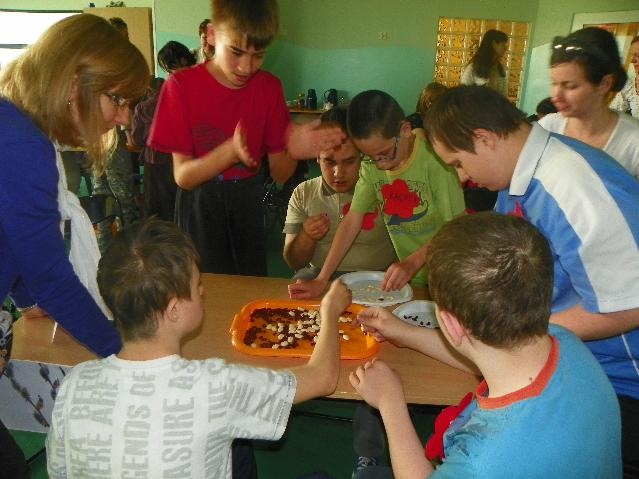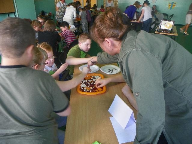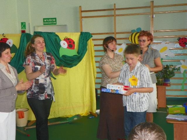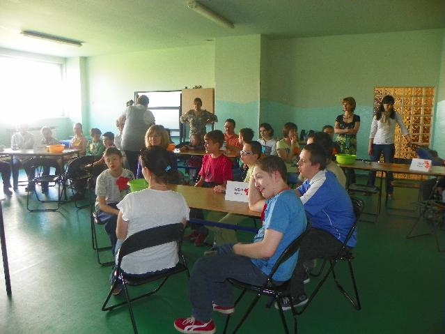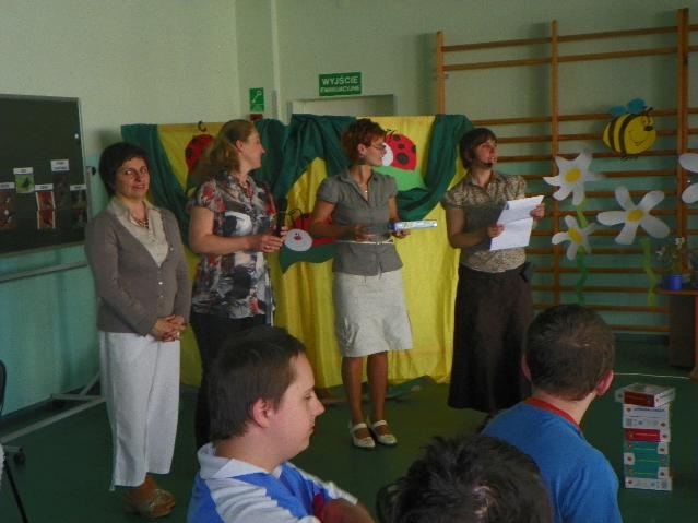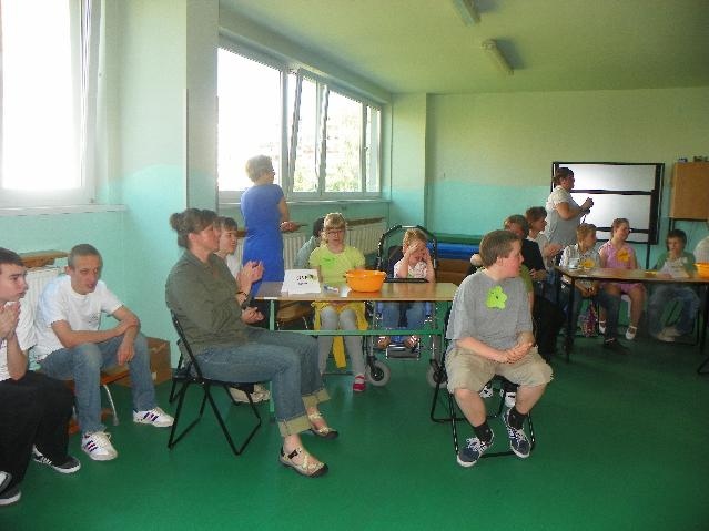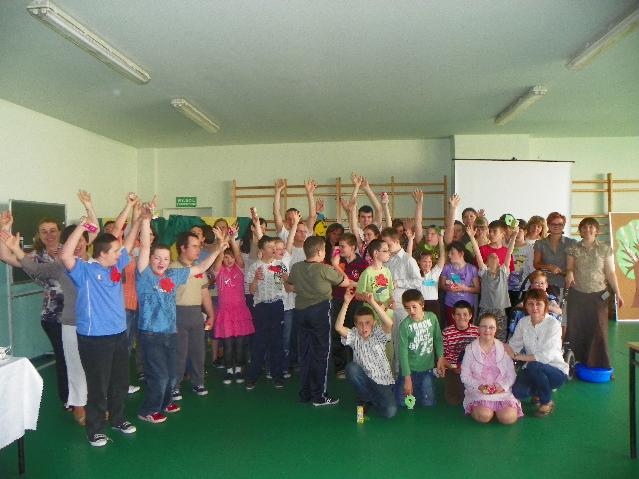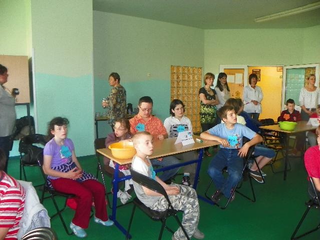 Największą ilość punktów i I miejsce zdobyła reprezentacja Specjalnego Ośrodka Szkolno-Wychowawczego z Rybnika. Gratulujemy! Były też oczywiście nagrody: soki, bańki mydlane (dla każdego uczestnika) oraz układanki dydaktyczne dla drużyn. A na koniec pamiątkowe zdjęcie.