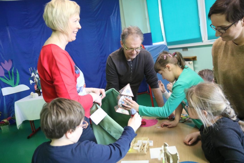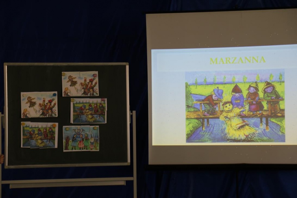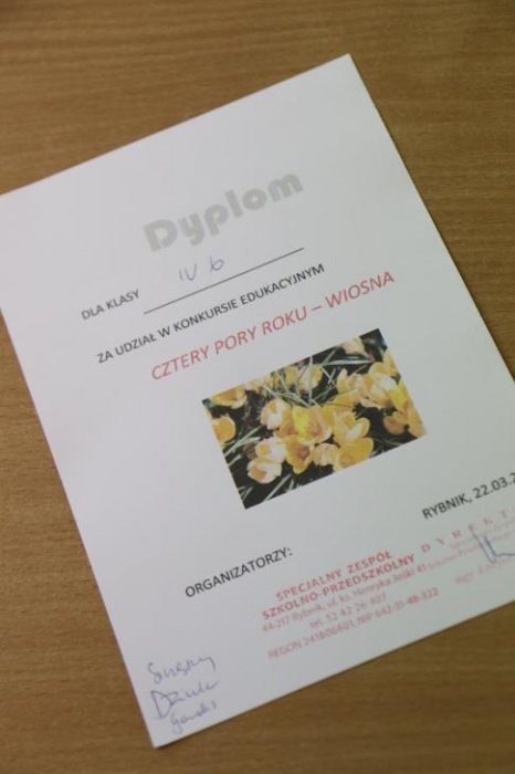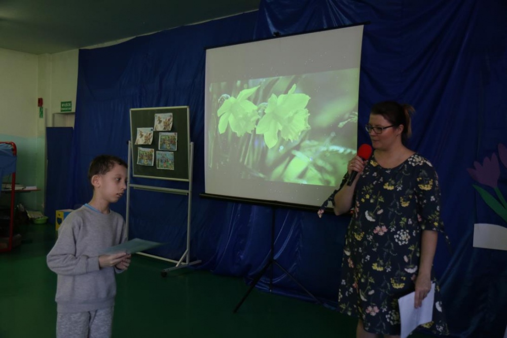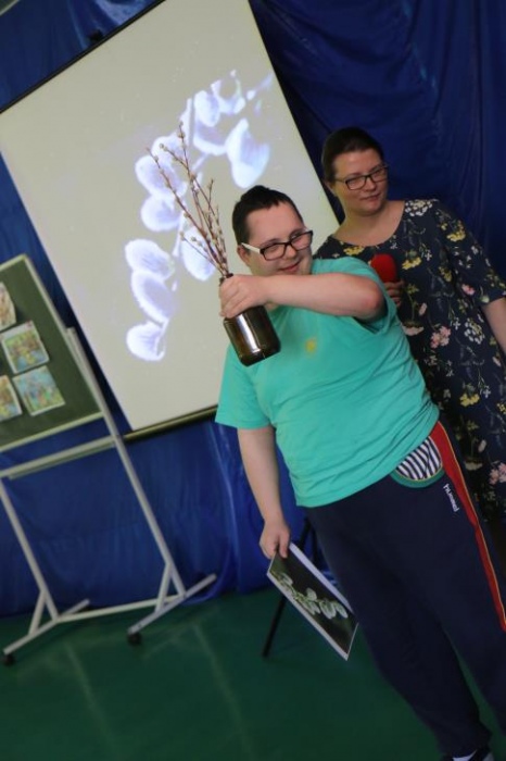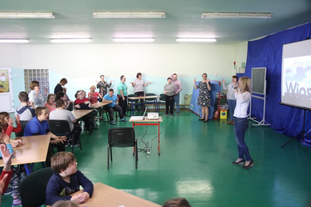 W naszej szkole wiosnę powitaliśmy 22 marca podczas konkursu edukacyjnego „Cztery pory roku -Wiosna”. W konkursie wzięli udział uczniowie klas III-VI oraz dwie grupy Rewalidacyjno –Wychowawcze .Uczestnicy konkursu rozpoznawali pory roku oraz zwiastuny wiosny: wiosenne ptaki i kwiaty. Nie zabrakło oczywiście Marzanny, którą z braku tradycyjnych możliwości , przegoniliśmy okrzykami, tupaniem oraz grzechotkami i tamburynami. Wiosnę powitaliśmy piosenkami. A ponieważ Wielkanoc tuż, tuż były także konkurencje świąteczne: segregowanie i przygotowanie ozdób, wykonanie świątecznego wzoru oraz „sztafeta z jajkiem”. A na finał piosenka „Kłótnia w koszyku”.