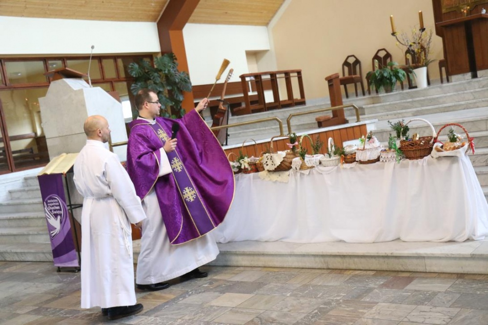 Szkolne Rekolekcje Wielkopostne rozpoczęły się w naszej szkole, wraz z Wielkim Tygodniem. W Wielki Poniedziałek towarzyszyliśmy Panu Jezusowi w Drodze Krzyżowej. Starannie czyniliśmy znak Krzyża Świętego, prosząc o światło kroczenia właściwą drogą do nieba. W Wielki Wtorek przeprosiliśmy za nasze upadki w Sakramencie Pokuty. Potem uczestniczyliśmy w Eucharystii, podczas której ks. Piotr poświęcił przygotowane przez nas koszyczki z pokarmami na wielkanocny stół. Wielką Środę rozpoczęliśmy od wspólnej modlitwy, połączonej z celebracją Światła. Prosiliśmy Jezusa – nasze Światło, abyśmy dobrym przykładem pociągali innych do Niego. Już w klasach dzieliliśmy się radością przy wspólnym wielkanocnym stole.