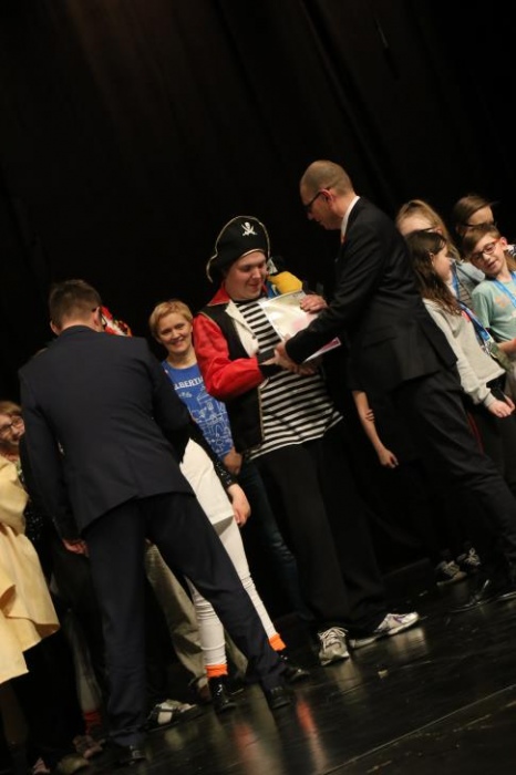 w wykonaniu Teatru Cicho – Sza, z Młodzieżowego Domu Kultury w Rybniku. Później nadszedł długo oczekiwany moment – ogłoszenie wyników. Jury nagrodziło nas III MIEJSCEM, ale największym zaskoczeniem było dla nas zajęcie I MIEJSCA, przyznanego przez JURY DZIECIĘCE!!!