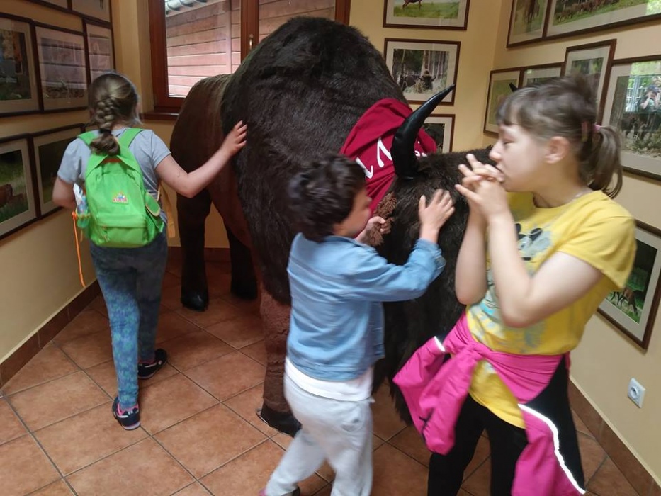 Dnia 11.05.2018 r nasi przedszkolacy oraz uczniowie kl. IIa, III Ad i IIIc odwiedzili Pokazową Zagrodę Żubrów w Pszczynie, gdzie mieli okazję stanąć prawie „oko w oko” z żubrami, danielami i innymi rogaczami. Dzieci miały też możliwość obserwować pięknie puszące się pawie, które bez strachu, tak samo jak obecne tam gęsi, podchodziły do nich, a nawet nas zaczepiały delikatnie łapiąc dziobami:)