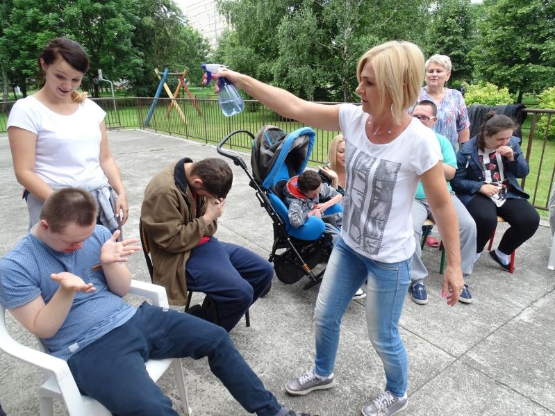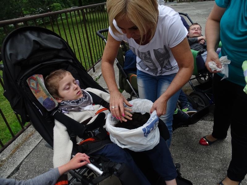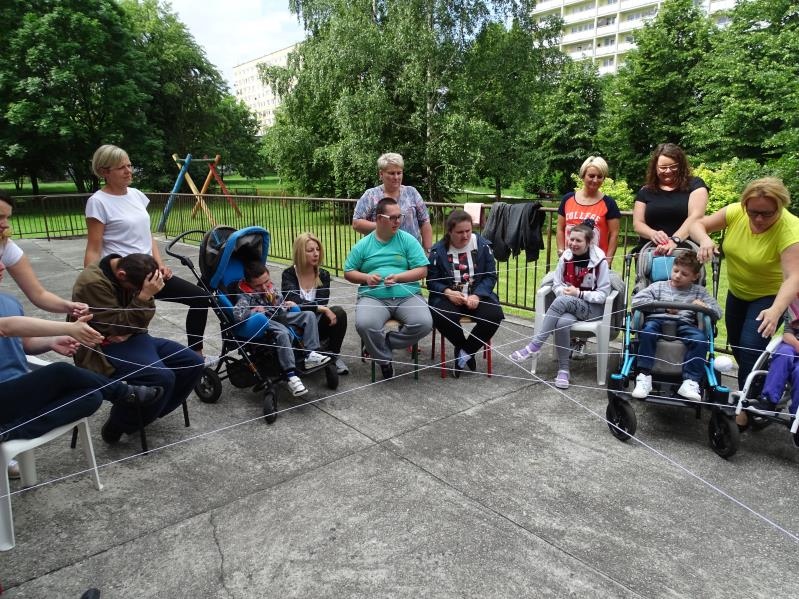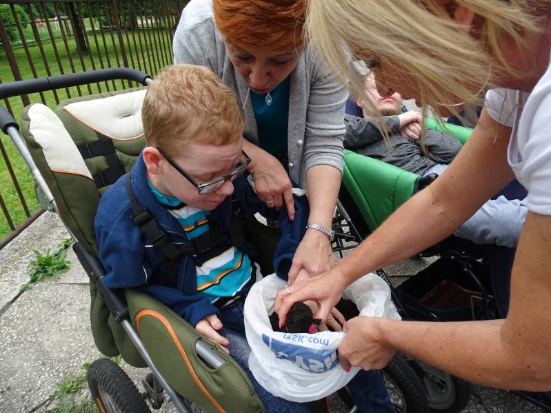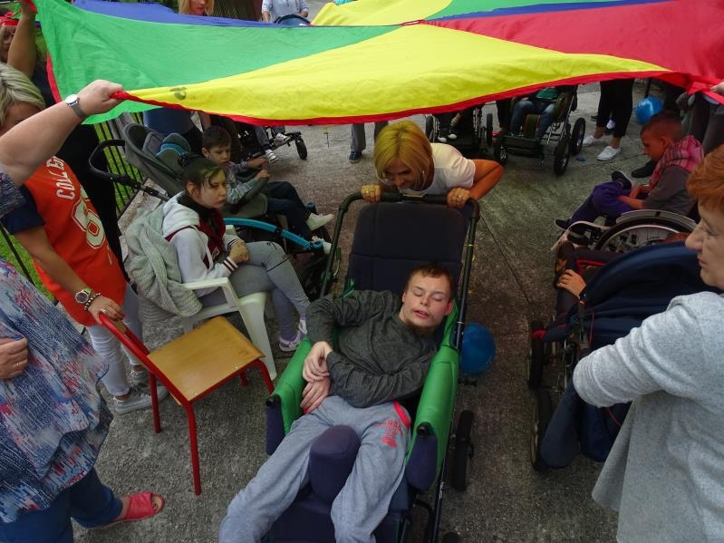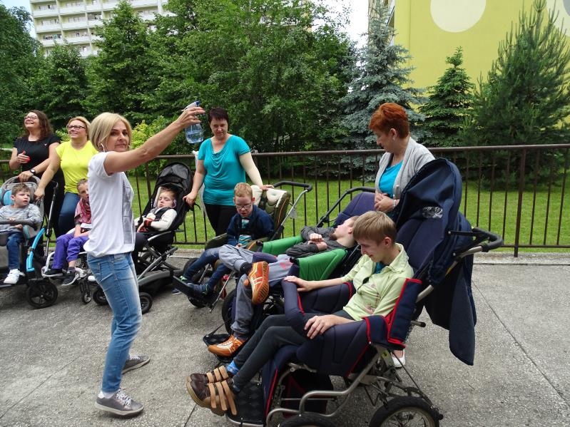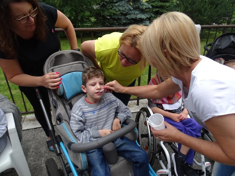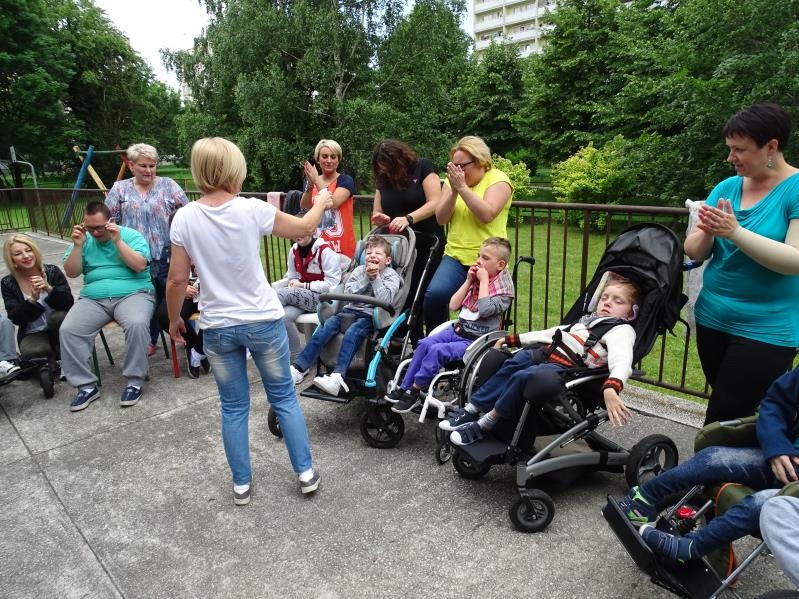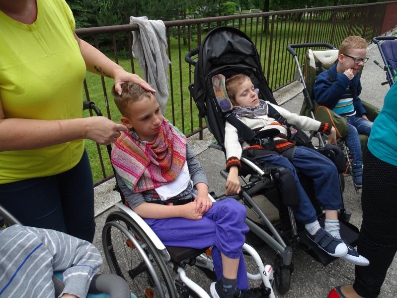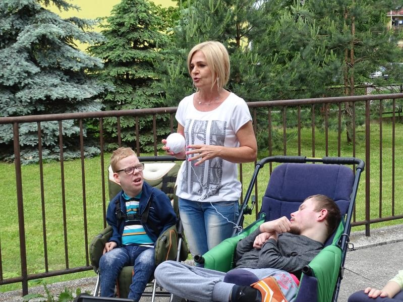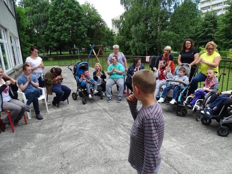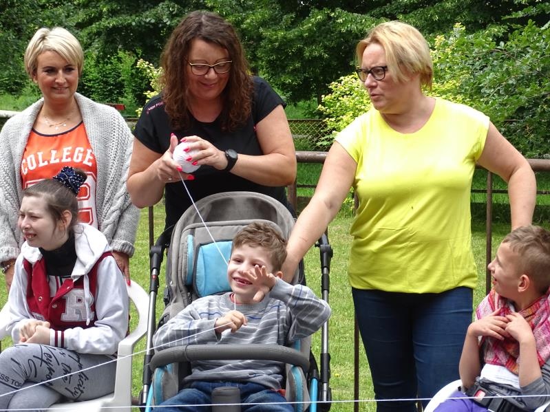 Dnia 23.05.2018 podopieczni oddziałów rewalidacyjno - wychowawczych, przedszkolaki oraz Alessandro wzięli udział w pikniku "Wiosna wokół nas". Na powitanie uczestnicy rzucali kłębkiem wełny tworząc pajęczynę przyjaźni. W ramach stymulacji polisensorycznej - smakowały i wąchały cytrynę, dotykały ziemię, która jest żywiołem wiosny. Na łące zbierały kwiaty, które później wąchały. Padał także wiosenny deszczyk.
