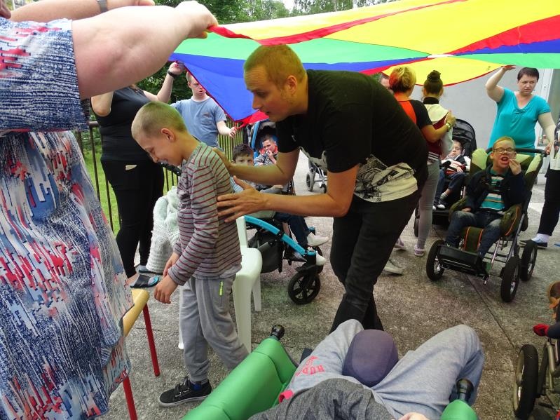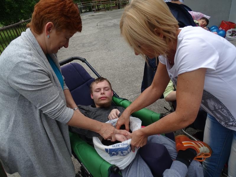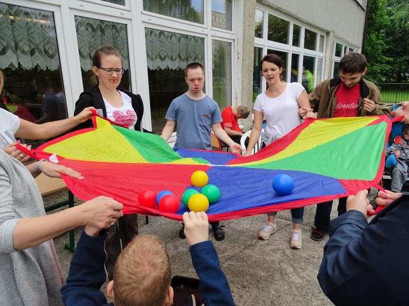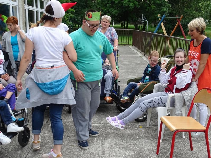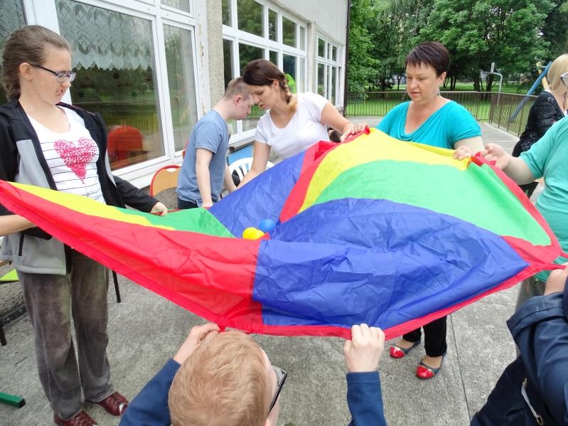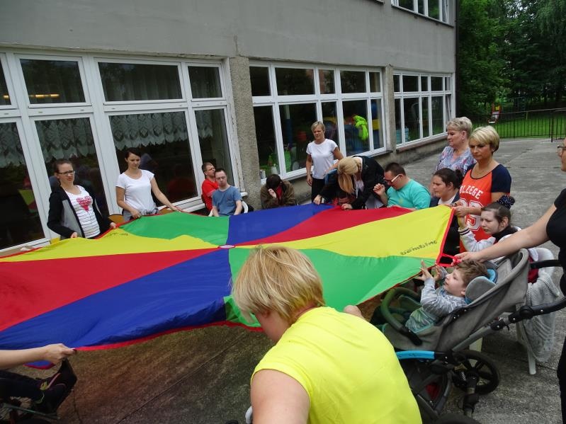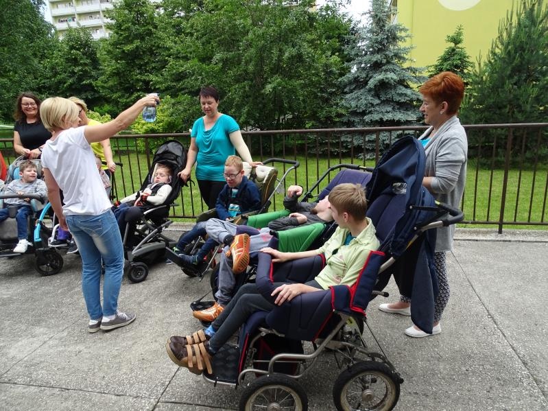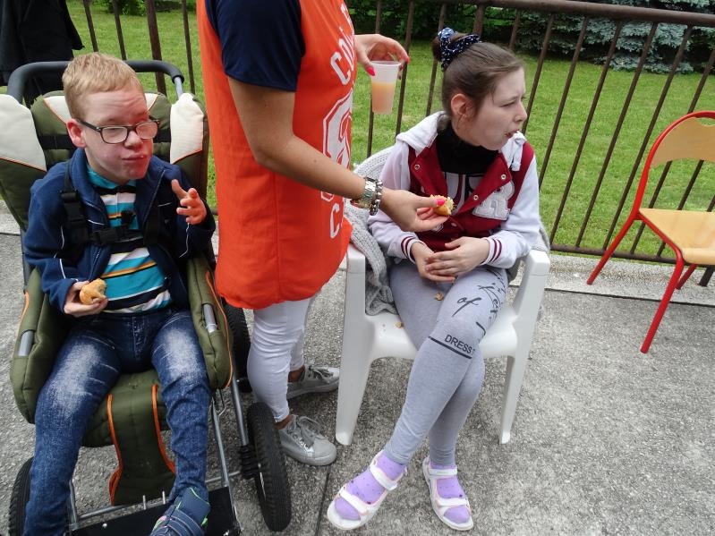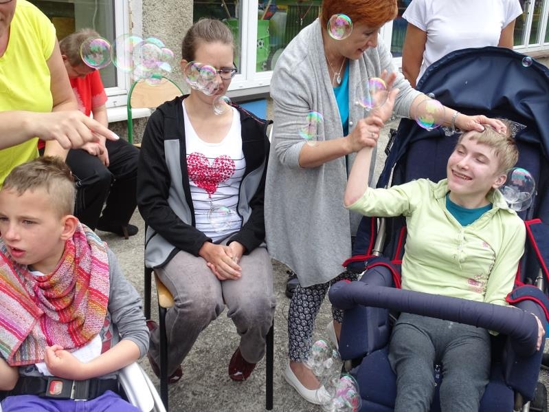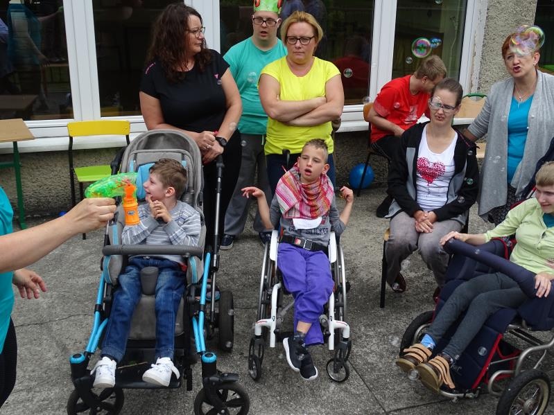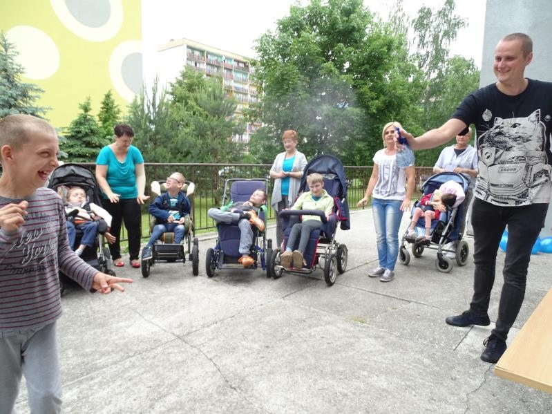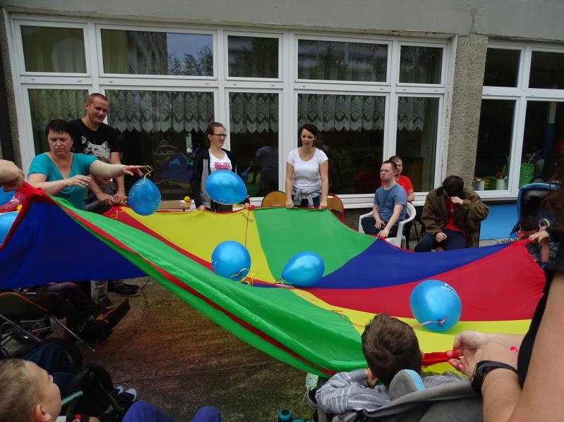 Dnia 23.05.2018 podopieczni oddziałów rewalidacyjno - wychowawczych, przedszkolaki oraz Alessandro wzięli udział w pikniku "Wiosna wokół nas". Na powitanie uczestnicy rzucali kłębkiem wełny tworząc pajęczynę przyjaźni. W ramach stymulacji polisensorycznej - smakowały i wąchały cytrynę, dotykały ziemię, która jest żywiołem wiosny. Na łące zbierały kwiaty, które później wąchały. Padał także wiosenny deszczyk.