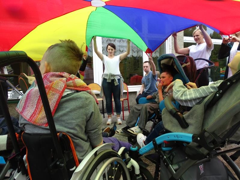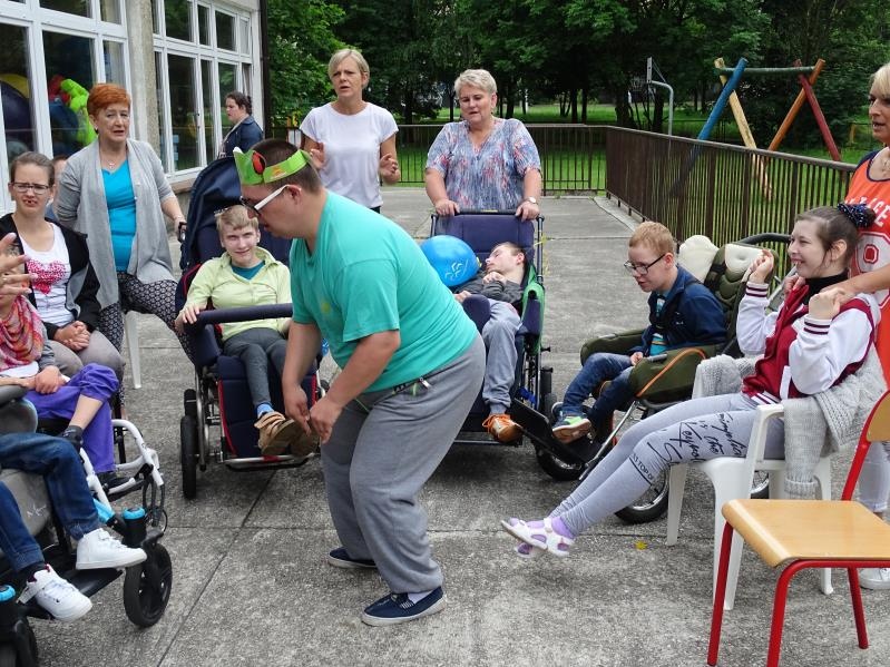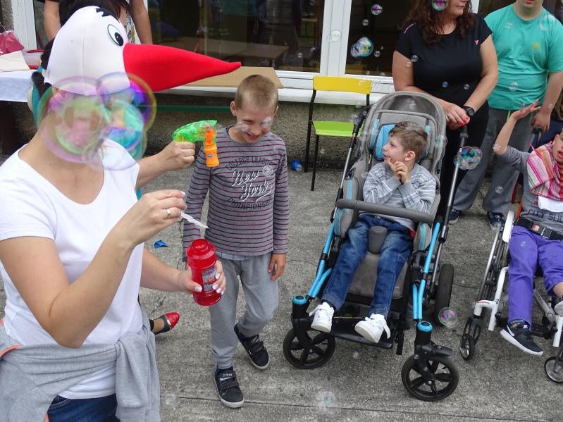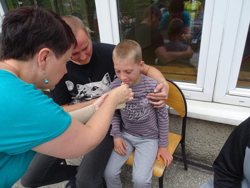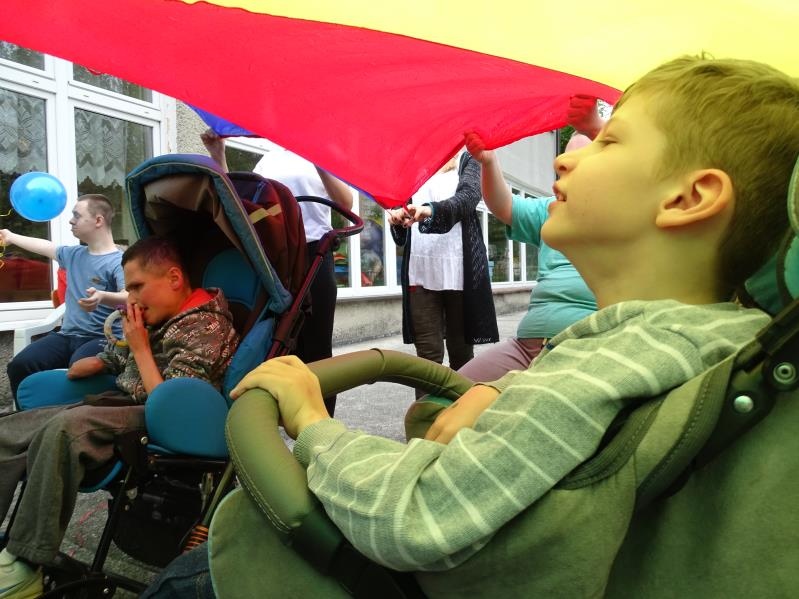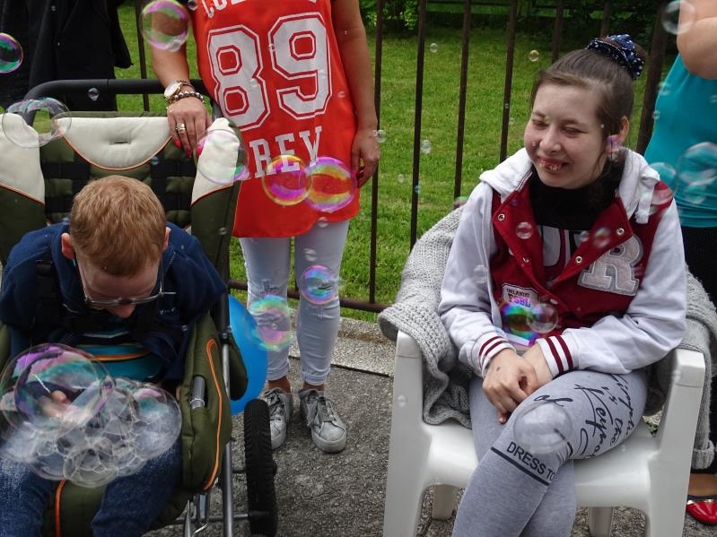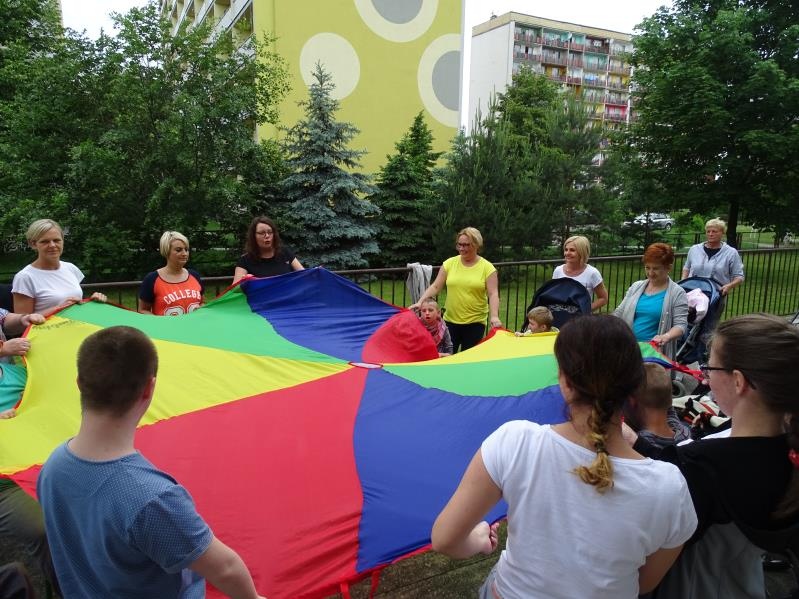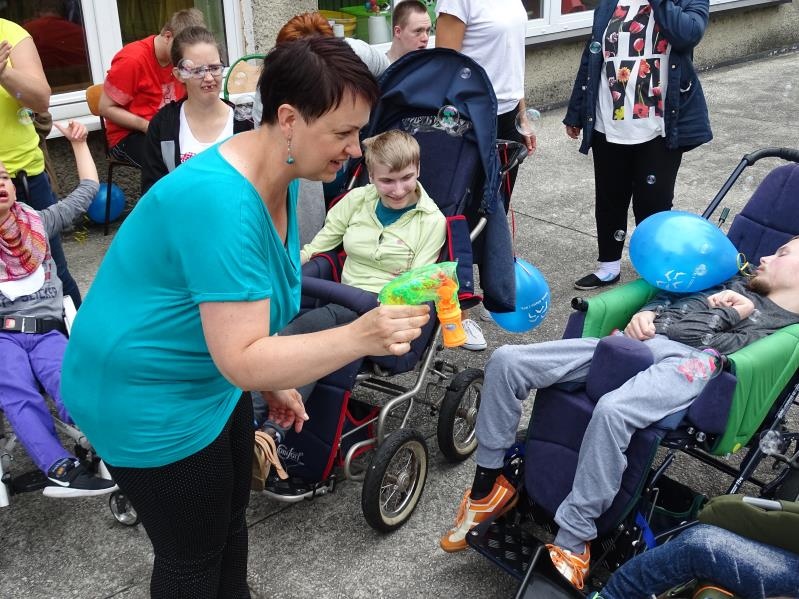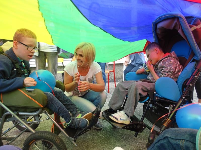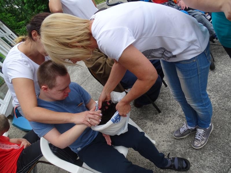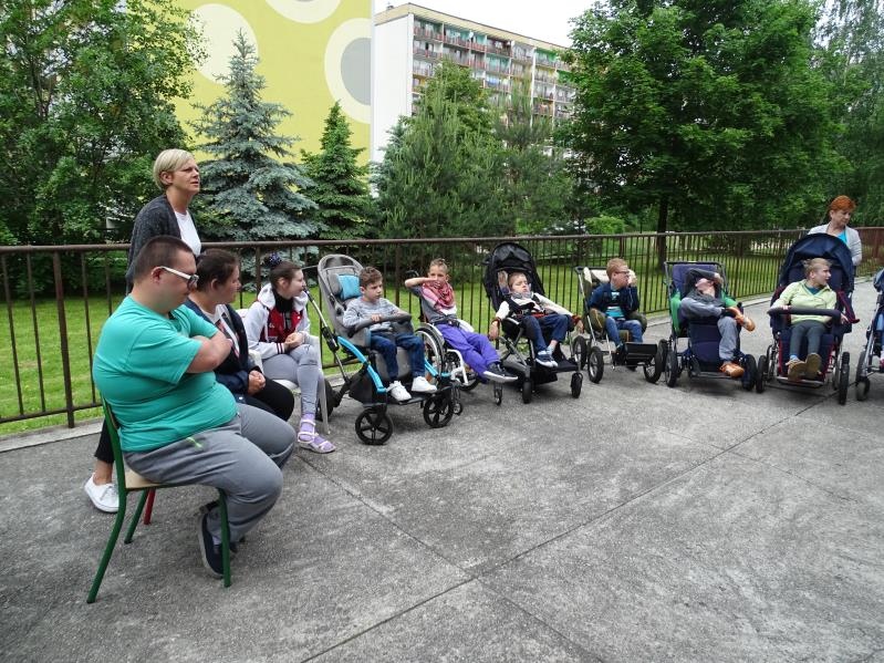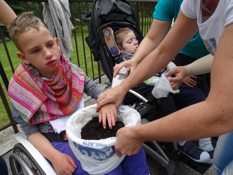 Dnia 23.05.2018 podopieczni oddziałów rewalidacyjno - wychowawczych, przedszkolaki oraz Alessandro wzięli udział w pikniku "Wiosna wokół nas". Na powitanie uczestnicy rzucali kłębkiem wełny tworząc pajęczynę przyjaźni. W ramach stymulacji polisensorycznej - smakowały i wąchały cytrynę, dotykały ziemię, która jest żywiołem wiosny. Na łące zbierały kwiaty, które później wąchały. Padał także wiosenny deszczyk.