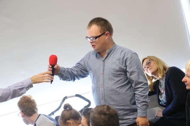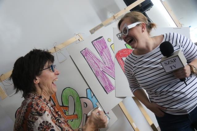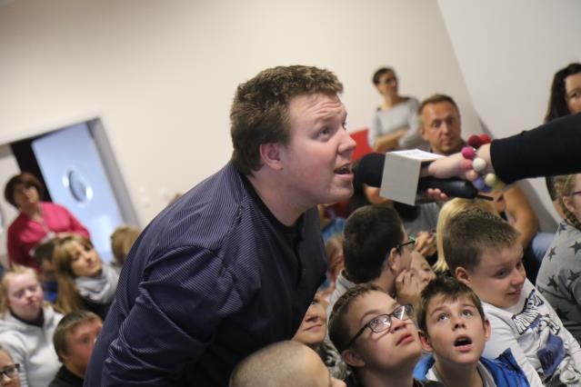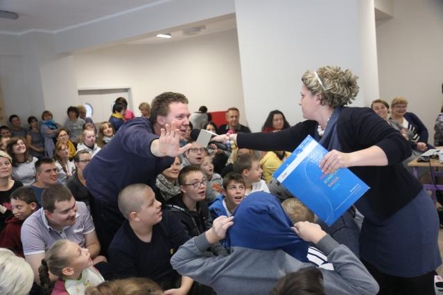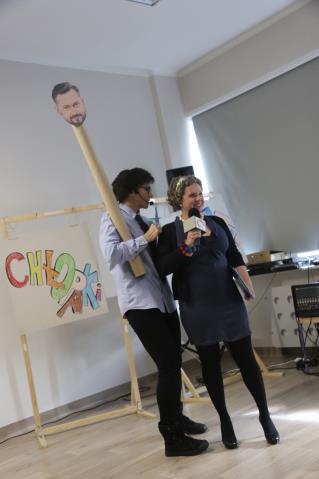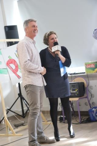 Imprezę otwarła pani Lucyna Ibrom - Dyrektor Szkoły, by przekazać mikrofon specjalnie na tę okazję zaproszonym znanym prezenterom. Imprezę poprowadził bowiem duet: Dorota Wellman oraz Marcin Prokop ;) Przybyli do nas z uwagi na fakt, iż przenieśliśmy się do nowej siedziby. To oni mieli oakzję przeprowadzić "przysięgi" dla uczniow oraz pracowników szkoły - w zależności od koloru piętra na którym się uczą czy pracują, mieli formułkę do powtórzenia - mamy nadzieję, że będą jej przestrzegali!