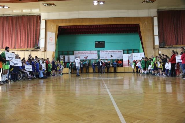 Równolegle na sąsiadującej z basenem hali sportowej toczył się XVIII Śląski Turniej w Halowej Piłce Nożnej Olimpiad Specjalnych, w którym wziął udział nasz gimnazjalista Kacper oraz trener pan Adam. Drużyna KOS PROMYK Rybnik wywalczyła w swojej grupie ZŁOTY MEDAL!!! BRAWO CHŁOPAKI!!!