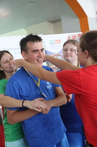 Nasi zawodnicy dnia 26 września 2018 r. wzięli udział w III Śląskim Dniu Treningowym Programu Aktywności Motorycznej Olimpiad Specjalnych w Rudzie Śląskiej. Aleksandra Szałyńska, Julia Zakrzewska , Michał Pietrzak oraz debiutant Alessandro Butaru zaprezentowali konkurencje takie jak: zanurzenie głowy w wodzie, pokonanie dystansu 5m, położenie się na plecach, rzuty do celu na wodzie. Ich starania zostały nagrodzone ZŁOTYMI MEDALAMI!!! GRATULUJEMY! Naszym uczniom, w ich wysiłku wspomagały panie: Magdalena Sobik, Edyta Popek oraz Magdalena Kasprzak. OGROMNE BRAWA DLA CAŁEJ EKIPY!!