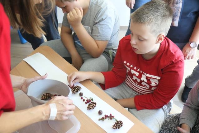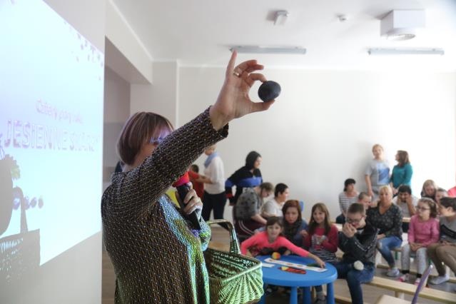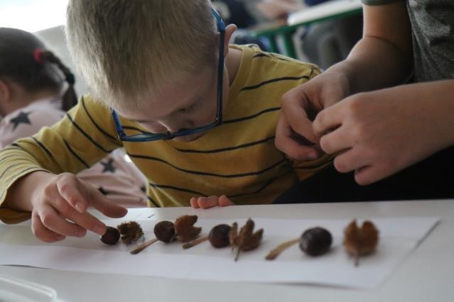 W ostatni dzień października, w ramach konkursu edukacyjnego „Cztery pory roku”, uczniowie szkoły podstawowej wybrali się na poszukiwanie jesiennych skarbów. Podczas wirtualnego spaceru odwiedzili: sad, ogród warzywny, pole ziemniaków, park i las. Przed spacerem trzeba było wy brać odpowiednie do pory roku ubranie. W każdym z odwiedzanych miejsc, na uczestników konkursu, czekały jesienne zadania: układanie puzzli, zbieranie owoców, liczenie warzyw, rozpoznawanie warzyw i owoców na obrazkach, sztafeta z ziemniakami, układanie wzoru z kasztanów, żołędzi, dzikiej róży, bukowych orzeszków itp. oraz układanie historyjki obrazkowej o grzybobraniu.