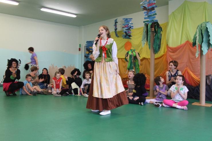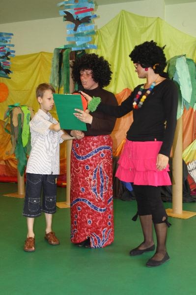 Przedstawienie szkolnego Teatru „Baj”, w którym udział wzięły również przedszkolaki, przeniosło wszystkich do gorącej Afryki. ”Murzynek malutki” oraz rytmy egzotycznej „waki” towarzyszyły nam podczas całego spotkania. Rodzice udowodnili, że świetnie potrafią po „murzyńsku” śpiewać i tańczyć. Na koniec były wierszyki, laurki oraz słodki poczęstunek. Wszystkim Rodzicom dziękujemy za wspólnie spędzony czas.