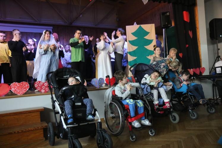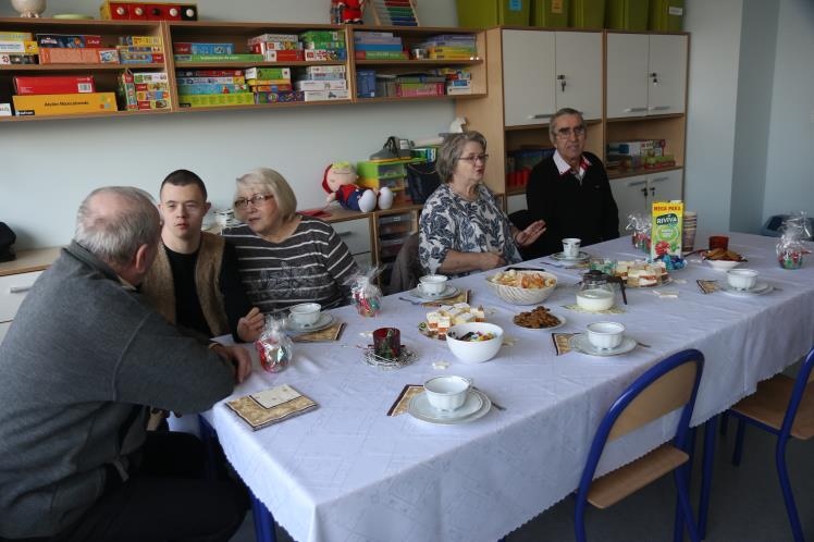 Tuż po występach artystycznych, które miały miejsce na auli sąsiedniej szkoły, dzięki uprzejmości jej dyrekcji, Dziadkowie przeszli do naszej nowej siedziby, gdzie czekał ich poczęstunek w towarzystwie wnuków oraz wychowawców. Było niezmiernie wesoło i uroczyście.