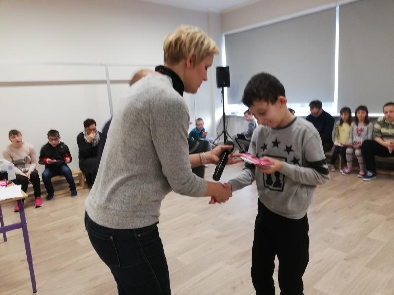 8 lutego 2019 roku, Zespół BAJ spotkał się na podsumowaniu bieżącego sezonu jasełkowego. Pani Dyrektor Lucyna Ibrom, pogratulowała wszystkim przygotowania spektaklu pt. ,,Nie bój się” oraz wszystkich występów. Zespół wziął udział w przesłuchaniach konkursowych, zdobywając II MIEJSCE w XVIII Paradzie Jasełek w Czerwionce – Leszczynach oraz I MIEJSCE w XXII Przeglądzie Widowisk Bożonarodzeniowych ,,Radlińskie Betlejki” w Miejskim Ośrodku Kultury w Radlinie. Ponadto zespół wystąpił dla Rodziców, Babć i Dziadków, Klubu Seniora oraz uczniów SP Nr 15 i SP Nr 11 w ramach akcji ,,Oswoić niepełnosprawność”. Powodem do radości, jest również debiut sceniczny Nadii, Bartosza oraz Artura, którym serdecznie gratulujemy.