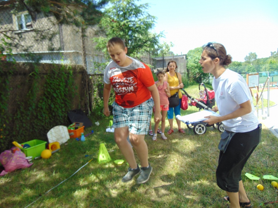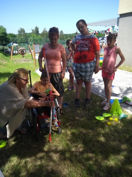 Jednym z punktów programu były gray i zabawy ruchowe. Była możliwość wzięca udziału w prostych zadaniach ruchowych nawiązujących do MATP Olimpiad Specjalnych lub w konkurencjach sportowych ramach WIELOBOJU LEKKOATLETYCZNEGO (bieg, rzut piłeczką w dal, skok w dal z miejsca, strzał z łuku na odległość).