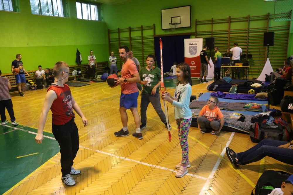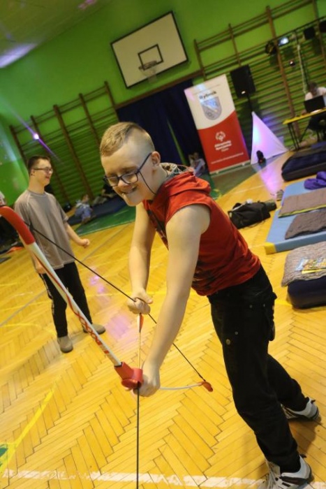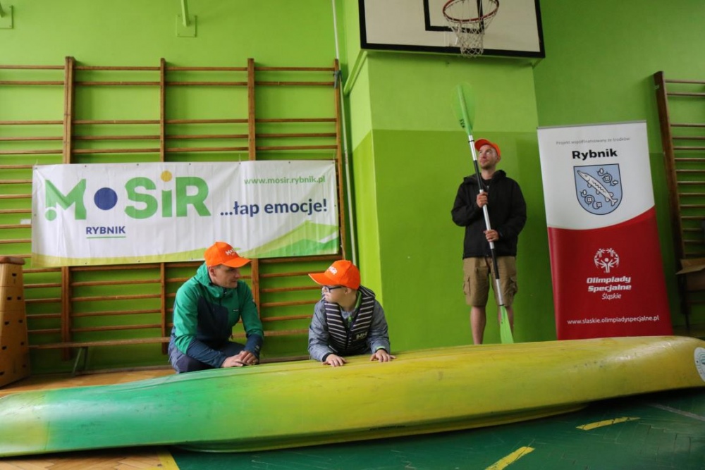 Niekorzystne warunki pogodowe pokrzyżowały plany uczestnikom tegorocznego XVI Regionalnego Spływu Kajakowego Rzeką Odrą Olimpiad Specjalnych 07-08.09 2019. Z uwagi na deszcz i niekorzystne prognozy pogody konieczna okazała się rezygnacja z kluczowego etapu spływu. Choć istoty spływu zabrakło organizatorzy zadbali o organizację czasu naszym sportowcom w innej formie. Zajęcia rekreacyjne na sali gimnastycznej szkoły w Dziergowicach, gdzie tradycyjnie miał miejsce nocleg, spożytkowały energię drzemiącą w naszych zawodnikach:) Królowała koszykówka, piłka nożna i strzelanie z łuku. Po kolacji w formie grilla czekała na uczestników dyskoteka z DJ Adamem:)