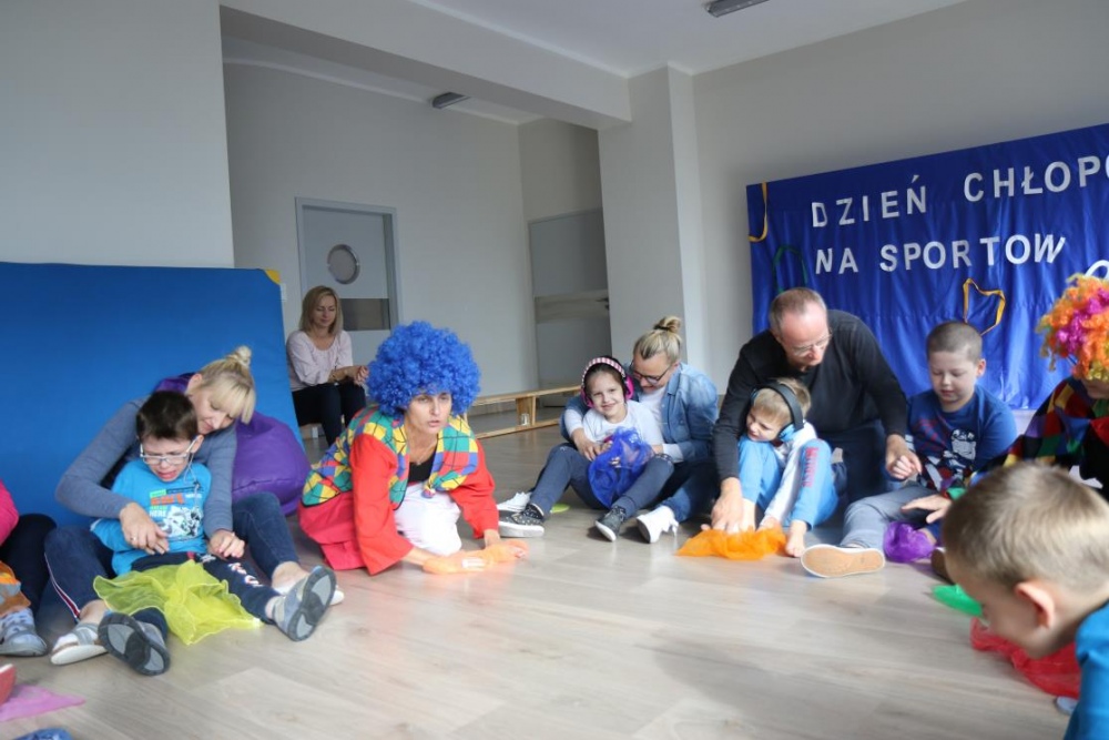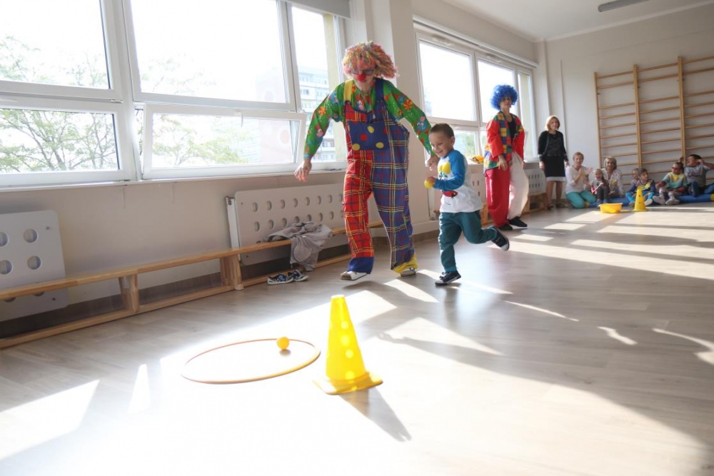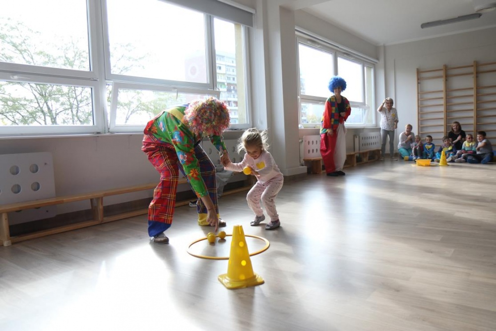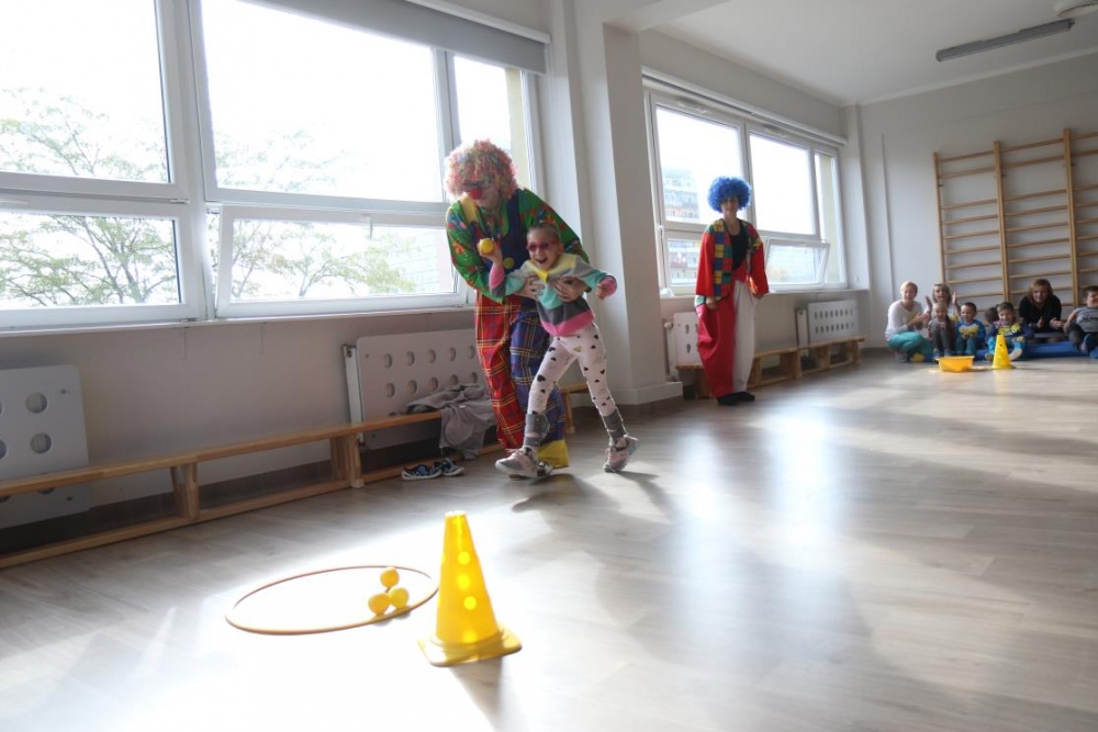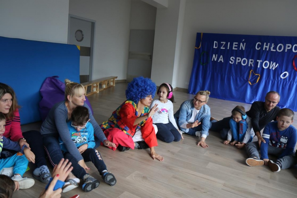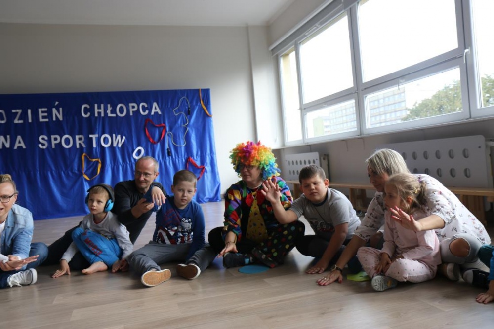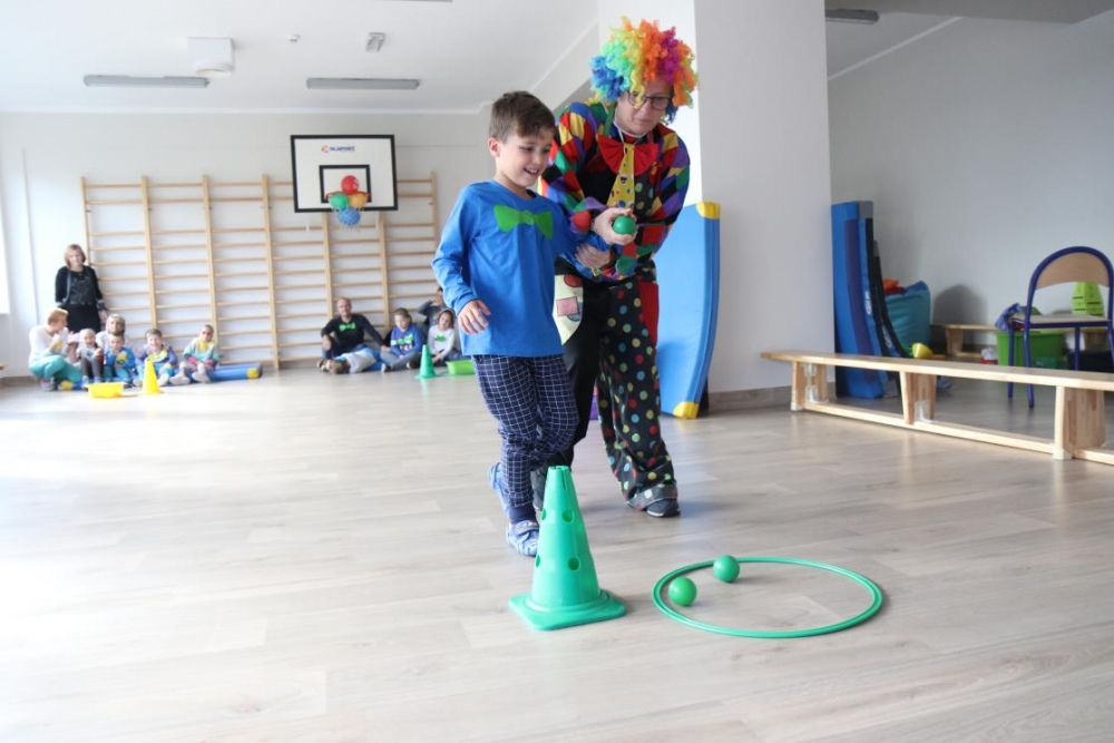 Z okazji zbliżającego się DNIA CHŁOPCA nasze przedszkolaki oraz dodatkowo uczniowie jednej z klas pierwszych dnia 26 września 2019 r. spotkali się na wspólnych zajęciach ruchowych:) Dzień Chłopca "Na Sportowo" poprowadzili dla dzieci trzej niezwykle wysportowani Clowni ;) Po krótkim powitaniu odbyła się ruchowa rozgrzewka, mini wyścigi oraz zabawa chustą Klanzy. Na zakończenie z kolei, krótki relaks i uzupełnienie kalorii:) Dziękujemy za wspólną zabawę!