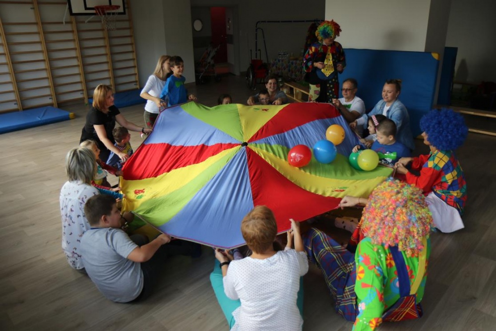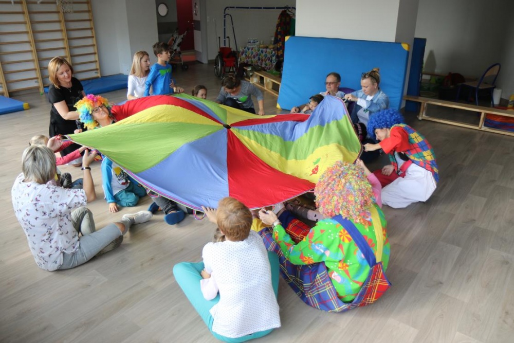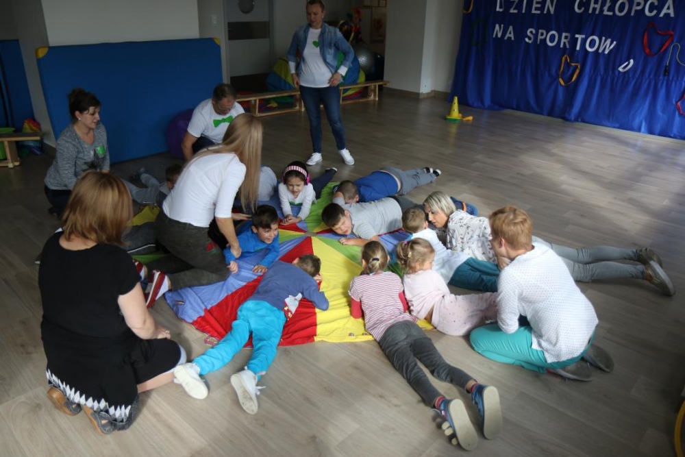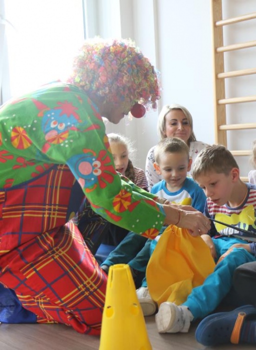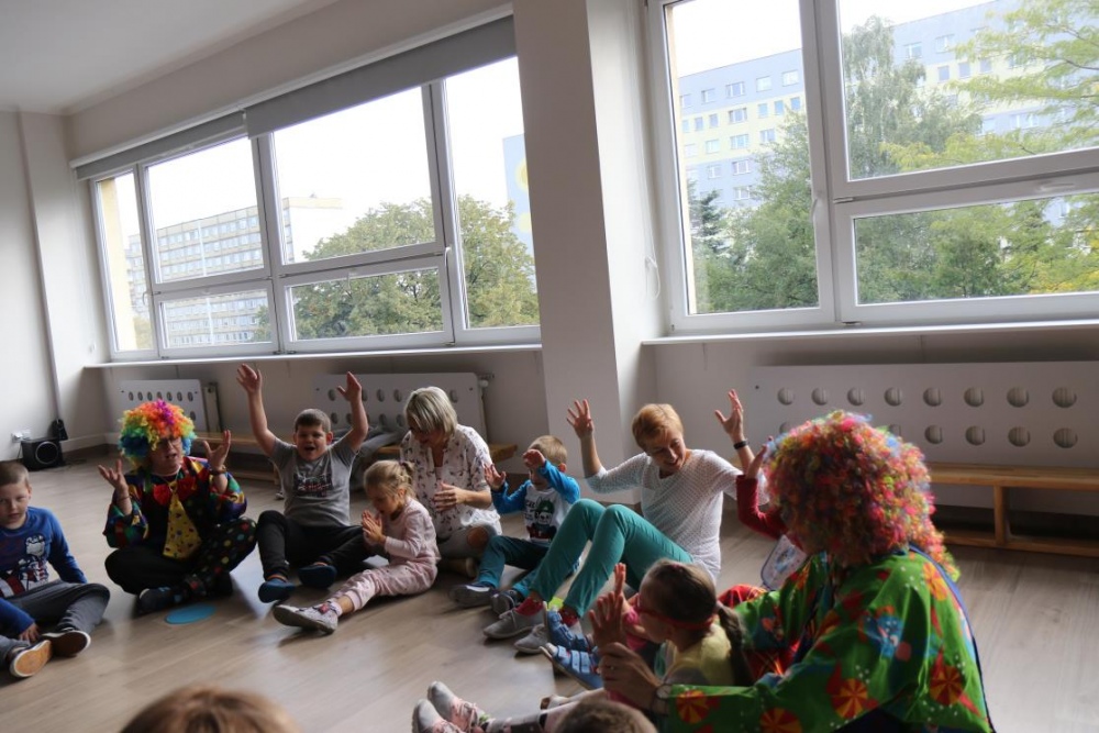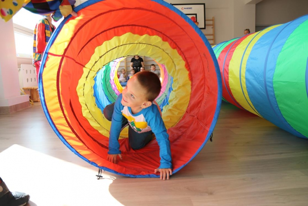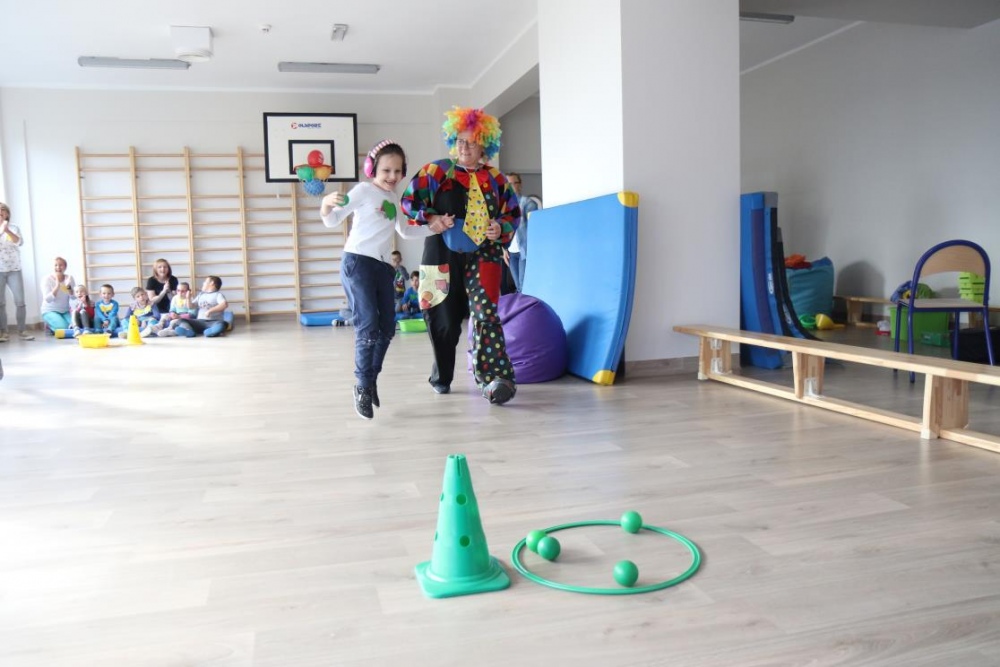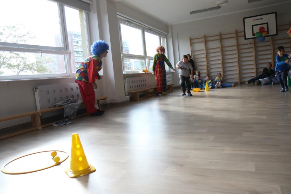 Z okazji zbliżającego się DNIA CHŁOPCA nasze przedszkolaki oraz dodatkowo uczniowie jednej z klas pierwszych dnia 26 września 2019 r. spotkali się na wspólnych zajęciach ruchowych:) Dzień Chłopca "Na Sportowo" poprowadzili dla dzieci trzej niezwykle wysportowani Clowni ;) Po krótkim powitaniu odbyła się ruchowa rozgrzewka, mini wyścigi oraz zabawa chustą Klanzy. Na zakończenie z kolei, krótki relaks i uzupełnienie kalorii:) Dziękujemy za wspólną zabawę!