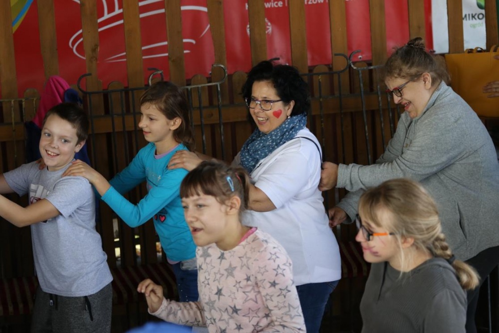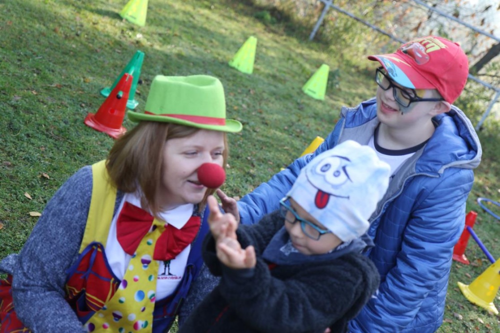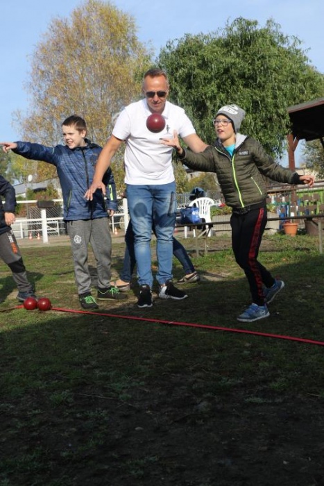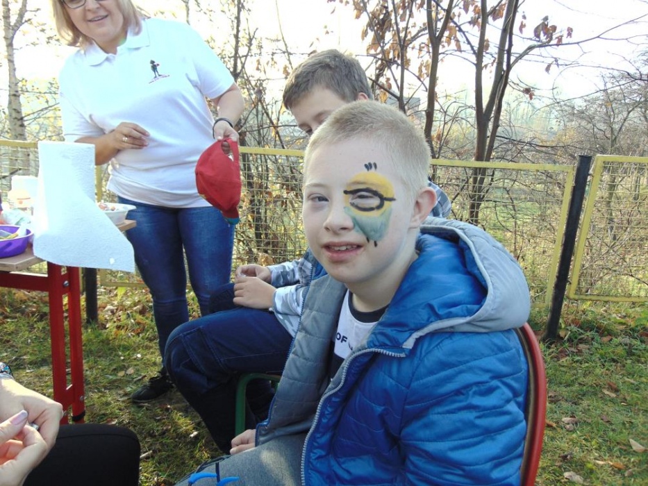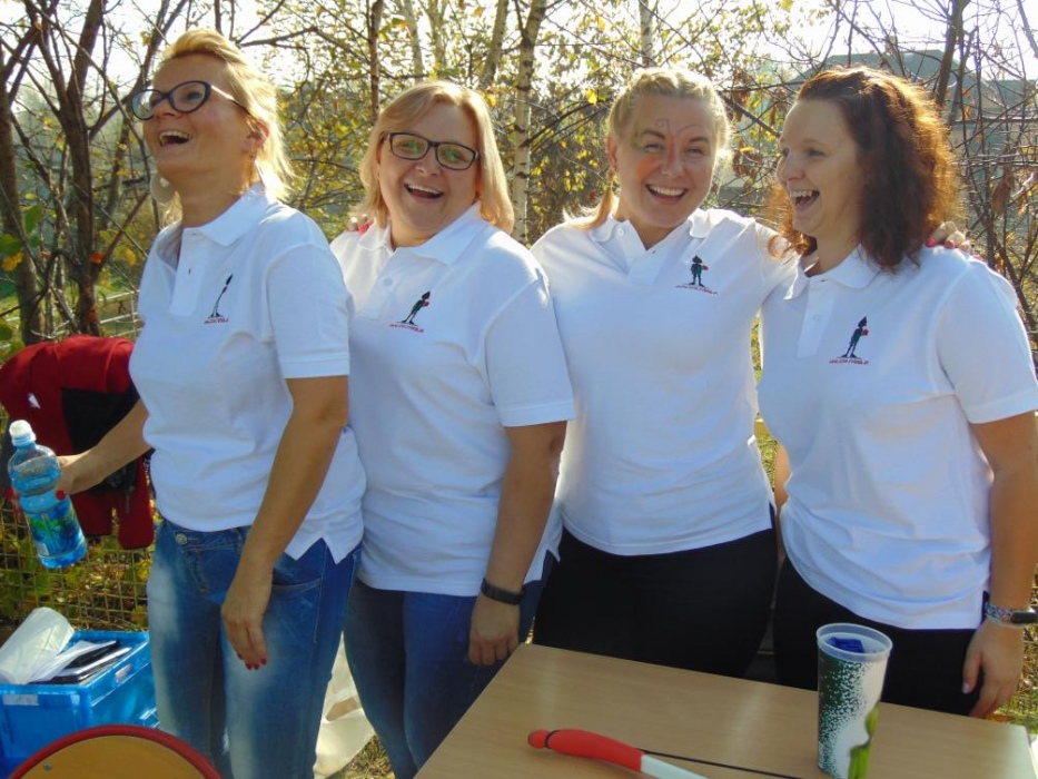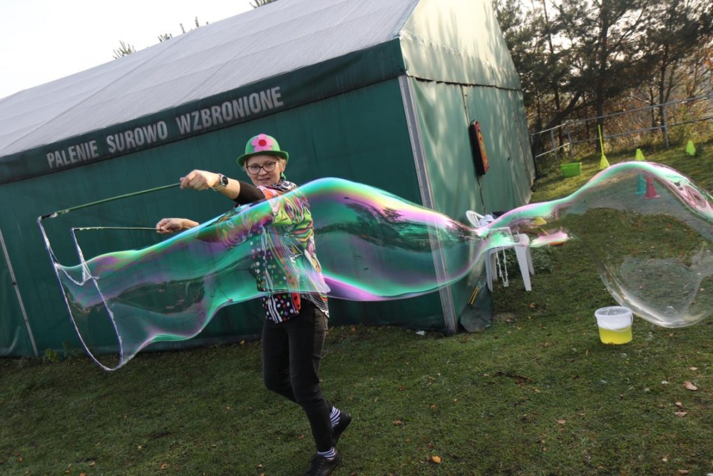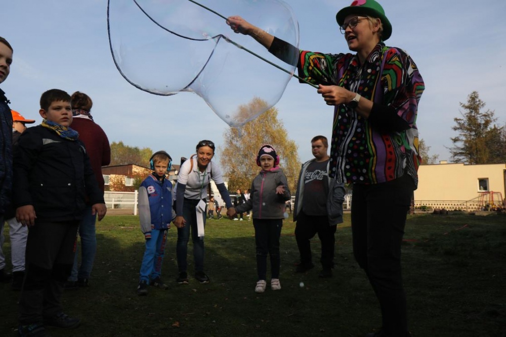 Niezwykle sprzyjająca tego dnia, piękna jesienna aura pozwoliła na 100% realizację programu imprezy!! Były zatem wspólne zabawy muzyczno - ruchowe, dyskoteka, rozgrywki bocce, studio urody, zabawy ruchowe z łucznictwem i aktywnościami na placu zabaw na czele. Dodatkowo młodsi uczniowie mogli skorzystać z przejażdżek konnych. Zabawom towarzyszyły wszem obecne duże i małe bańki mydlane, wyczarowane przez klownów. Jak na imprezę plenerową przystało nie zabrakło poczęstunku w postaci grilla,pieczonych ziemniaków i chleba ze smalcem:)