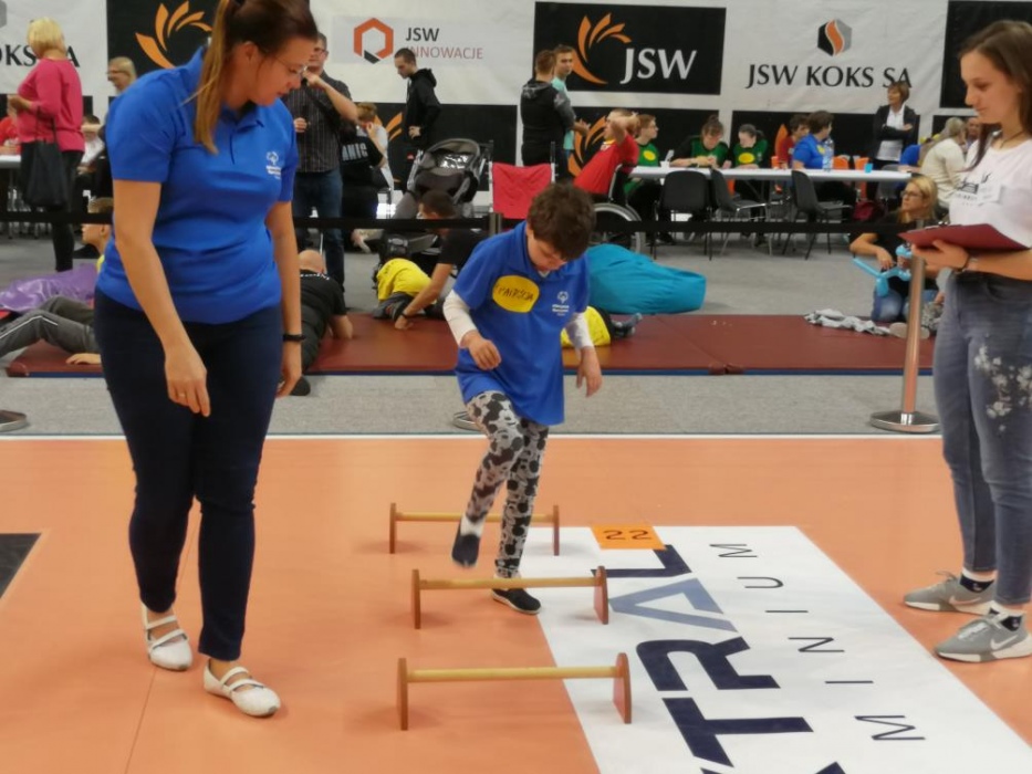 Ekipa naszych zawodników, uczniów SZS-P w Rybniku, wzięła udział w kolejnym, XXXI Śląskim Dniu Treningowym Programu Treningu Aktywności Motorycznej Olimpiad Specjalnych. Dnia 25 października 2019 r. na hali Widowiskowo- Sportowej w Jastrzębiu - Zdroju swoje trenowane konkurencje zaprezentowali tym razem debiutanci: Agata, Wiktoria oraz Wiktor, a także stali bywalcy: Patrycja, Adrian, Oskar, Jakub. Przejście przez tunel, pokonanie nierównego podłoża, rzuty do celu, przejście po równoważni, zbieranie przedmiotów, pokonanie przeszkód to, między innymi, te zadania którym sprostali nasi zawodnicy. W ich wysiłku wspierali ich nauczyciele i opiekunowie SZS-P w Rybniku. Za swój trud, zarówno w czasie treningów, jak i podczas spotkania, zostali uhonorowani ZŁOTYMI MEDALAMI!!!