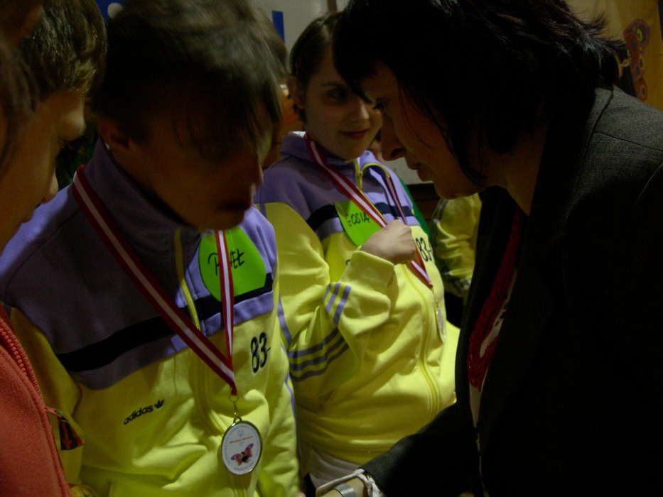 W tym miejscu należą się podziękowania pani Anecie Gawrysiak (prezes ST "Promyk" Olimpiad Specjalnych przy naszej szkole) za zadbanie o sportowe stroje dla naszych zawodników. Dzięki temu wyglądaliśmy wspaniale.