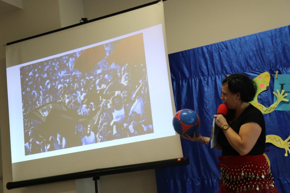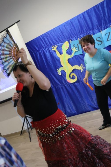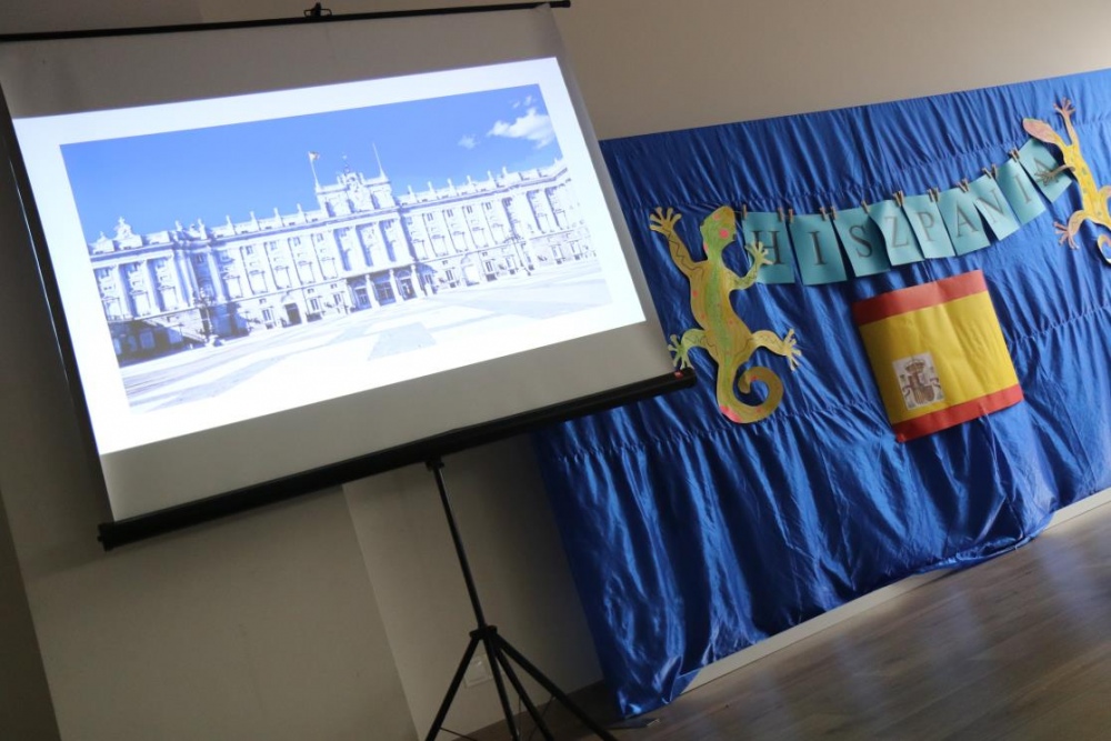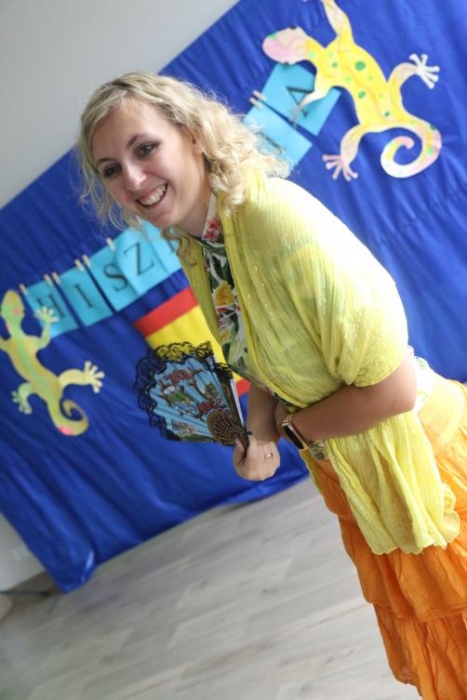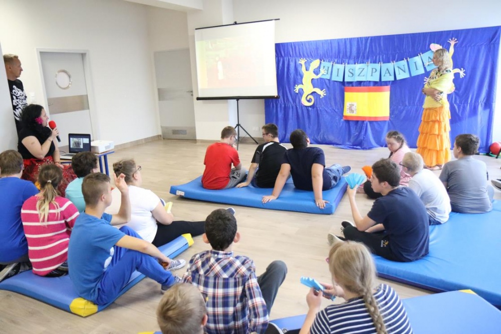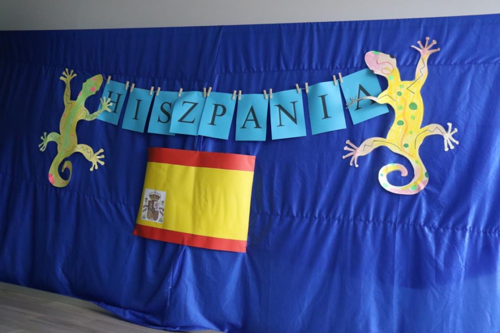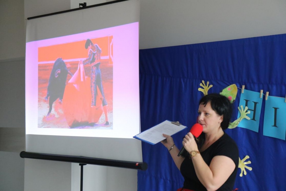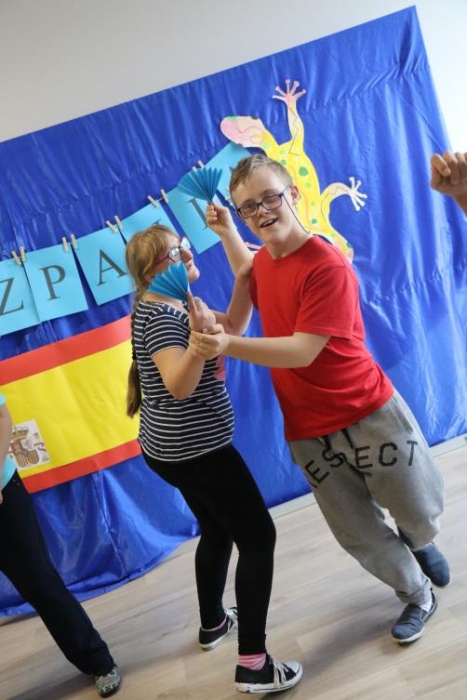 Takim przywitaniem rozpoczęliśmy, 23 pażdziernika 2019r., DZIEŃ HISZPAŃSKI. Nasi uczniowie mieli bowiem niepowtarzalną okazję poznać kulturę i zwyczaje Hiszpanii. W ramach dnia hiszpańskiego mogliśmy wczuć się w klimat tego gorącego kraju i poczuć się jak prawdziwi Hiszpanie. Oglądaliśmy slajdy z charakterystycznych miejsc dla Hiszpanii, rozwiązywaliśmy zagadki, tworzyliśmy wachlarze, tańczyliśmy Pasa Doble, poczuliśmy magię sportu, czy wreszcie rozegraliśmy bitwę na pomidory !!!!! „ La Tomatina”.
