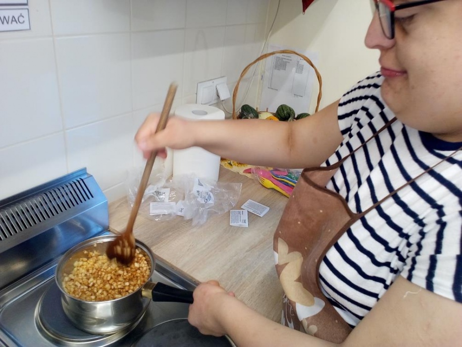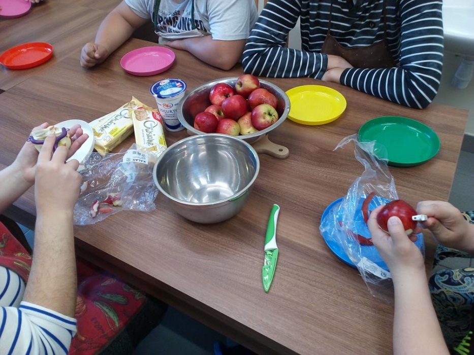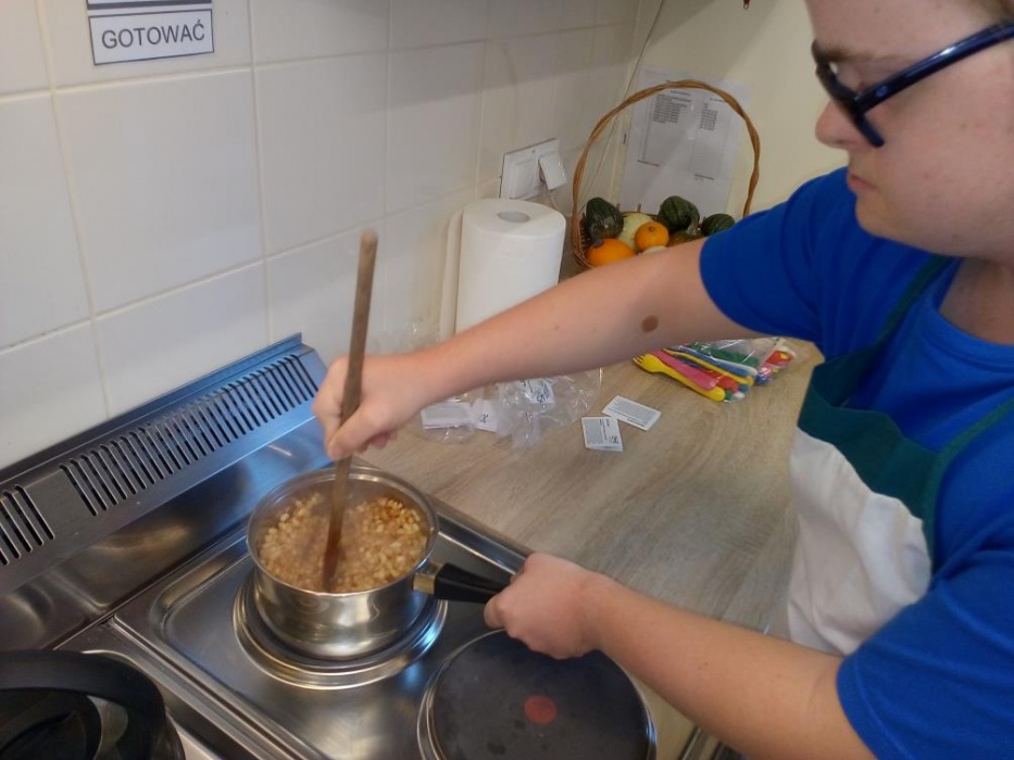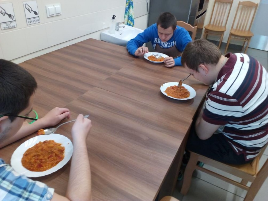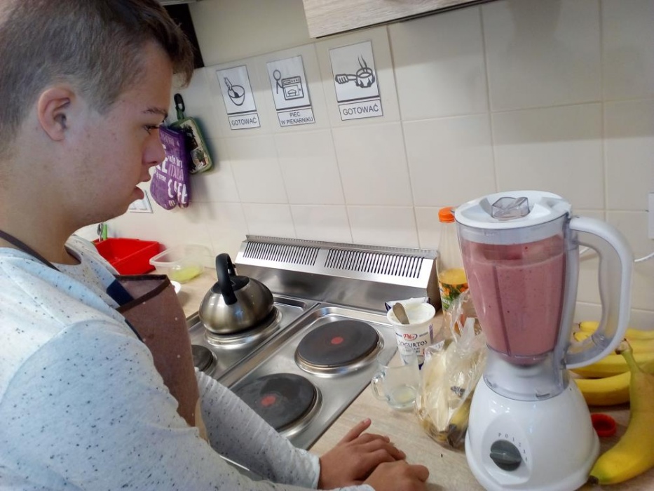 Nasi uczniowie uwielbiają zajęcia w kuchni dydaktycznej, podczas których mogą doskonalić zdobyte już umiejętności kulinarne i ćwiczyć nowe. W październiku poznali przepisy na kolejne kolorowe potrawy, którymi były: sałatka jarzynowa, gofry, leczo i przepyszny deser jabłkowo-jogurtowy. Stale też na naszych zajęciach robimy koktajle, które naszym uczniom wychodzą wybornie. W kuchni dydaktycznie nie tylko przygotowujemy pyszne posiłki, ale także uczymy się, że zawsze należy po sobie zostawić porządek, więc mycie naczyń, to także stały element naszych zajęć. A czy przygotowane posiłki smakują naszym wychowankom możecie zobaczyć na dołączonych zdjęciach.